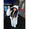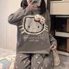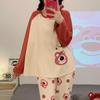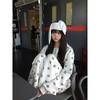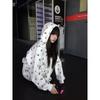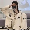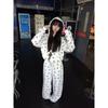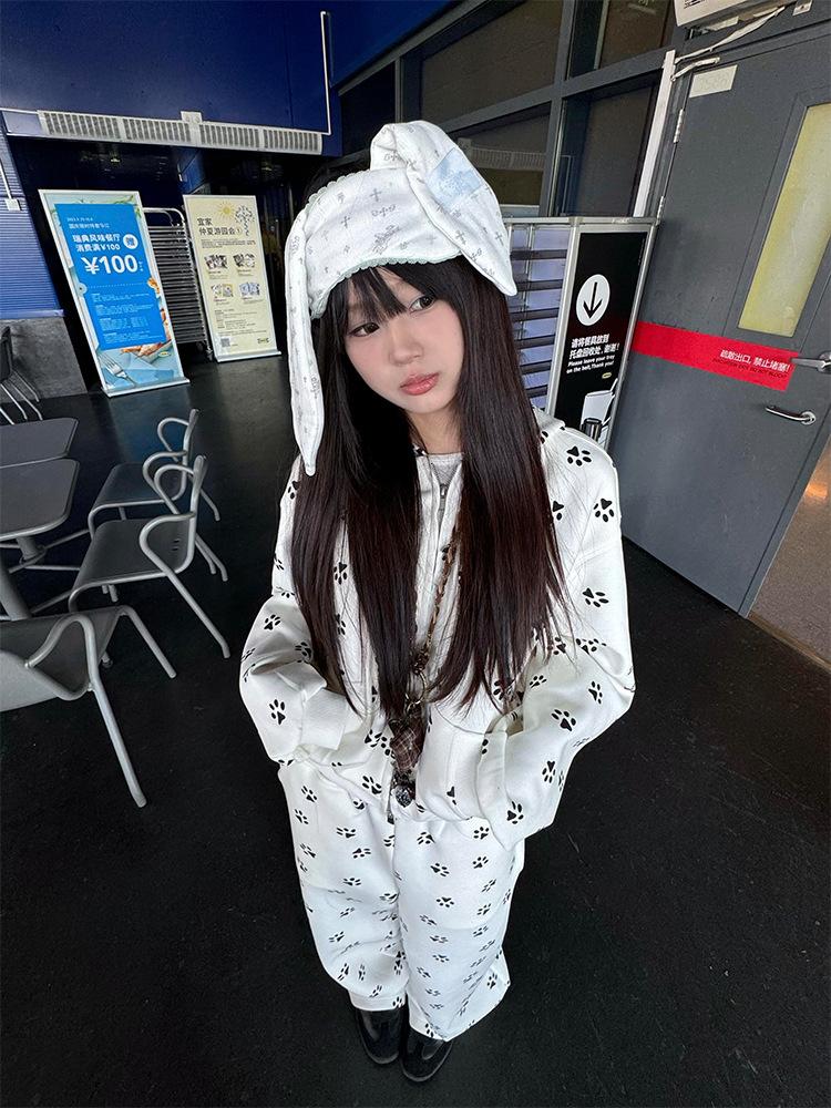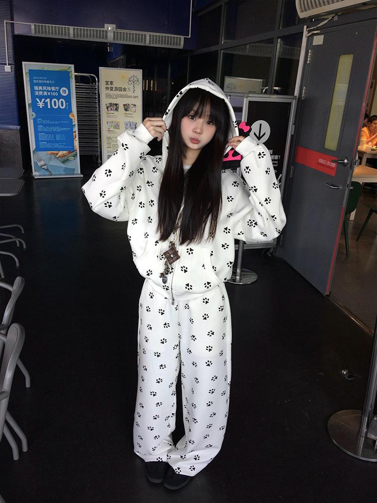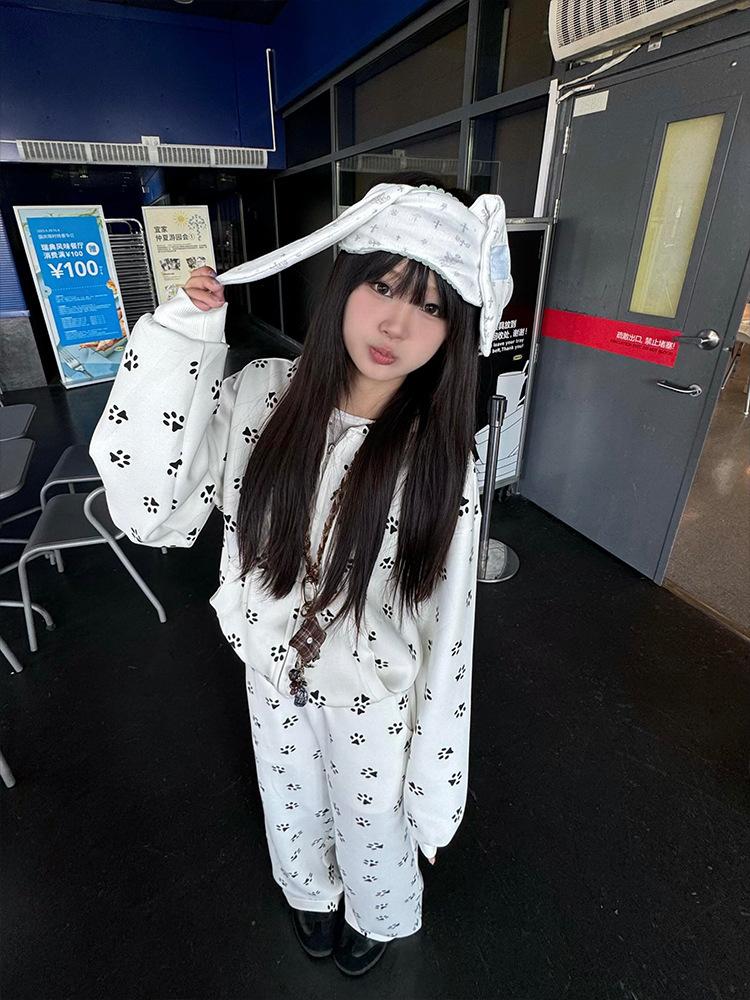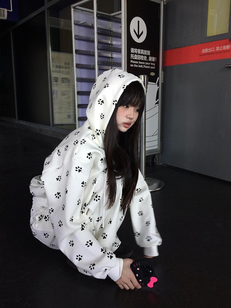 Sudadera Linda con Estampado de Pata de Perro Blanca Pijama Sencillo Mujer 2025 Primavera Otoño Nuevo Estilo Talla Extra Manga Larga Pantalón Largo Se Puede Usar Afuera
