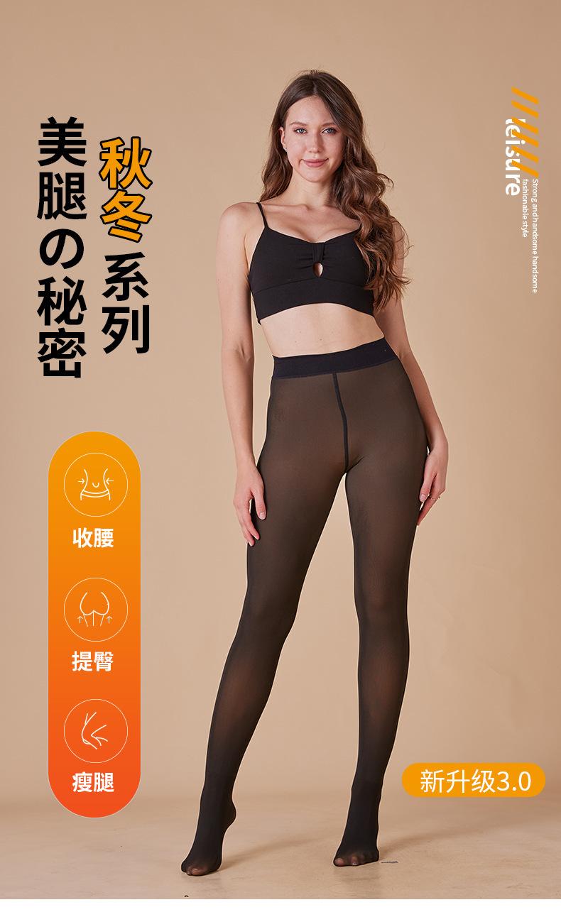 Ropa exterior transfronteriza Falso Transparente Otoño e Invierno Transparente Leggings de Talla Grande con Forro Polar Pantimedias Negras Transparentes de Entrepierna de Una Línea para Mujer Venta al por Mayor