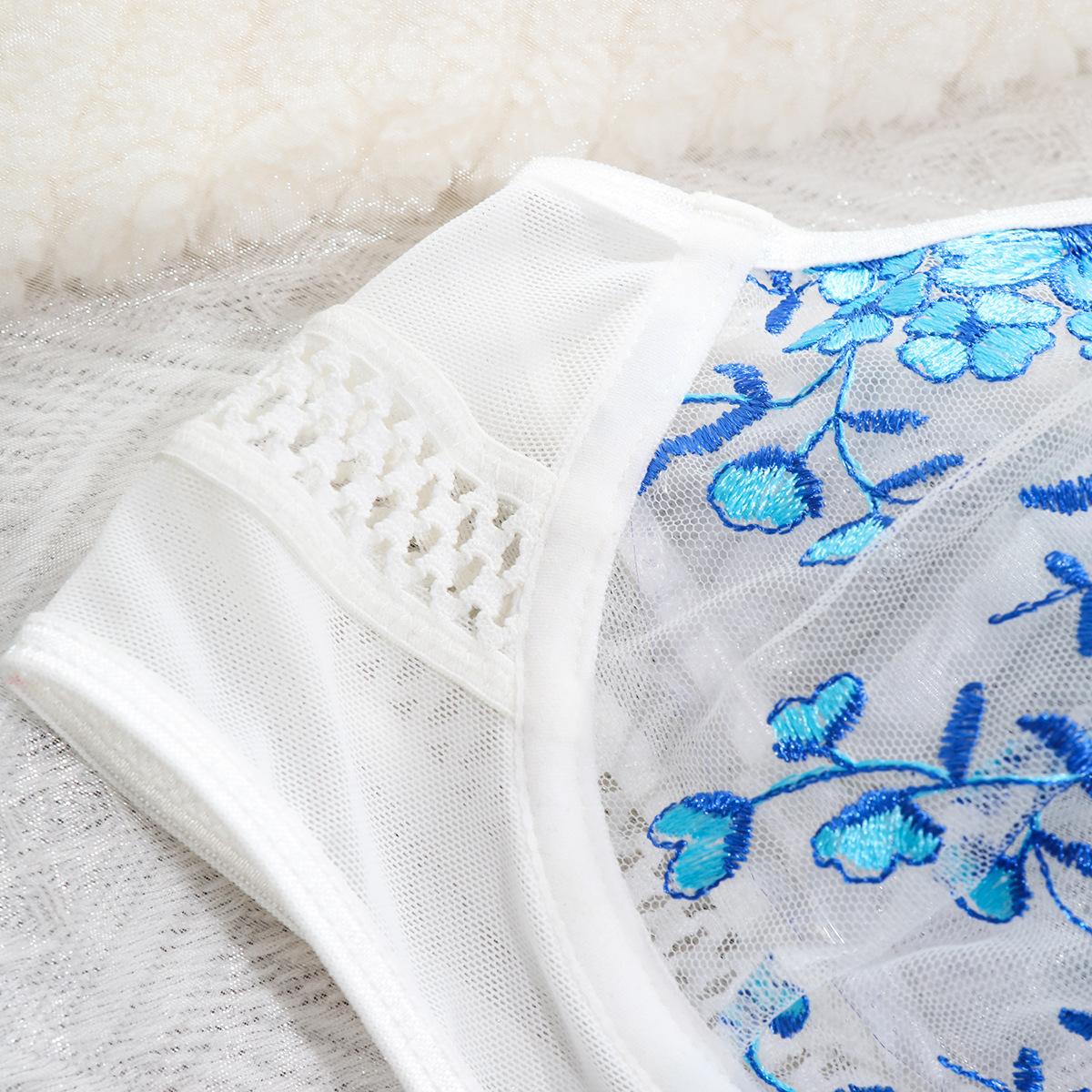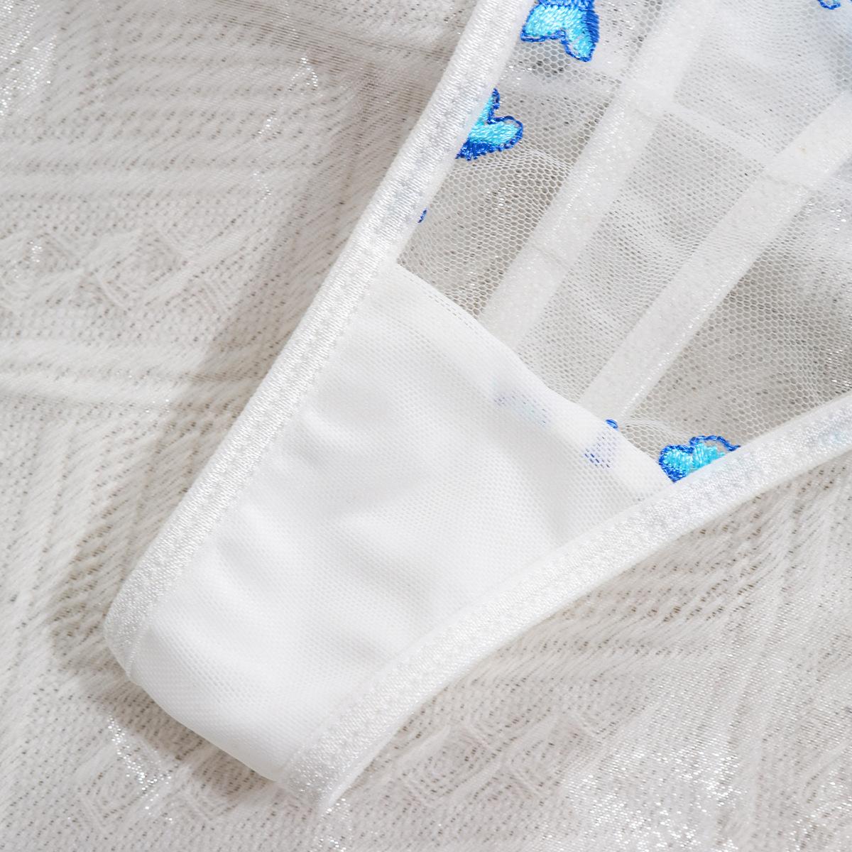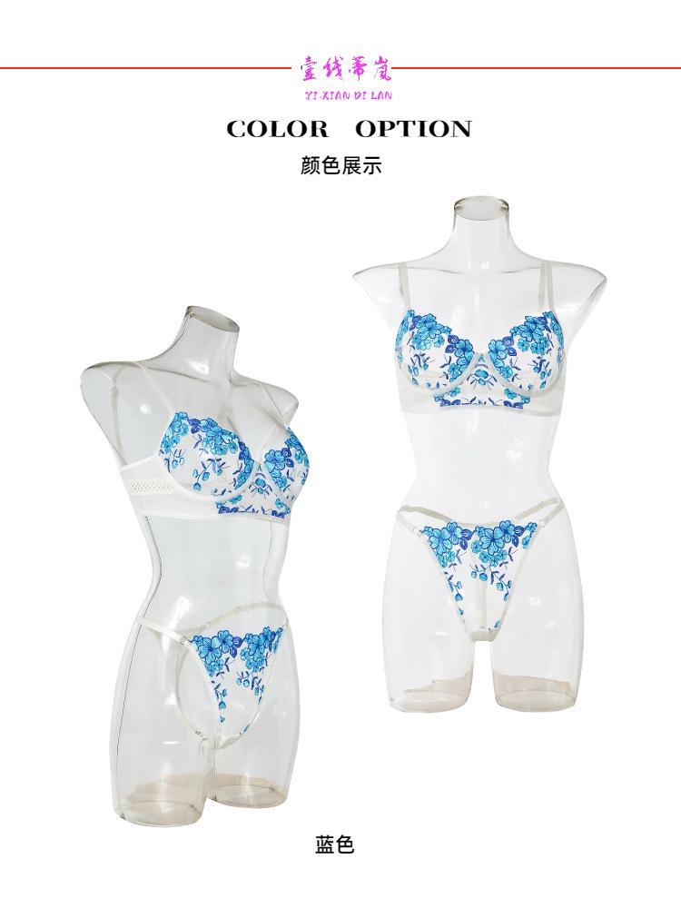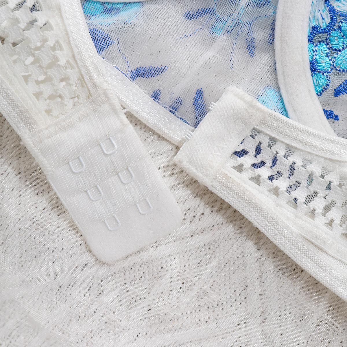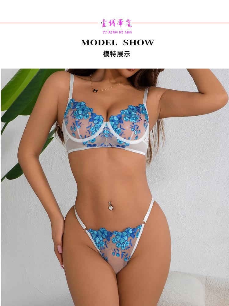 Europa y América transfronterizo superventas lencería sexy uniforme sujetador de deseo puro bordado push-up sujetador transparente conjunto divertido mujeres
