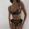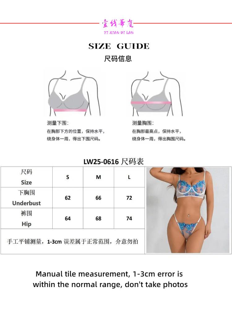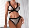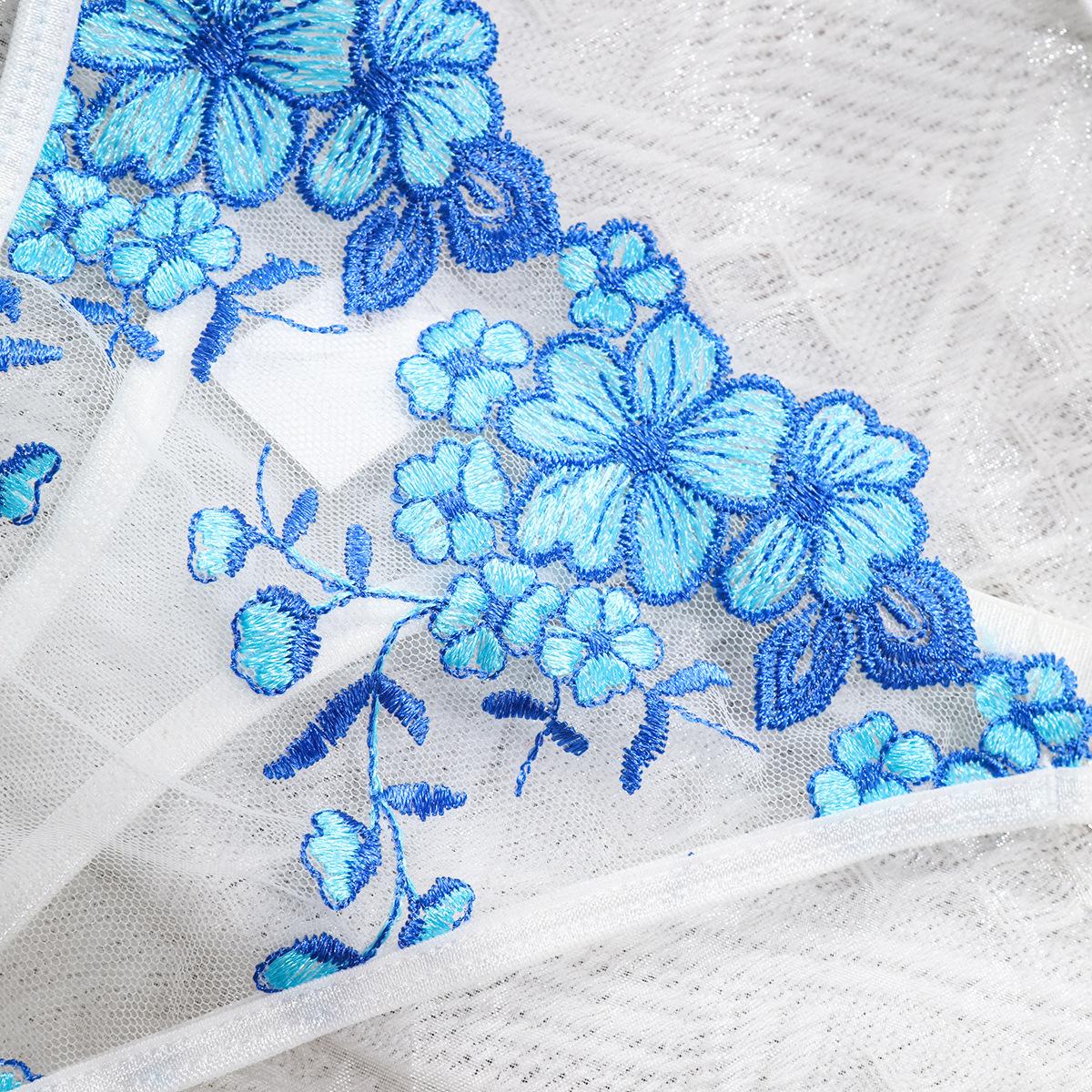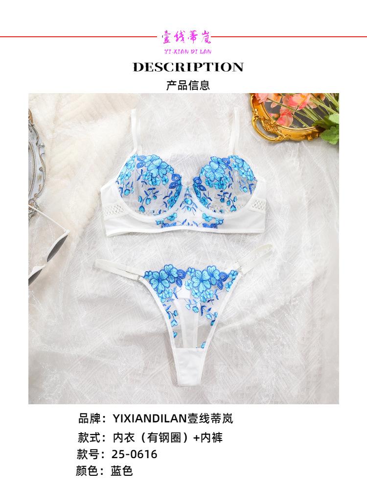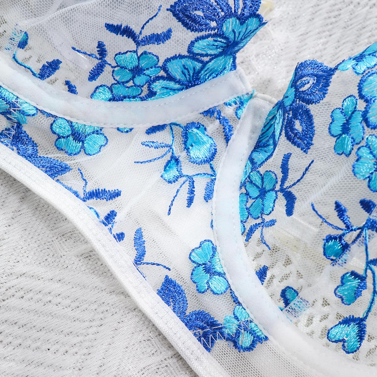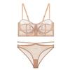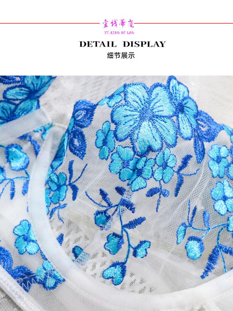 Europa y América transfronterizo superventas lencería sexy uniforme sujetador de deseo puro bordado push-up sujetador transparente conjunto divertido mujeres