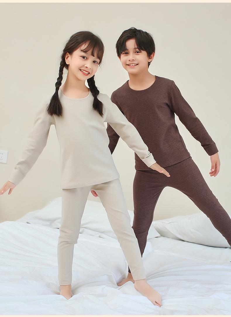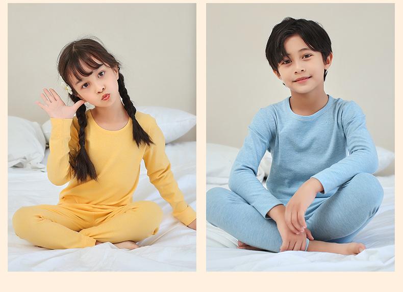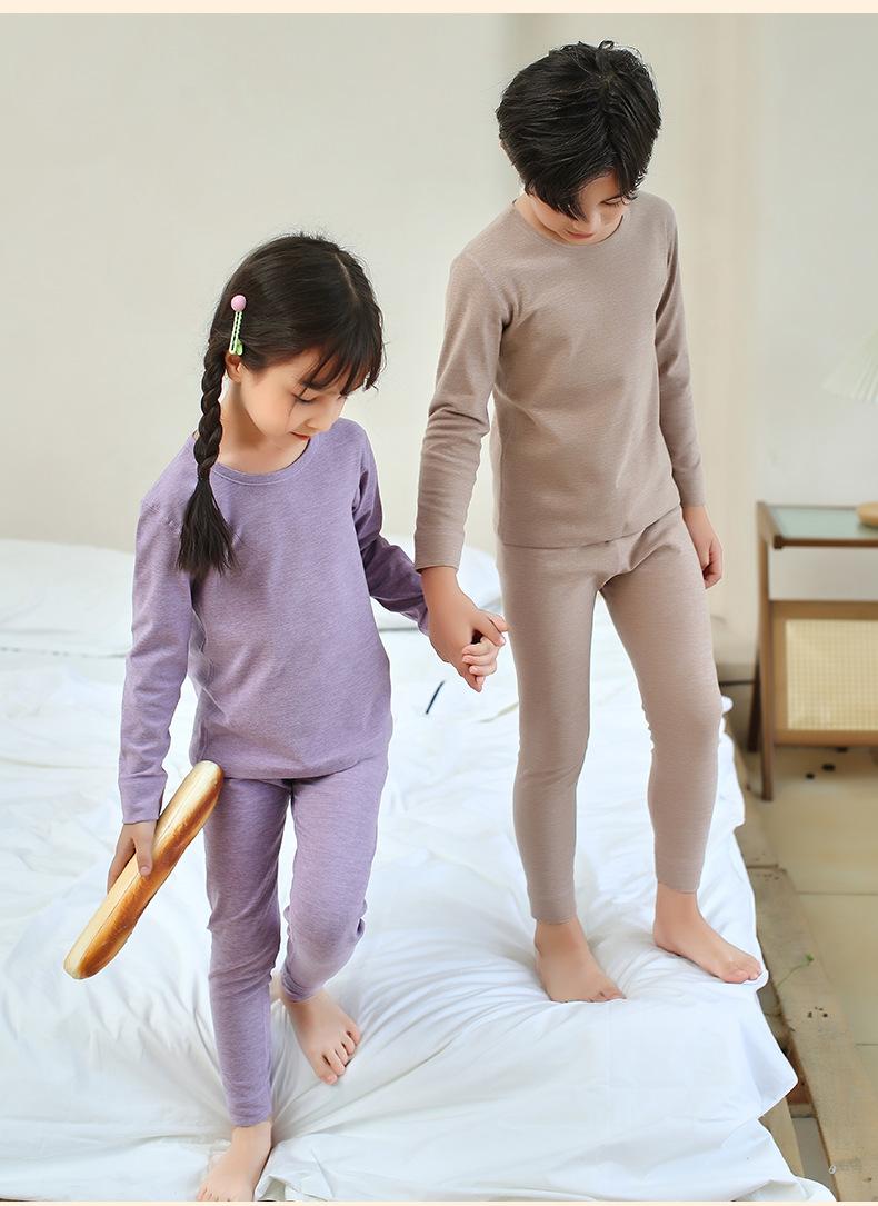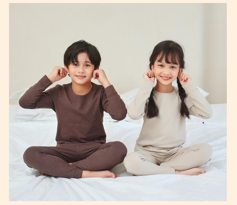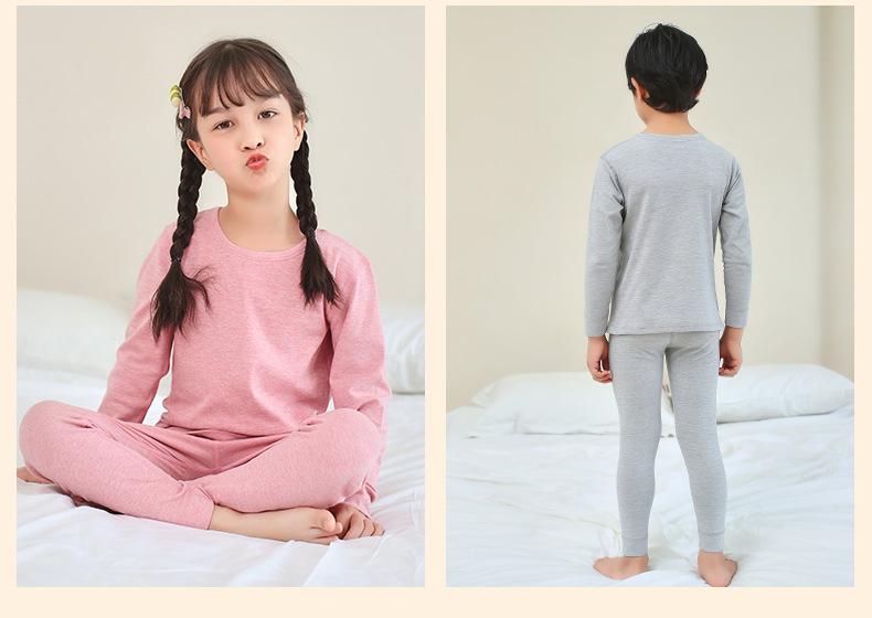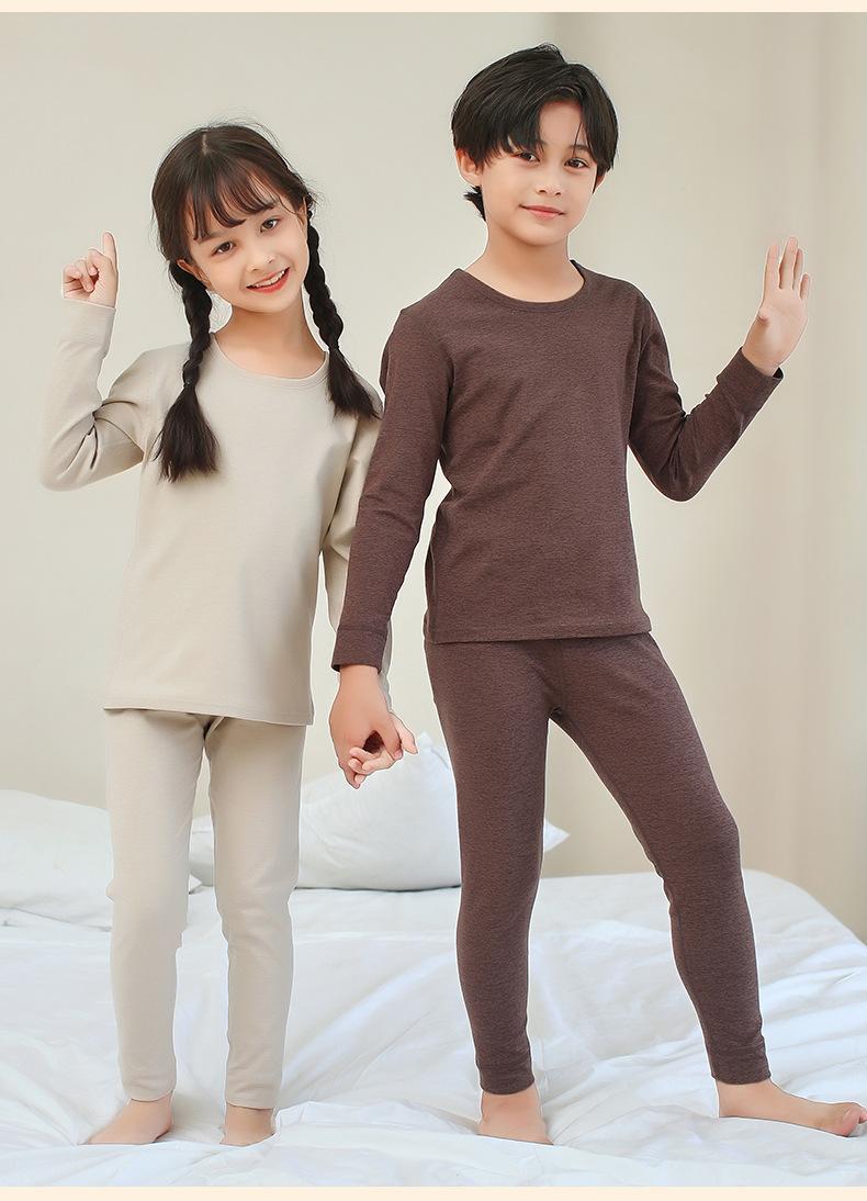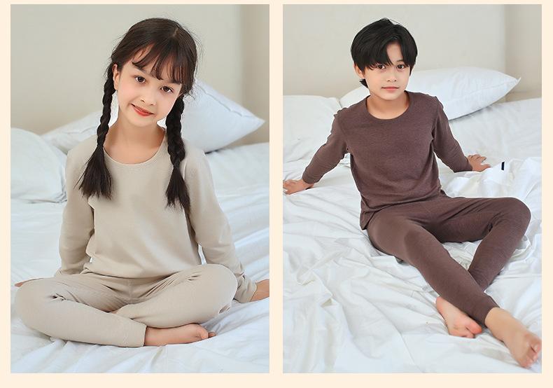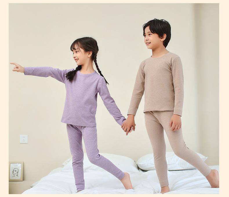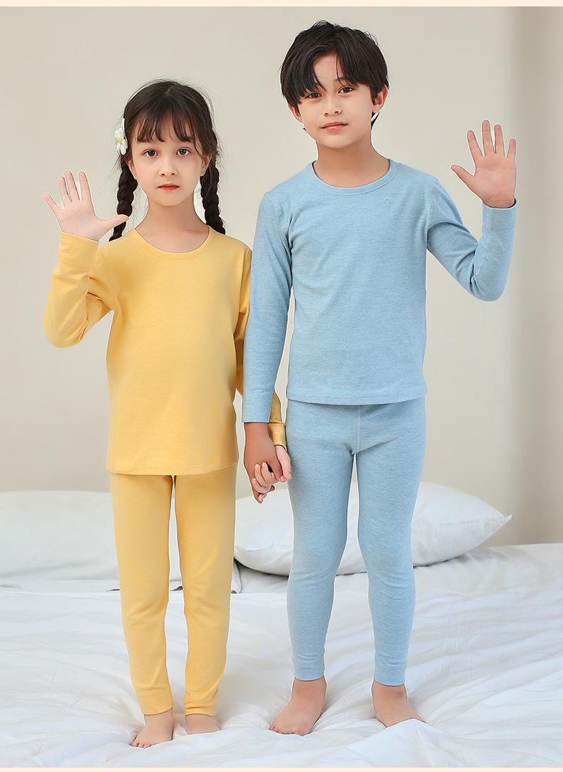 Conjunto de Ropa Interior Térmica para Niños y Niñas, Pijama de Color Sólido con Cuello Redondo, Ropa y Pantalones de Otoño, Grueso para Mayor Calidez