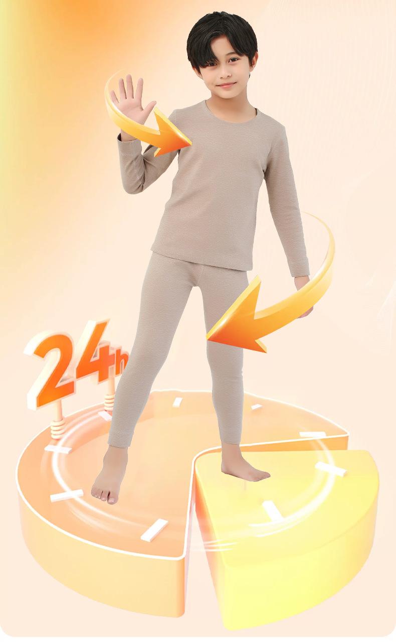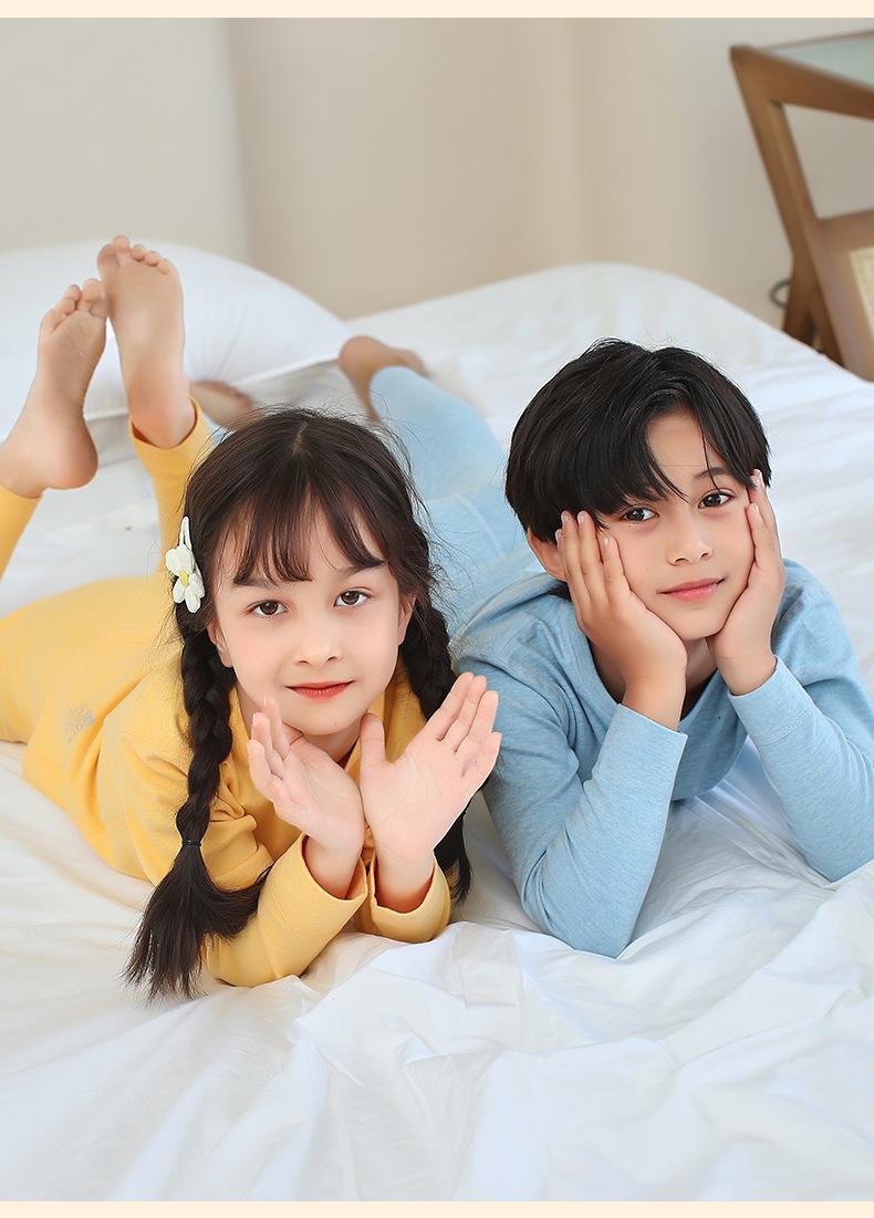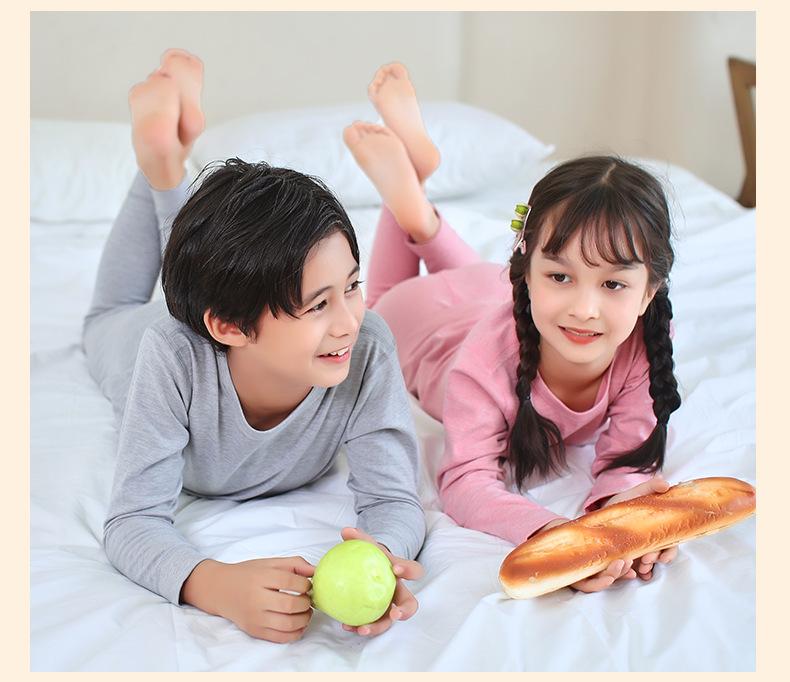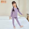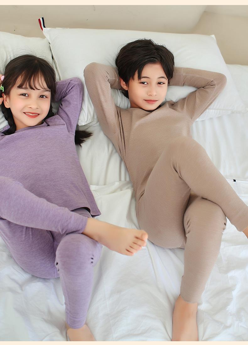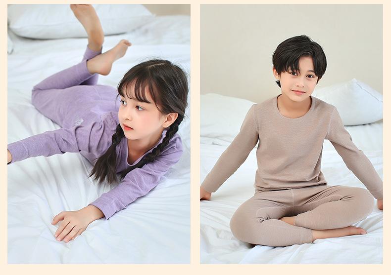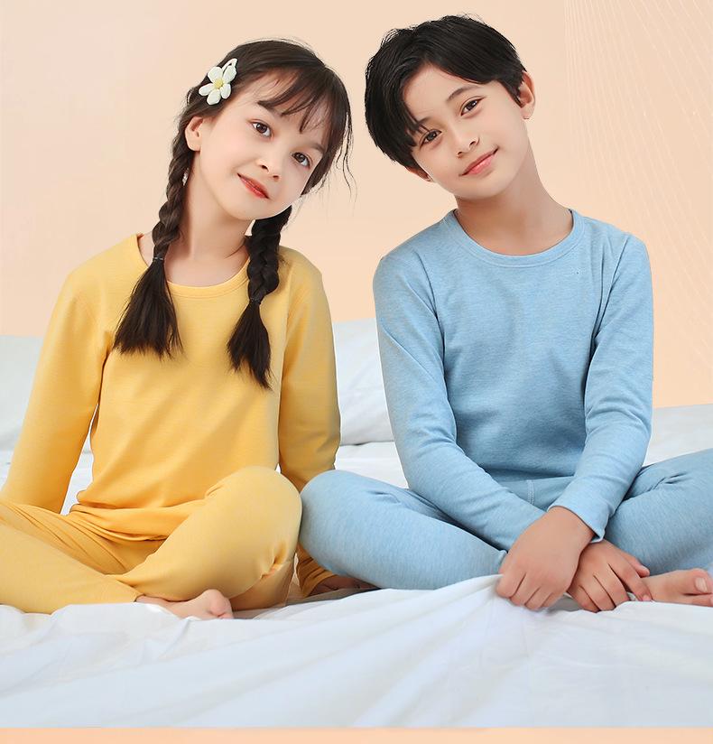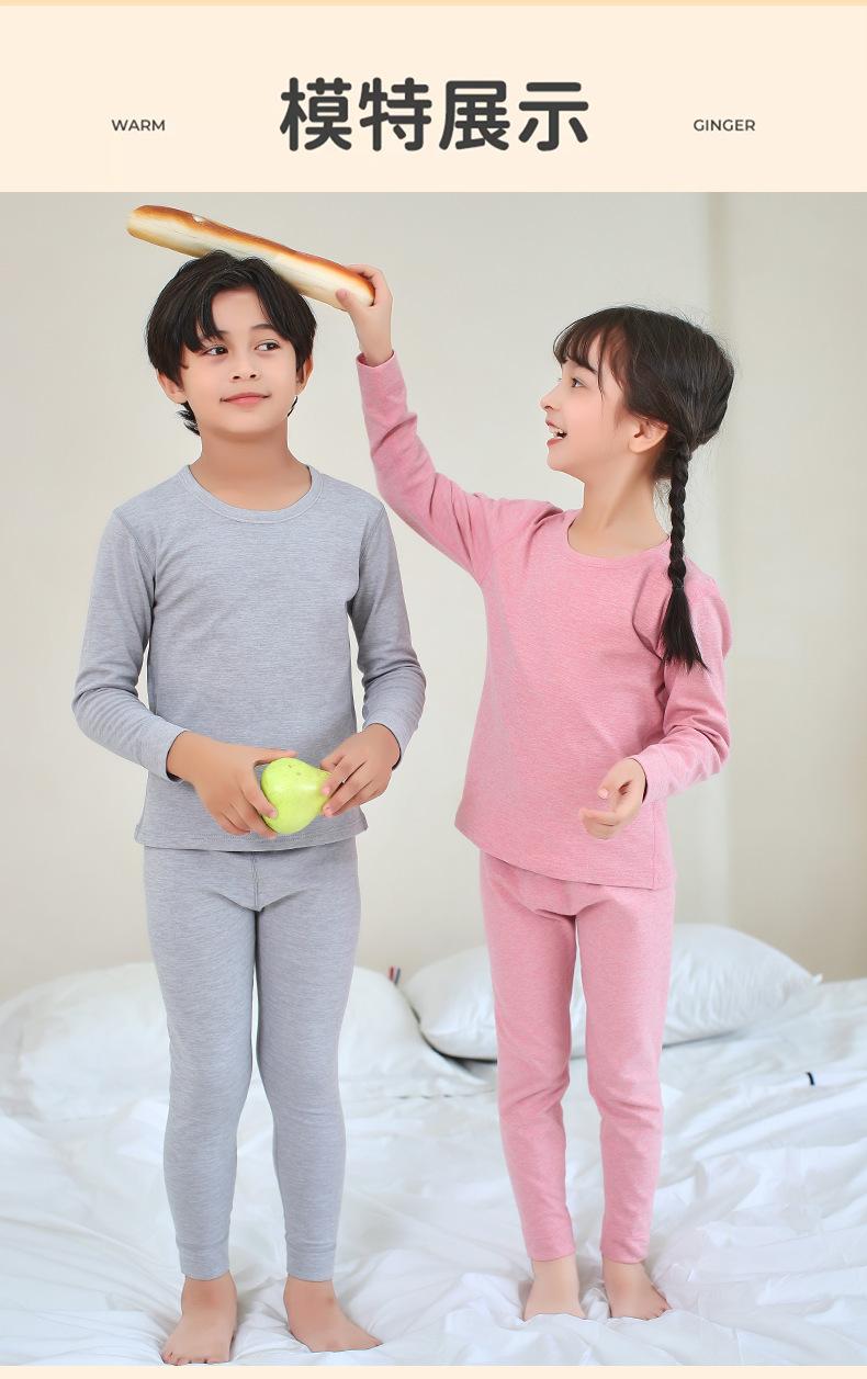 Conjunto de Ropa Interior Térmica para Niños y Niñas, Pijama de Color Sólido con Cuello Redondo, Ropa y Pantalones de Otoño, Grueso para Mayor Calidez