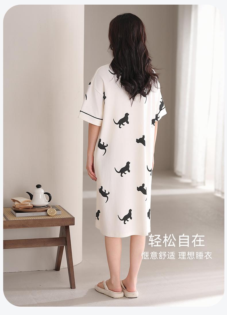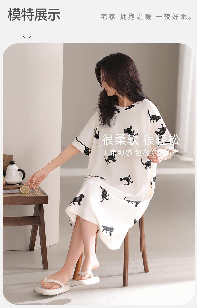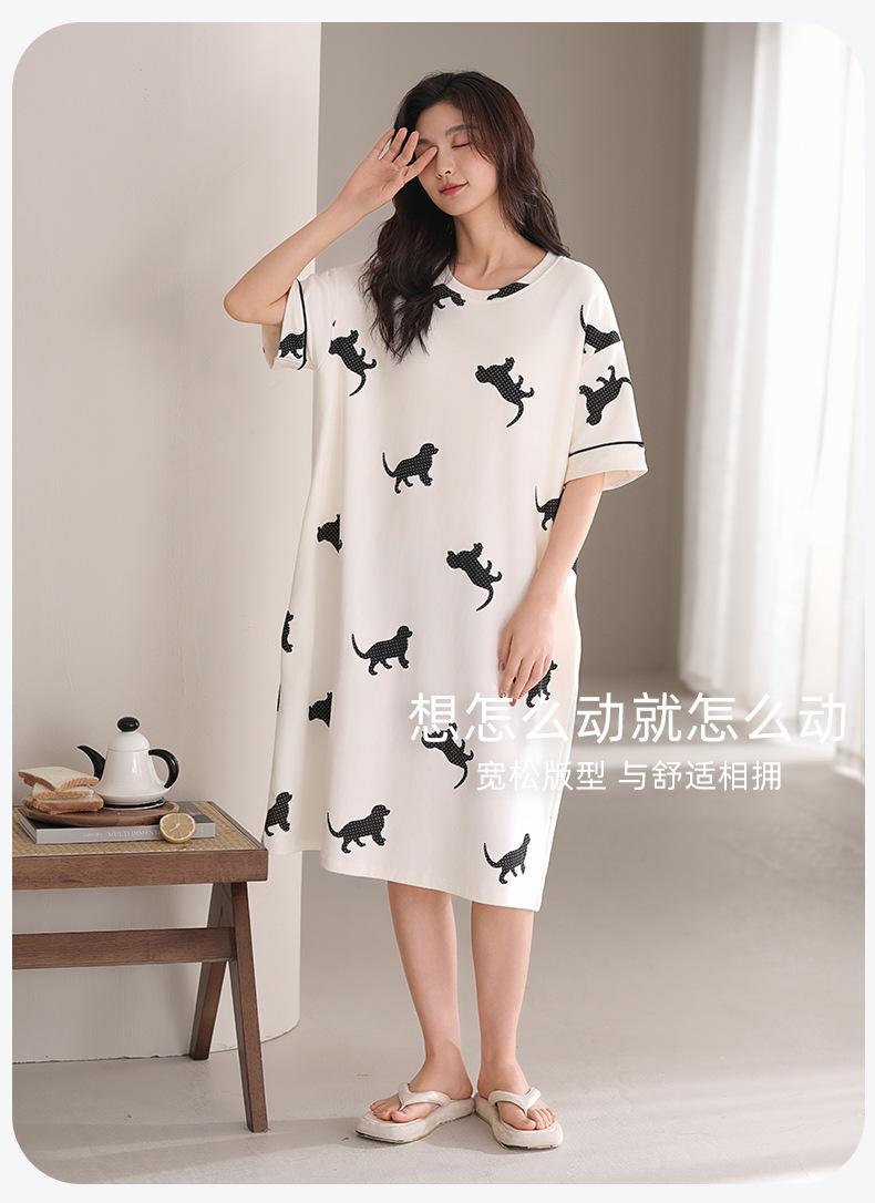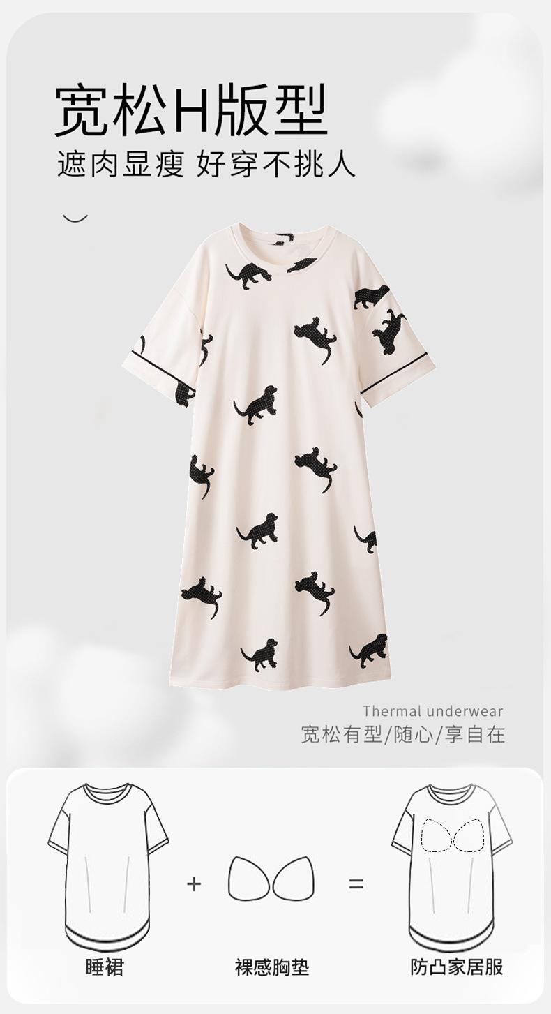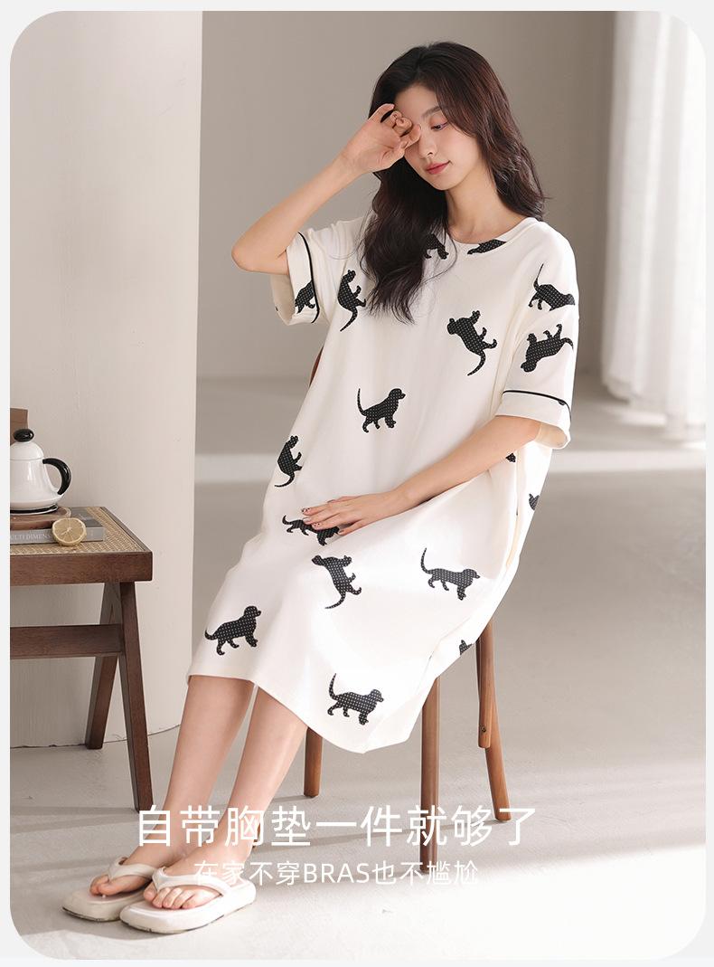Camisón de Verano para Niña Vestido Casual Holgado Cuello Redondo Estilo Delgado con Almohadilla para el Busto Incorporada Estilo Coreano Rayado Ropa de Casa al por Mayor