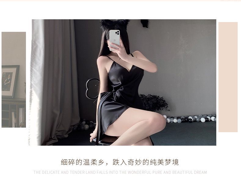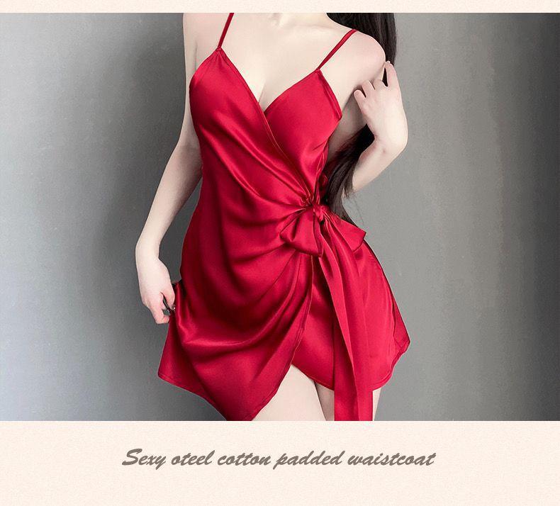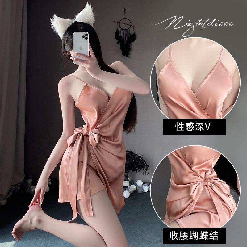 Lencería Sexy Liguero Camisón para Mujer de Una Pieza Seda de Hielo Sexy de Alta Gama Estilo Deseo Puro Bata de Batalla para Pareja Ropa de Dormir Privada
