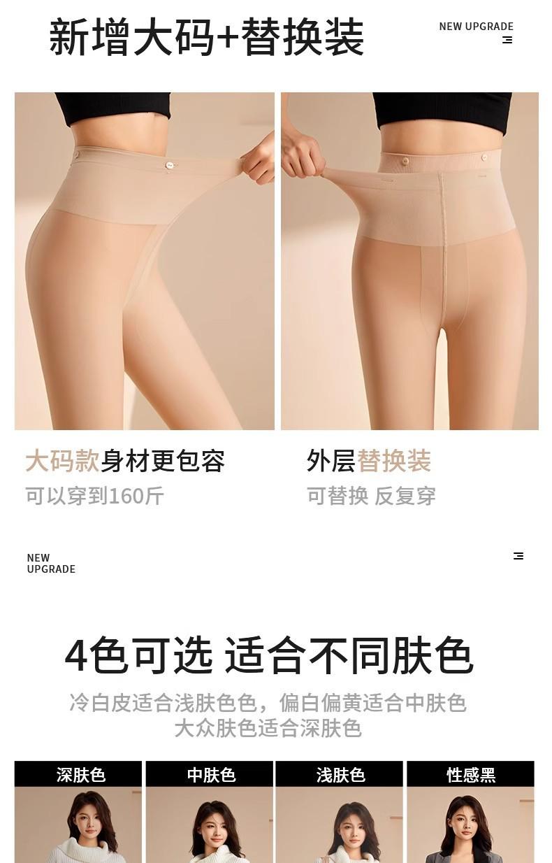 Artefacto de Pierna Desnuda de Doble Capa Medias Color Carne Sensación Desnuda para Otoño e Invierno Tono de Piel Realista Leggings Base Cálidos Gruesos con Forro Polar para Mujer