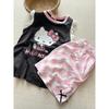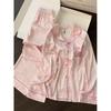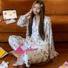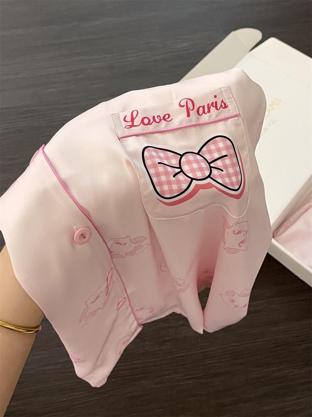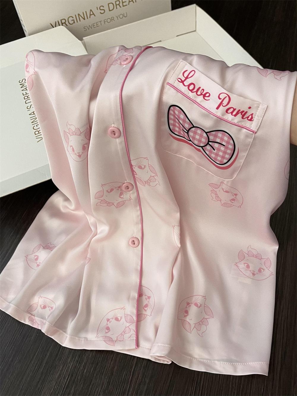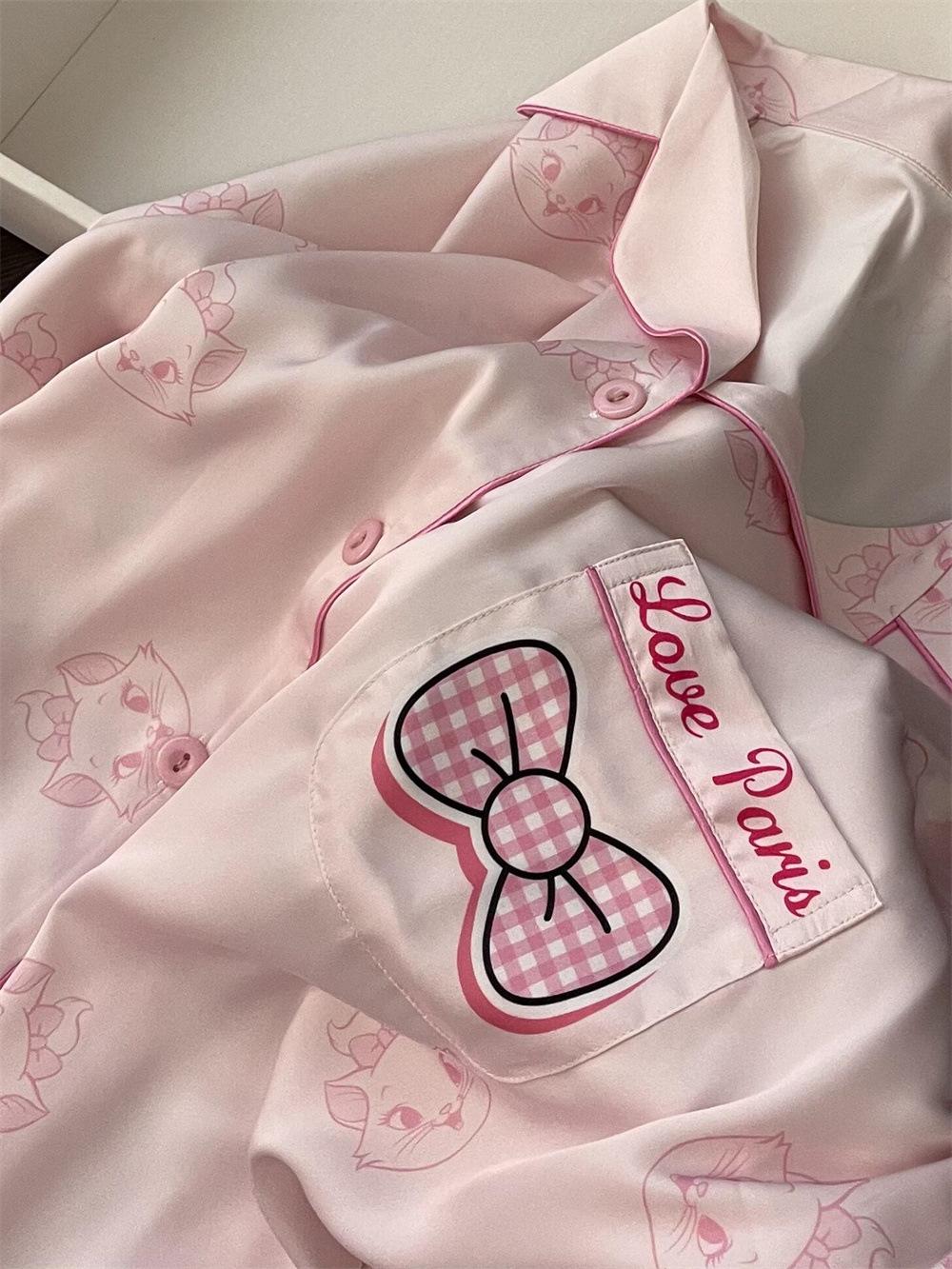 Pijama Rosa para Niña con Estampado de Lindo Gatito para Mujer Otoño Nuevo Seda Helada Manga Larga Pantalón Largo Conjunto para Estar en Casa