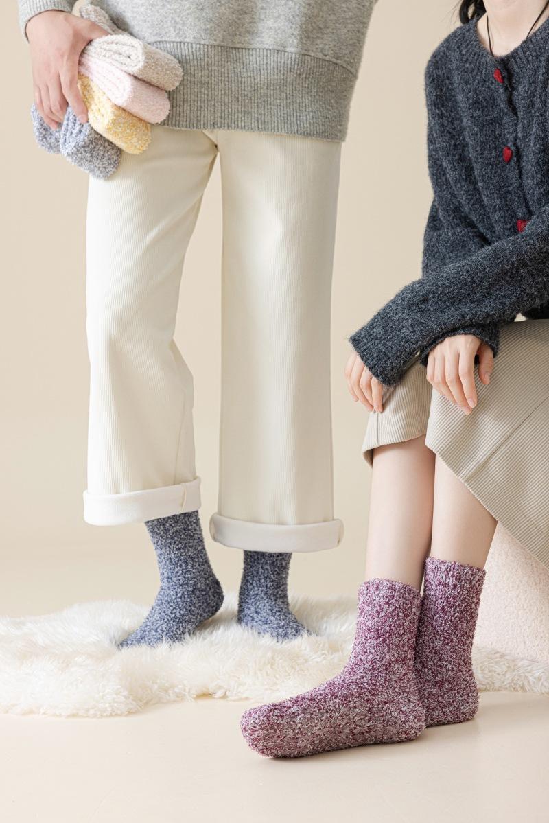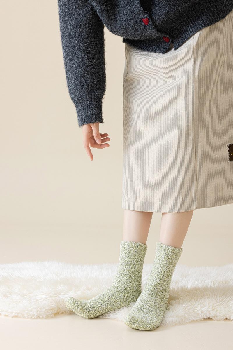 Calcetines para mujer engrosados de invierno de forro polar coral calcetines cálidos de terciopelo con puntos de pegamento calcetines de piso calcetines de media caña calcetines de felpa calcetines para dormir