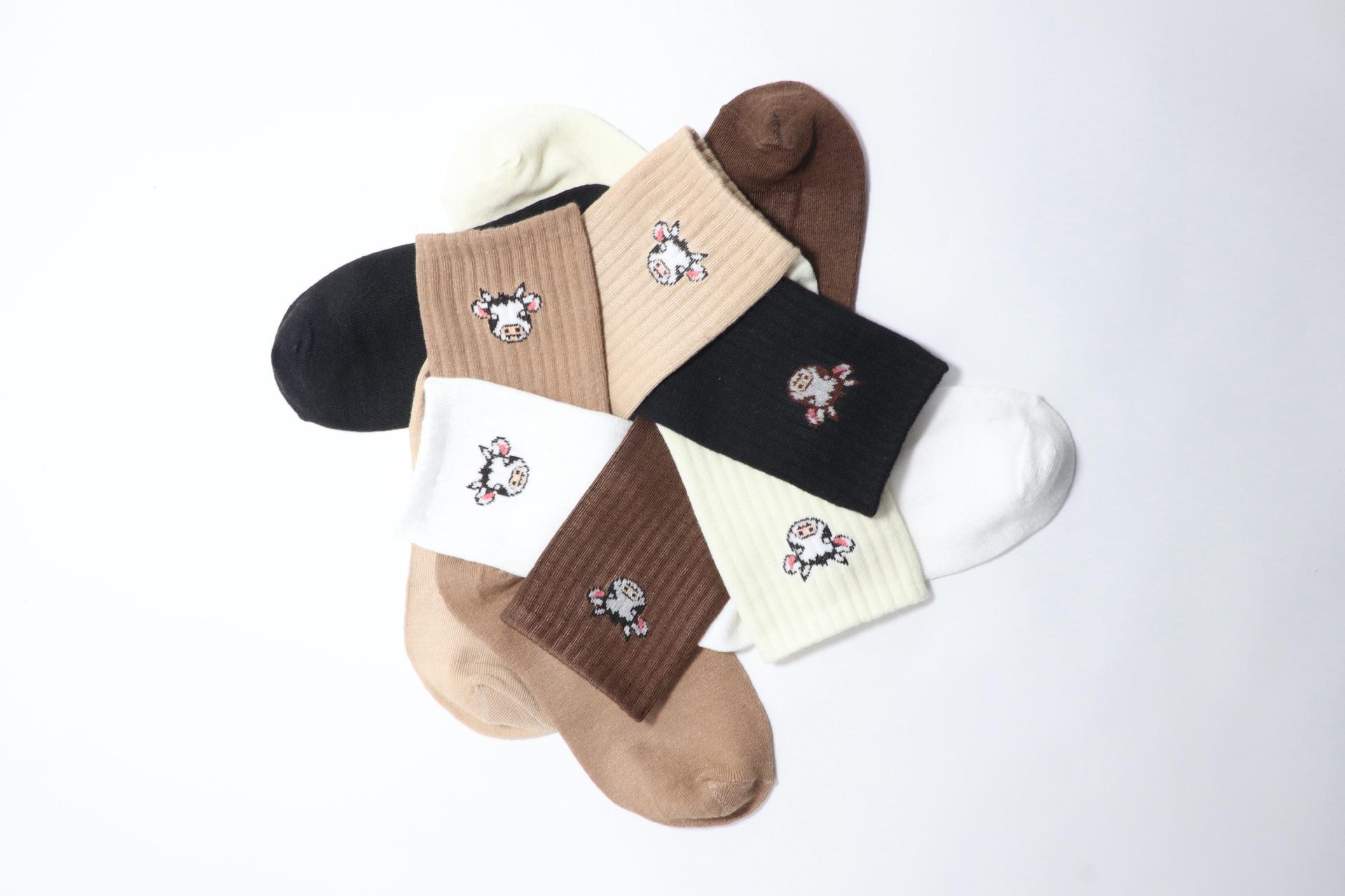 Calcetines Nuevos para Mujer para Primavera y Otoño, Calcetines Finos Lindos de Dibujos Animados Japoneses hasta la Pantorrilla de Media Caña, Calcetines Casuales para Mujer Color Café