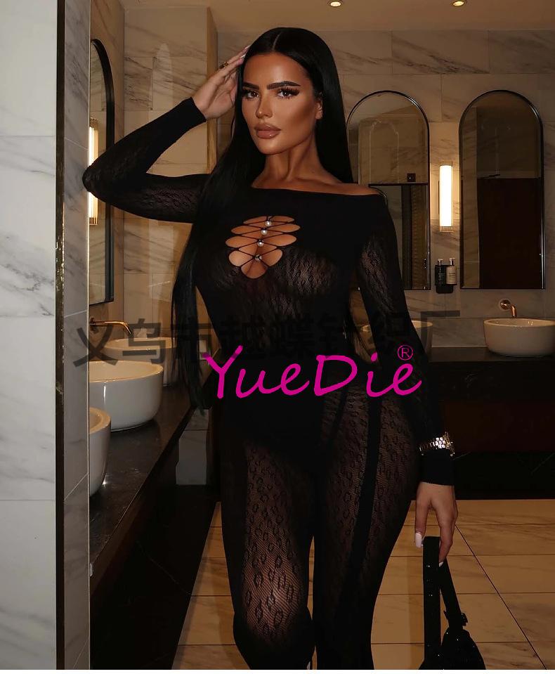 Nuevo Mono Sexy Ajustado con Hombros Descubiertos para Mujer Estilo Perla Manga Larga Estampado de Leopardo TG0023