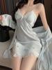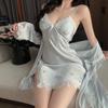 Light Blue【Nightgown-with bra pads】+Outer Robe