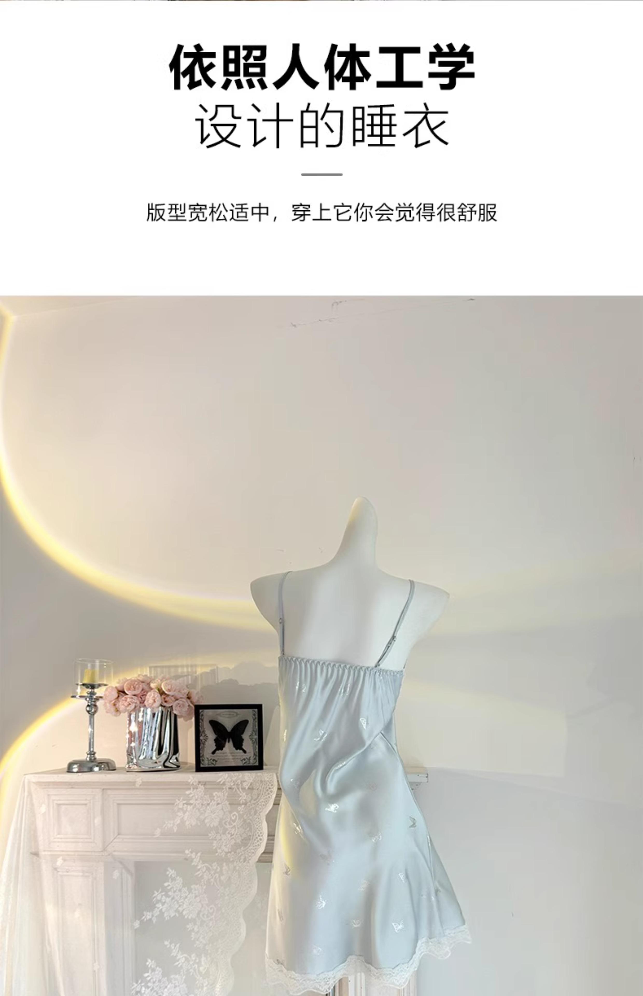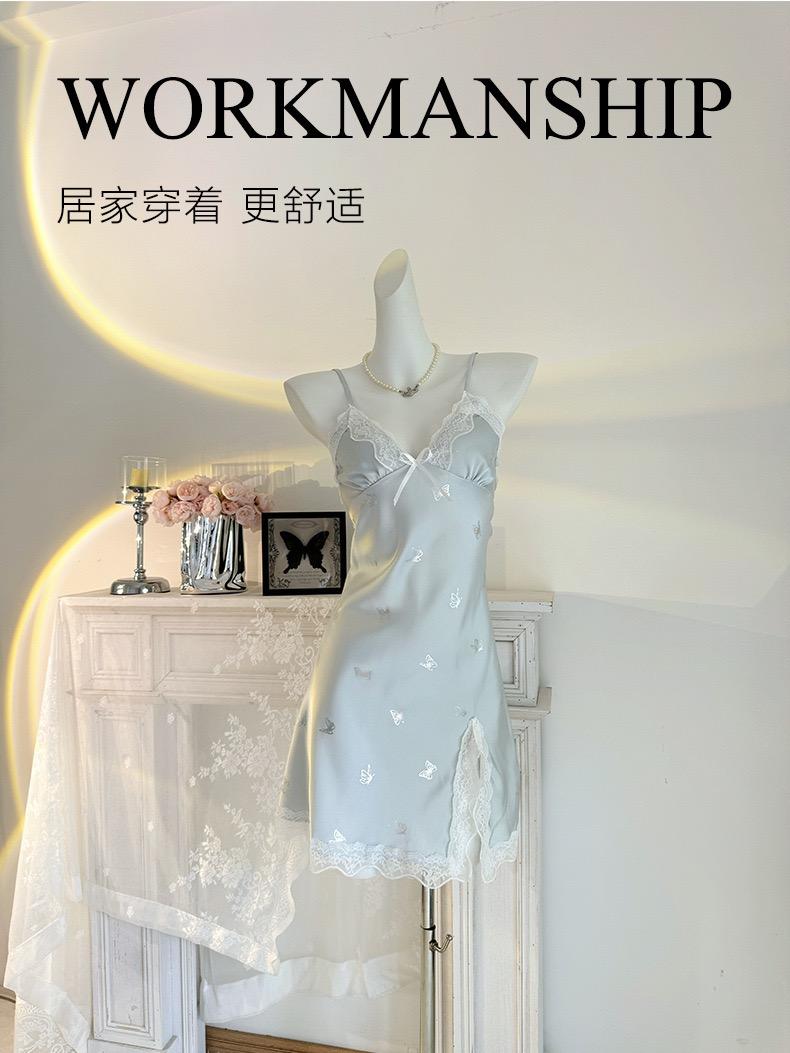 2025 Nuevo Camisón Sexy de Mariposa Pijama Estilo Deseo para Mujer Camisón con Almohadillas en el Pecho Dulce Seda de Hielo Ropa para el Hogar