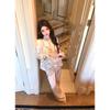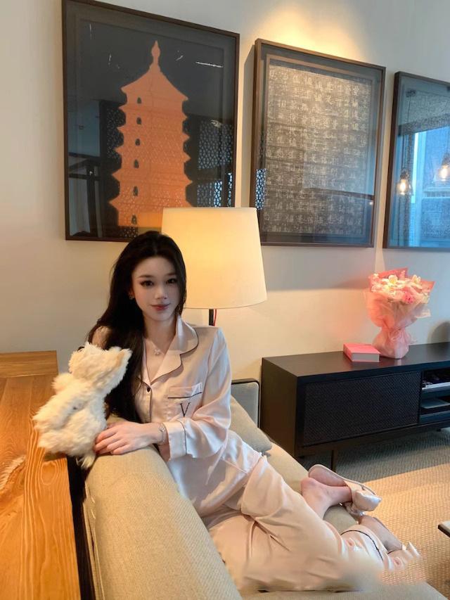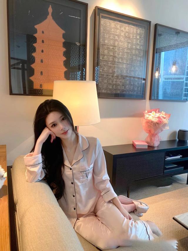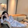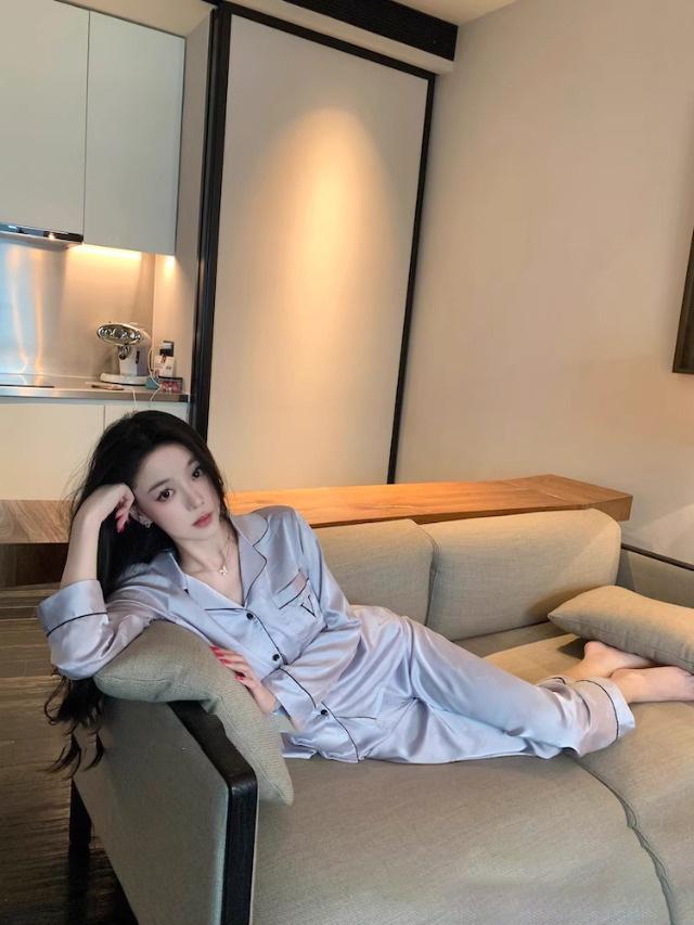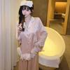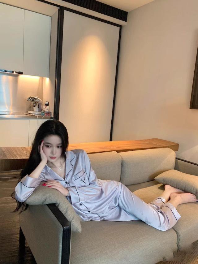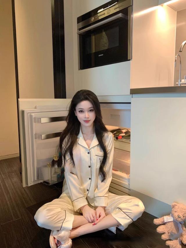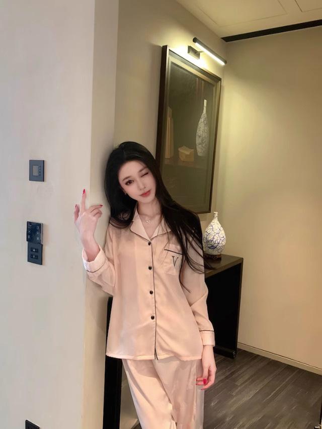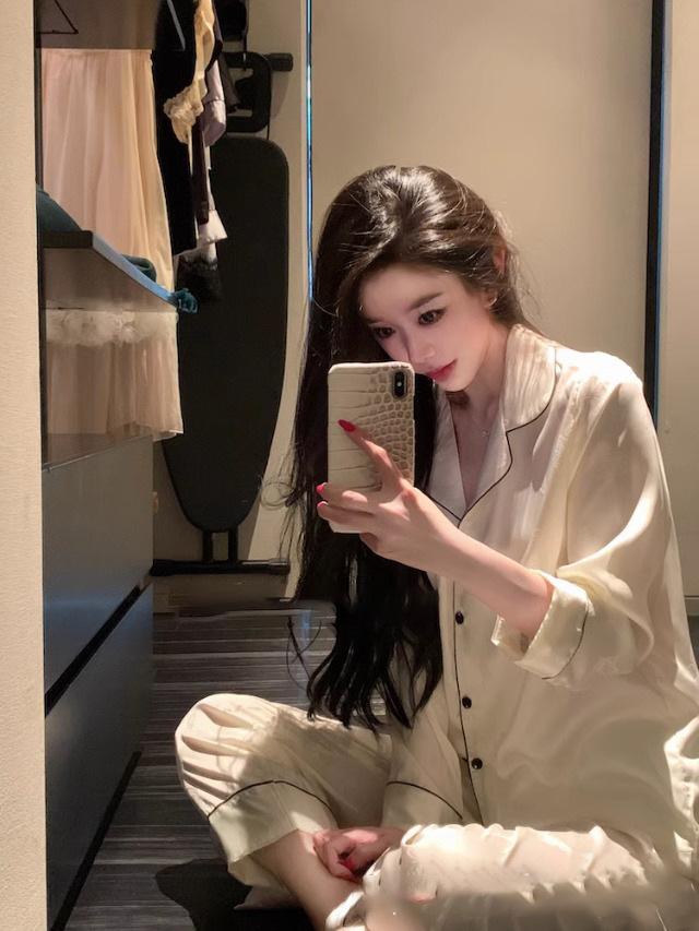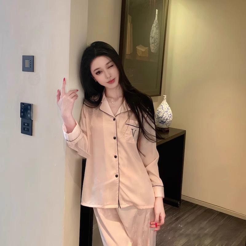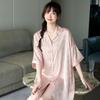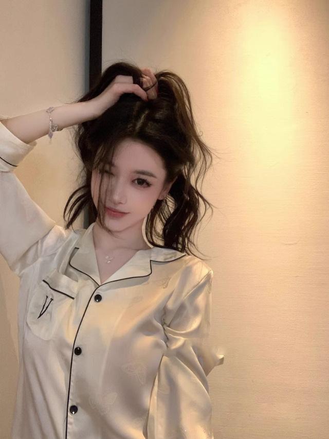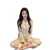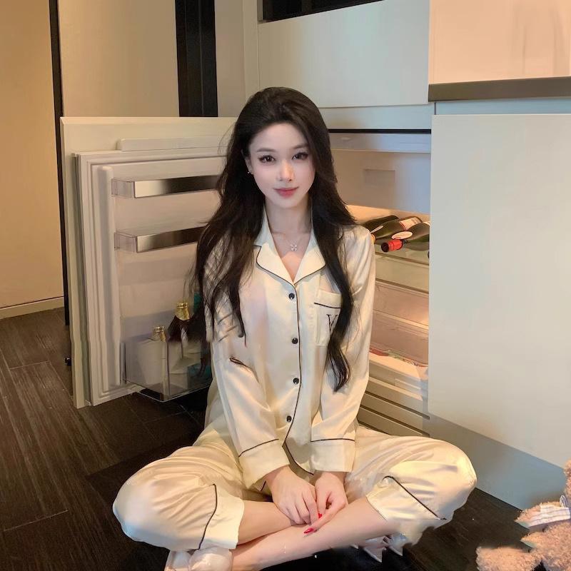 Pijama jacquard de mariposas para mujer de seda de imitación seda primavera otoño invierno manga larga pantalón largo sencillo de alta gama conjunto de ropa para el hogar