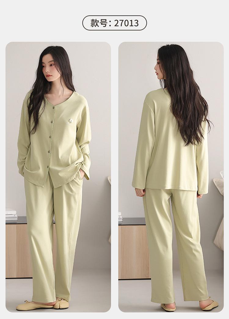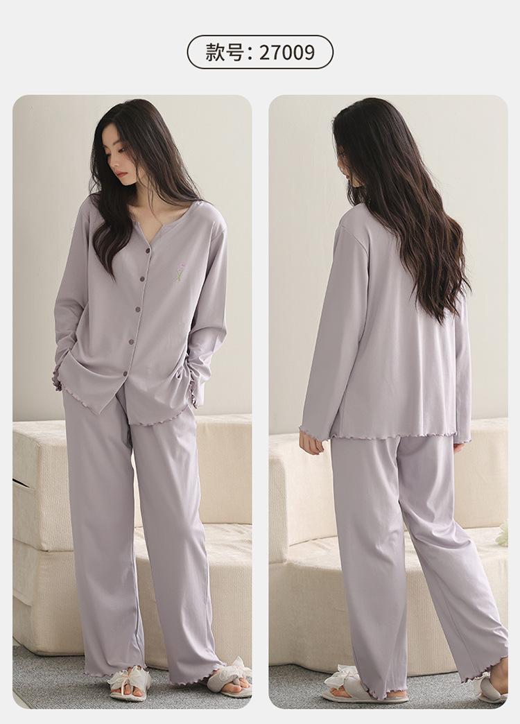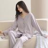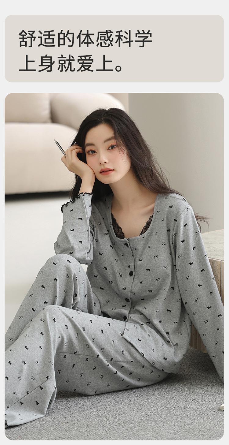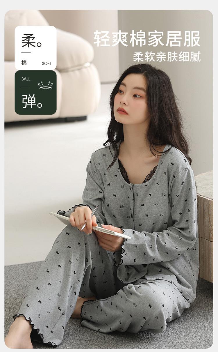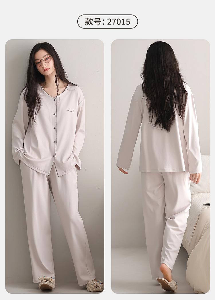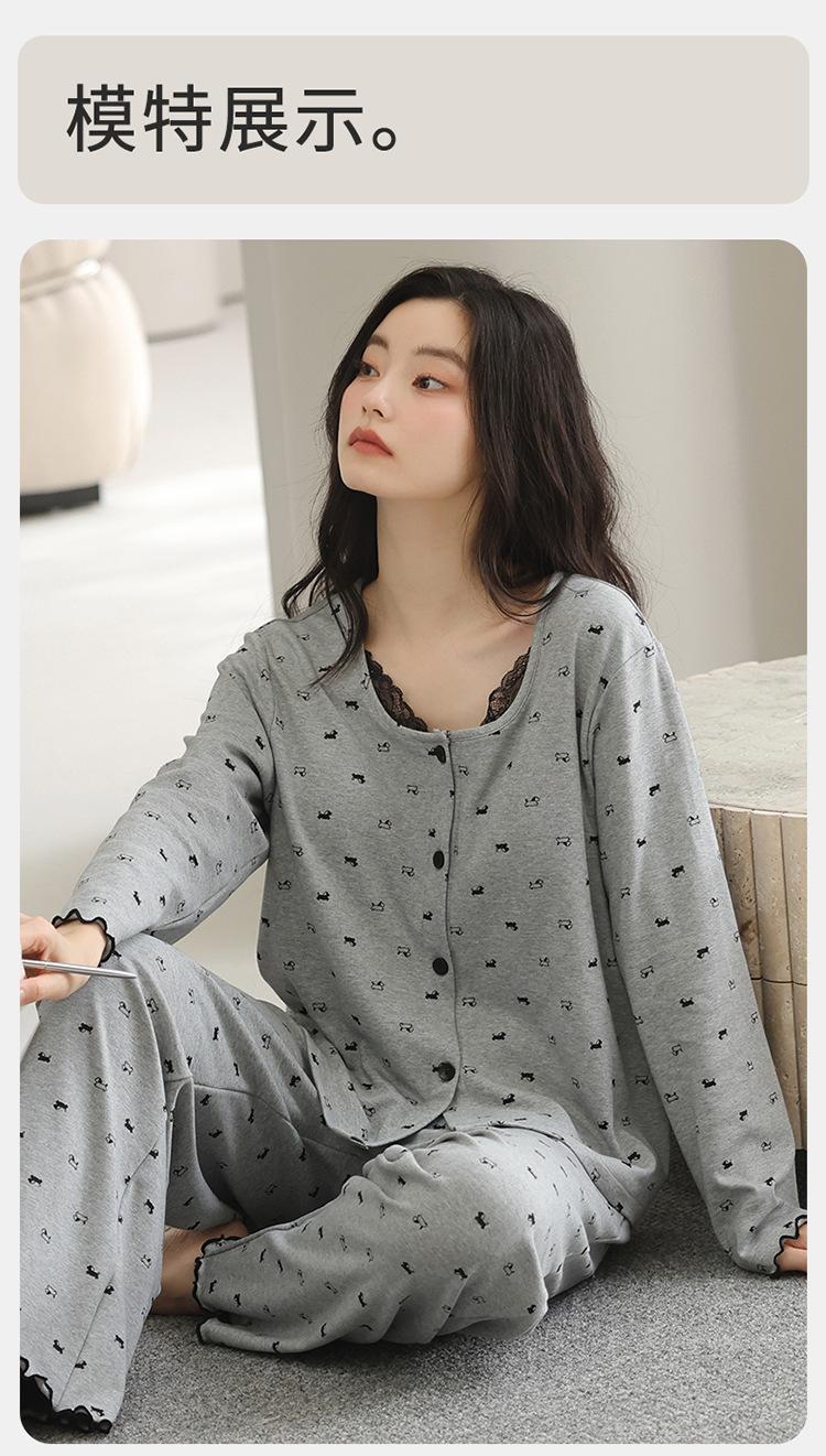 Pijamas de Algodón Puro para Mujer 2025 Nuevo Estilo de Primavera y Otoño Algodón Fresco Cárdigan Manga Larga Simple Talla Grande Conjunto Ropa de Casa Se Puede Usar Afuera