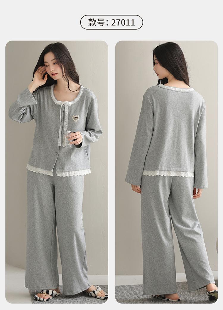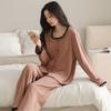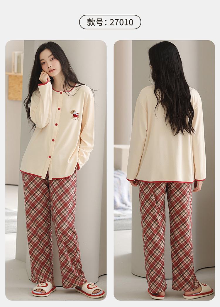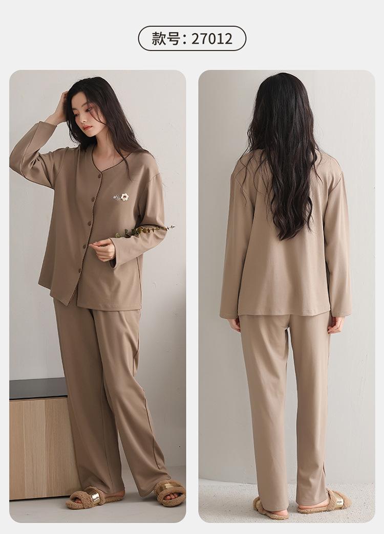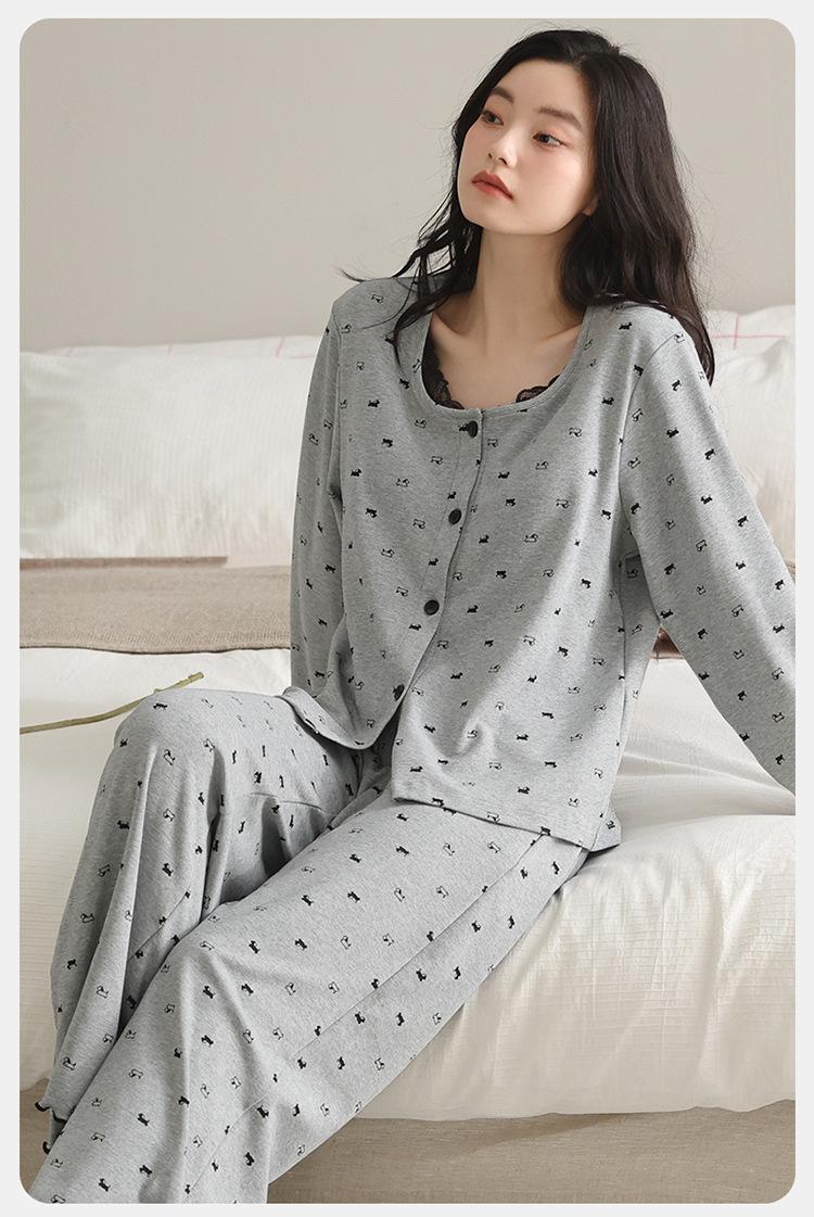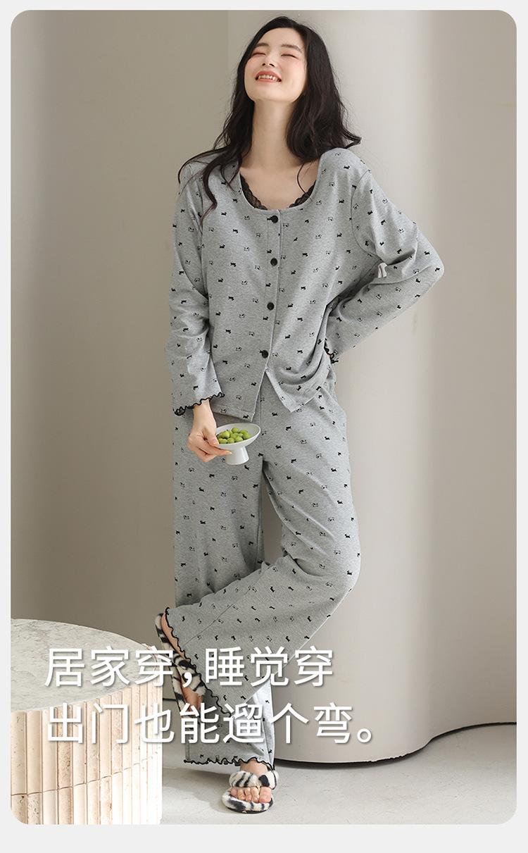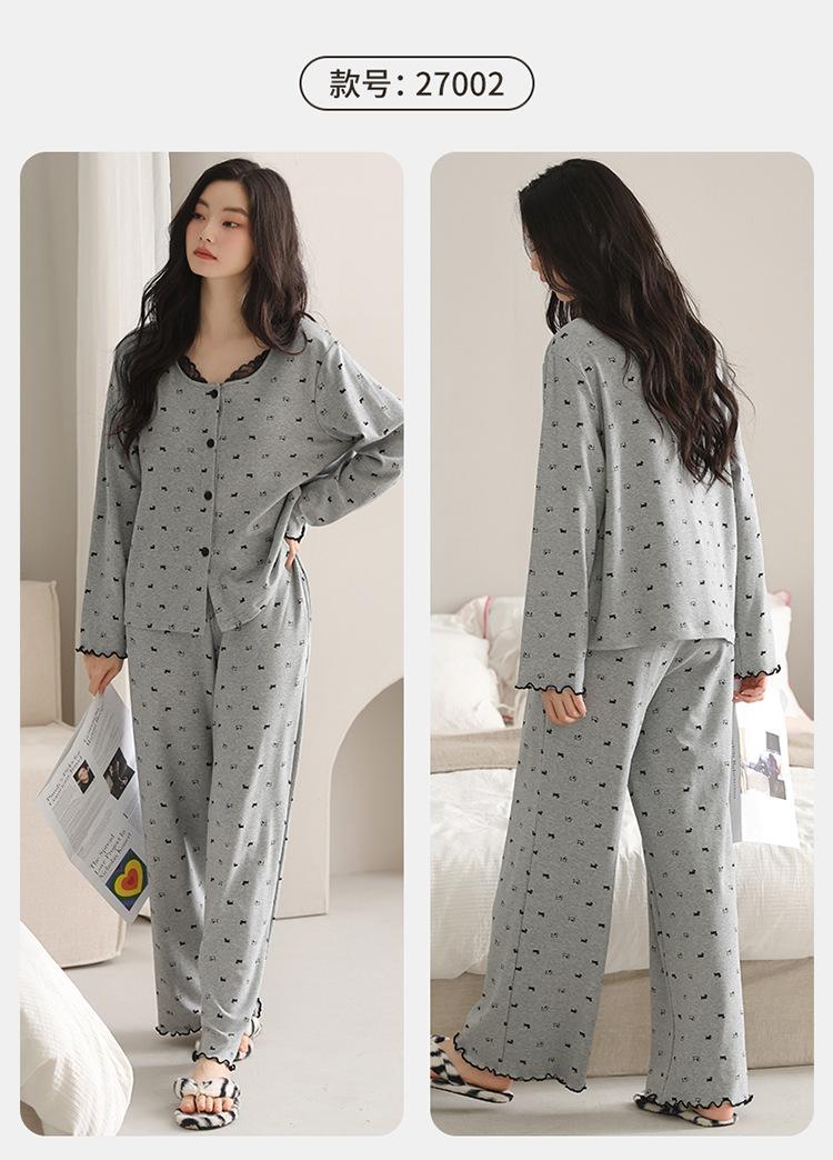 Pijamas de Algodón Puro para Mujer 2025 Nuevo Estilo de Primavera y Otoño Algodón Fresco Cárdigan Manga Larga Simple Talla Grande Conjunto Ropa de Casa Se Puede Usar Afuera