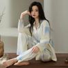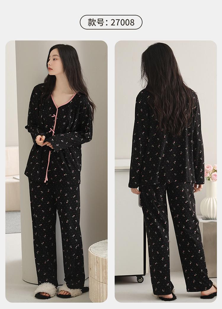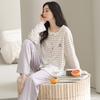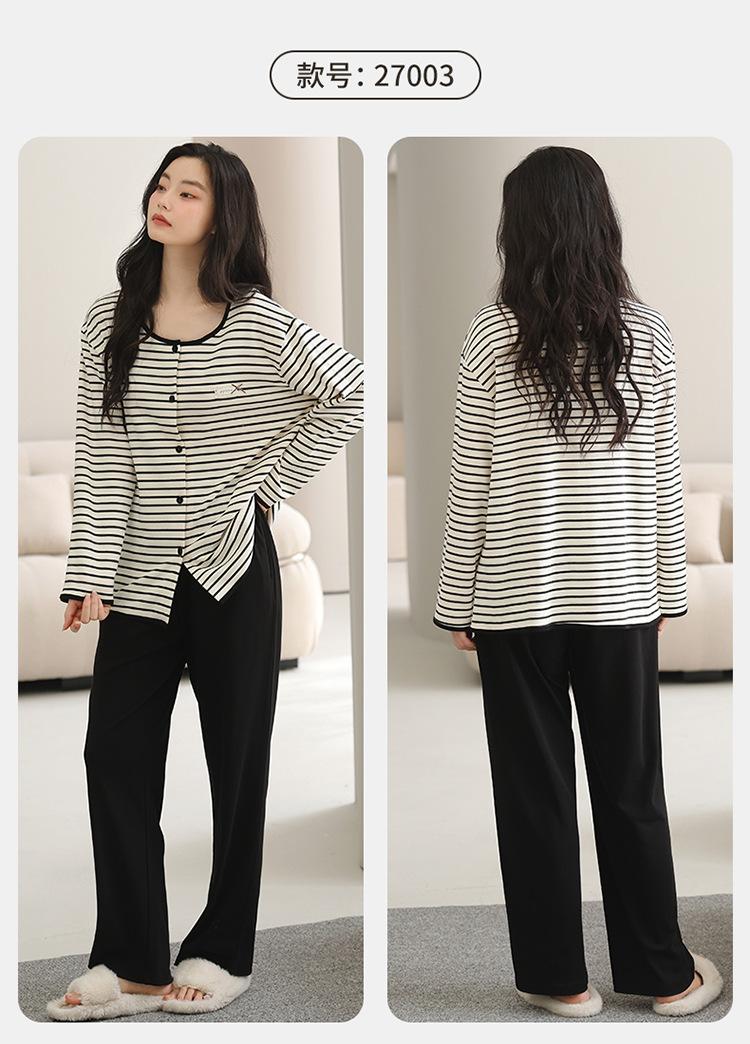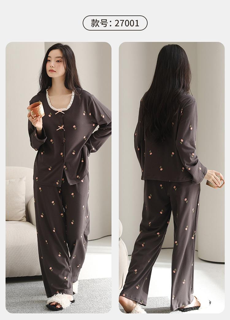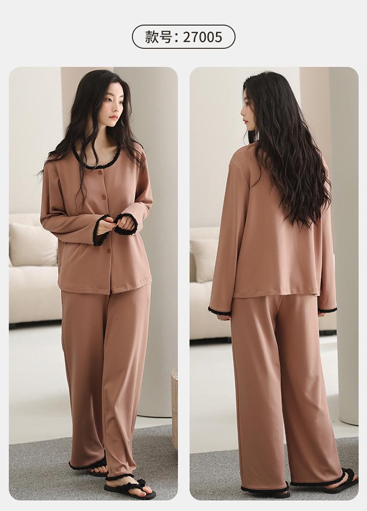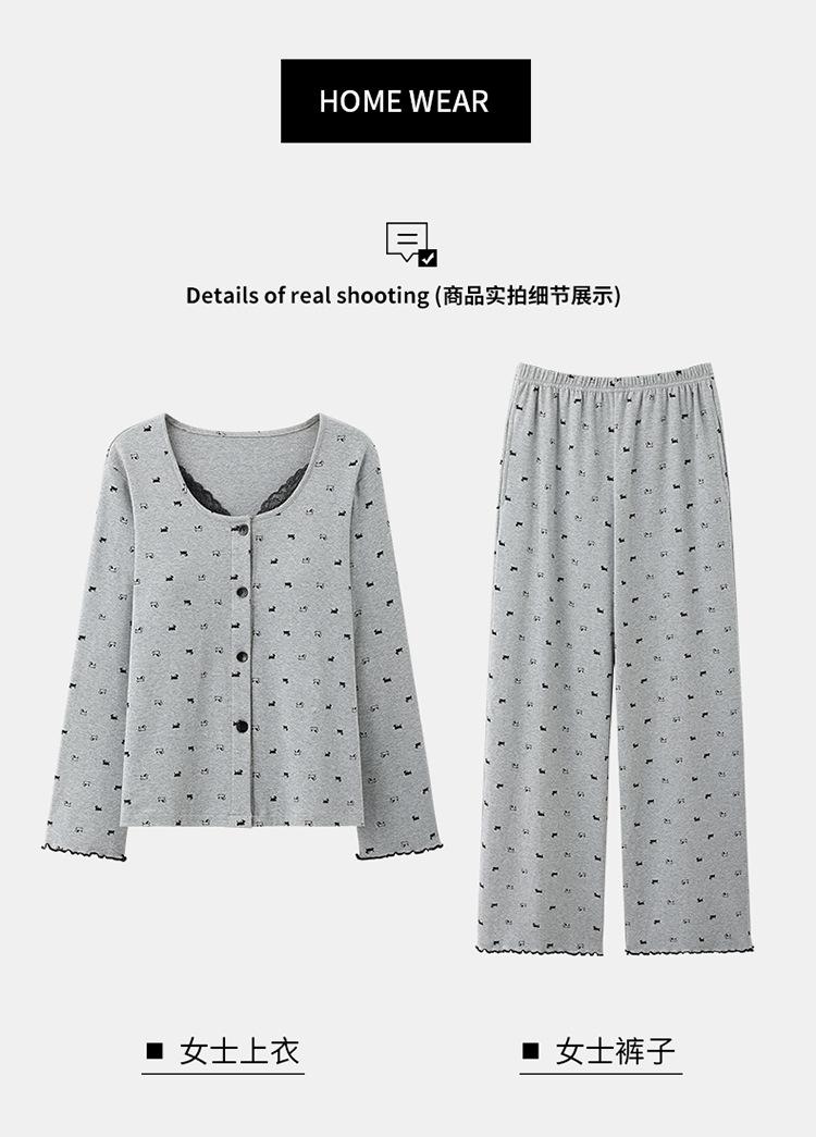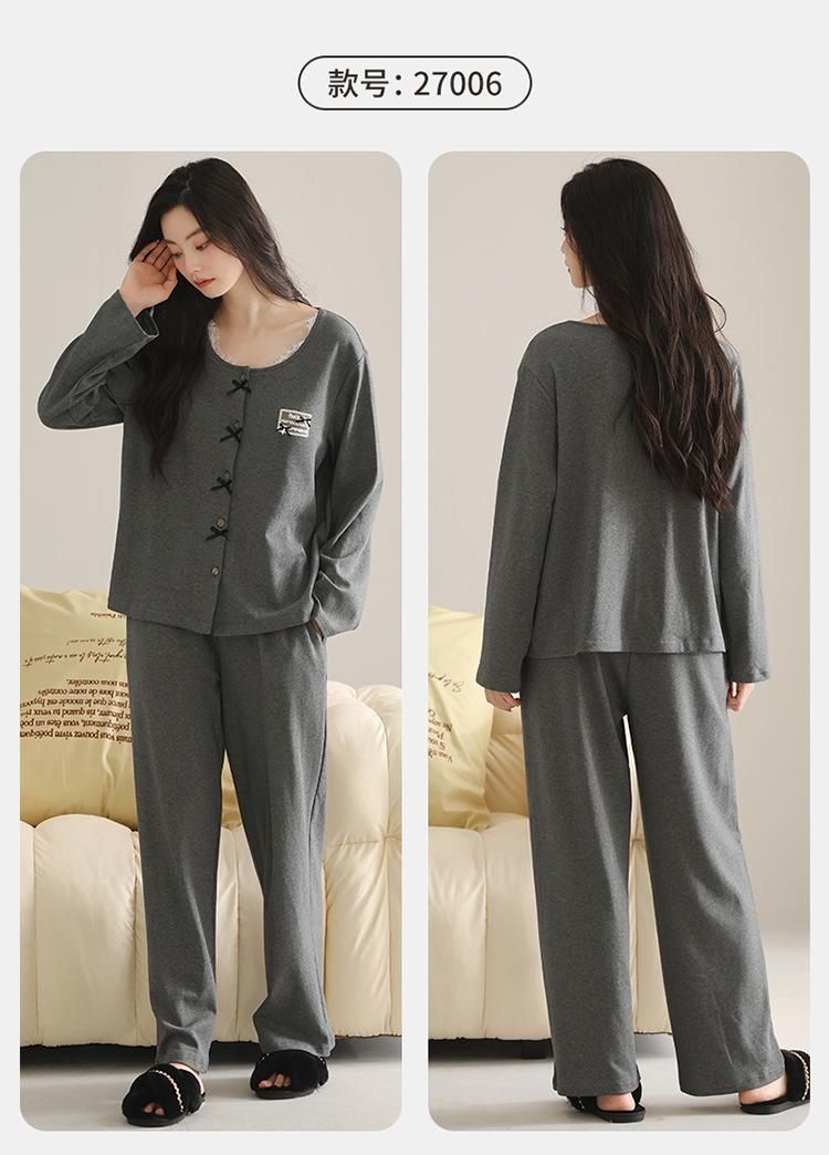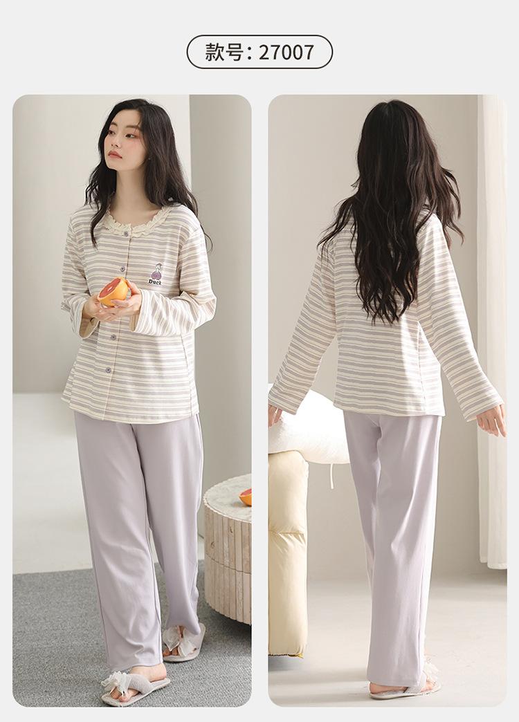 Pijamas de Algodón Puro para Mujer 2025 Nuevo Estilo de Primavera y Otoño Algodón Fresco Cárdigan Manga Larga Simple Talla Grande Conjunto Ropa de Casa Se Puede Usar Afuera