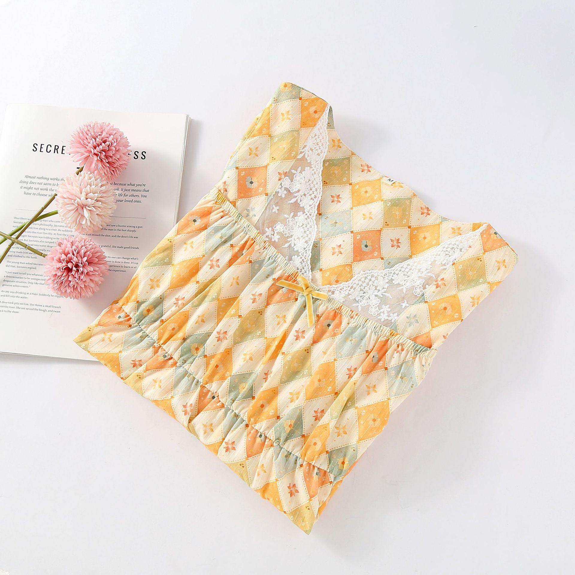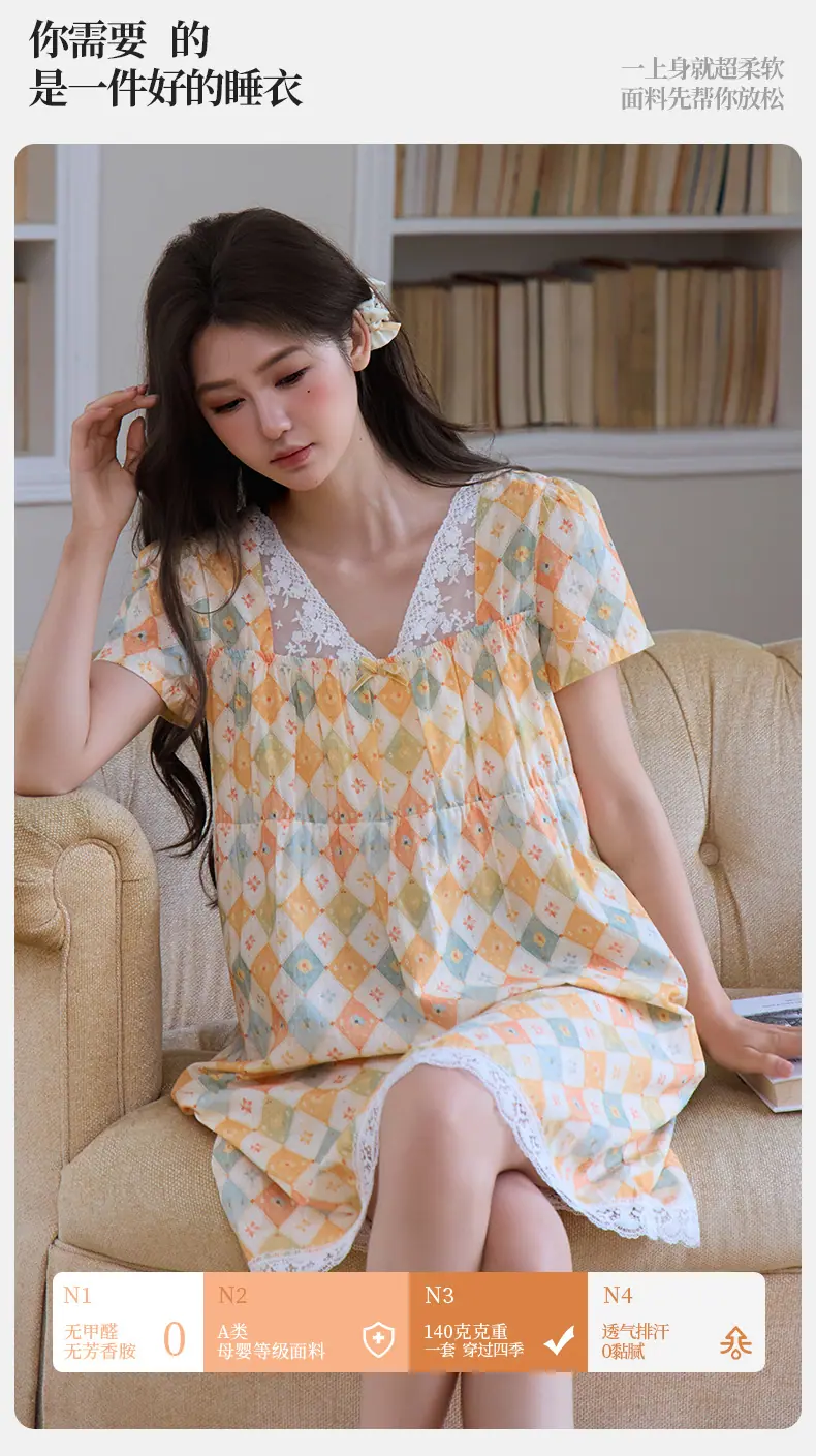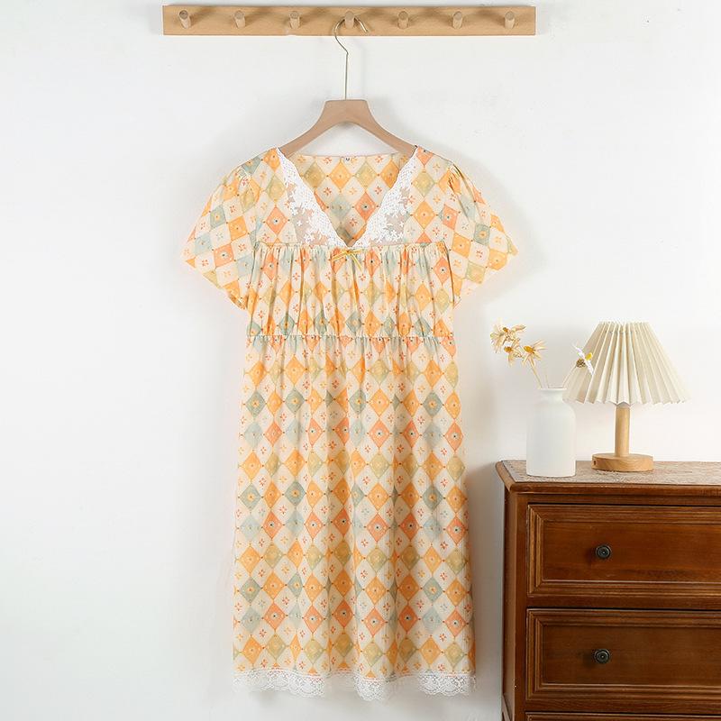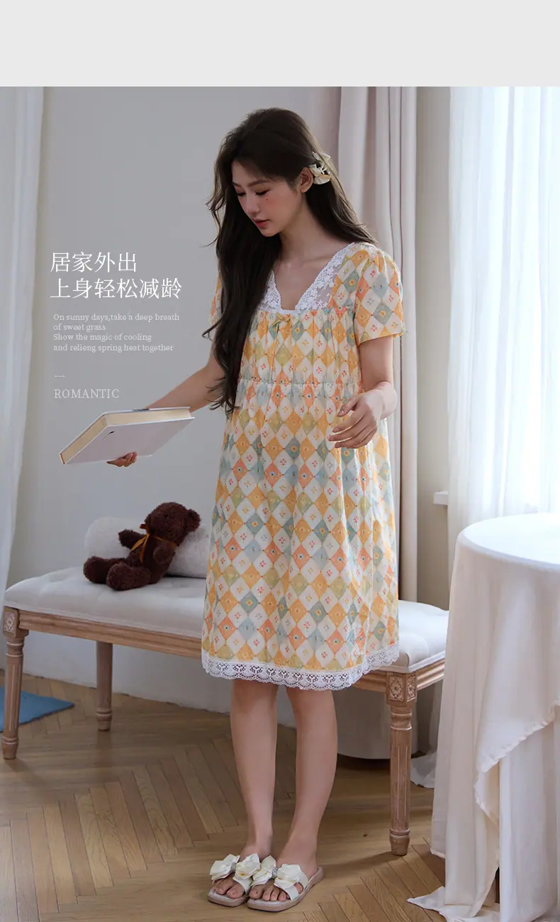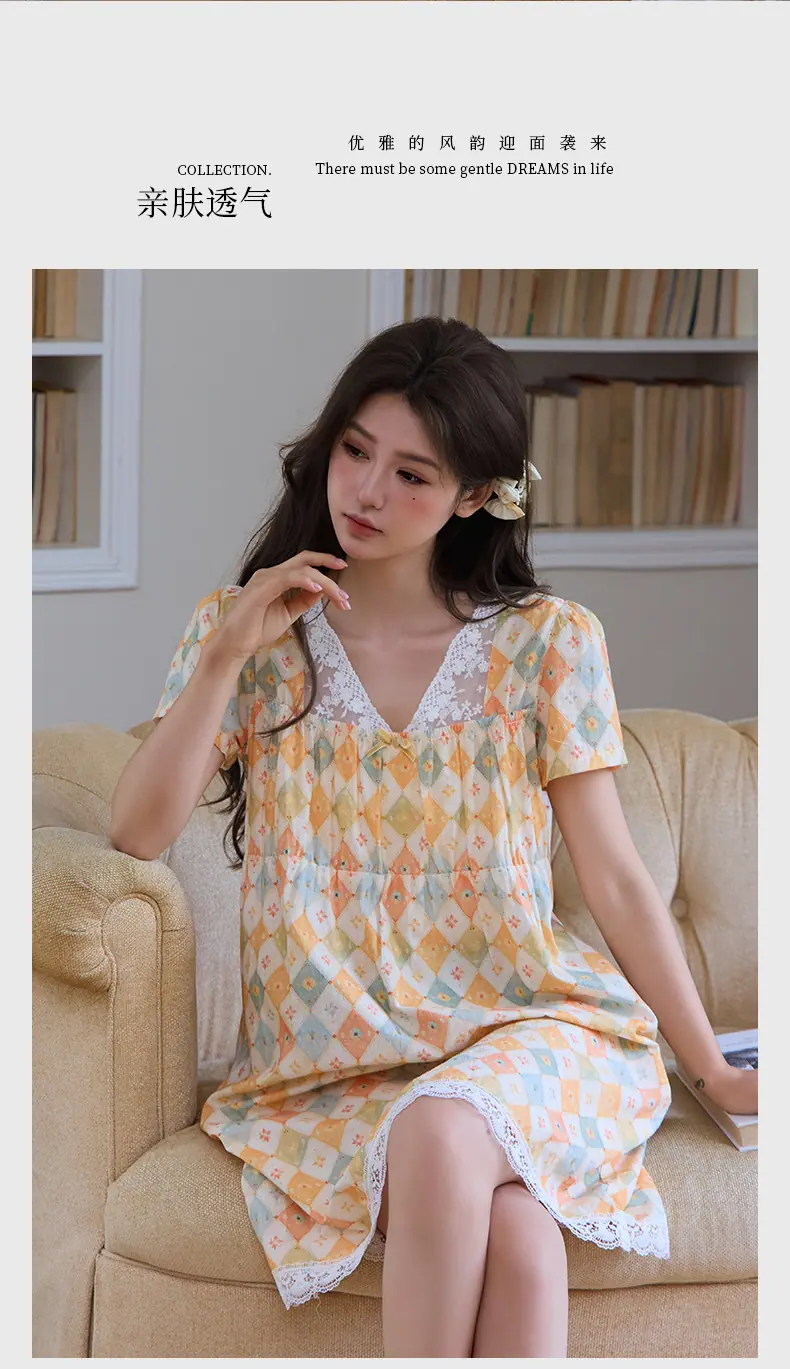Camisón de algodón puro de largo medio para primavera y verano, de gasa fina de algodón, se puede usar como una sola pieza, dulce falda de pijama con encaje.