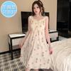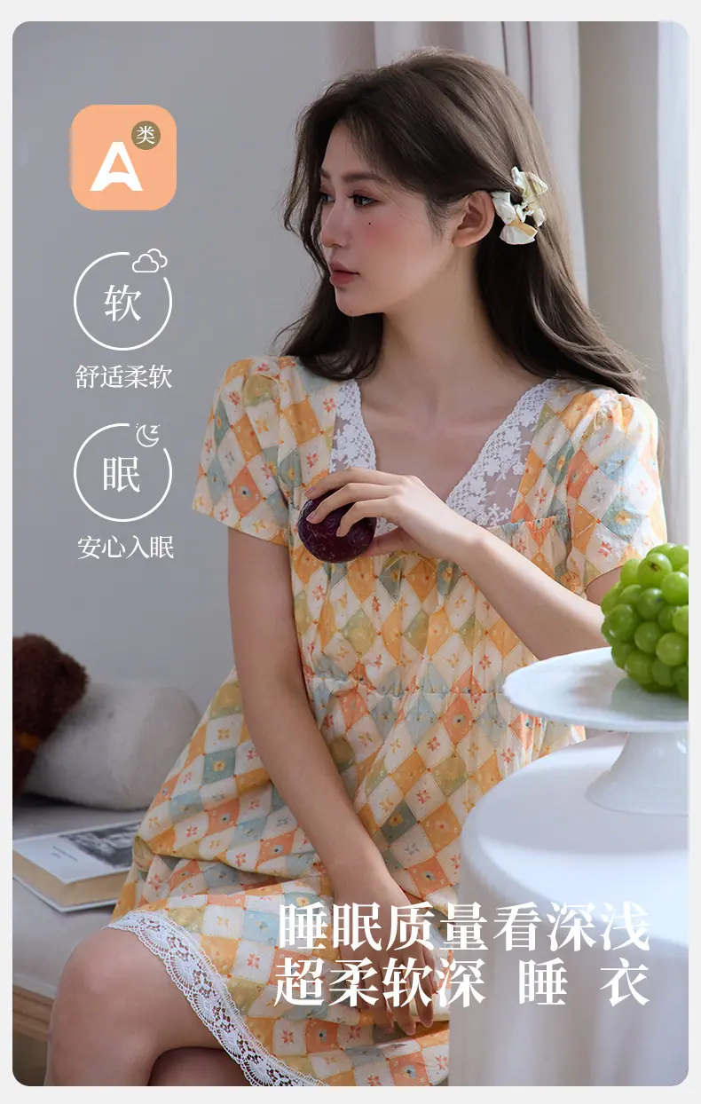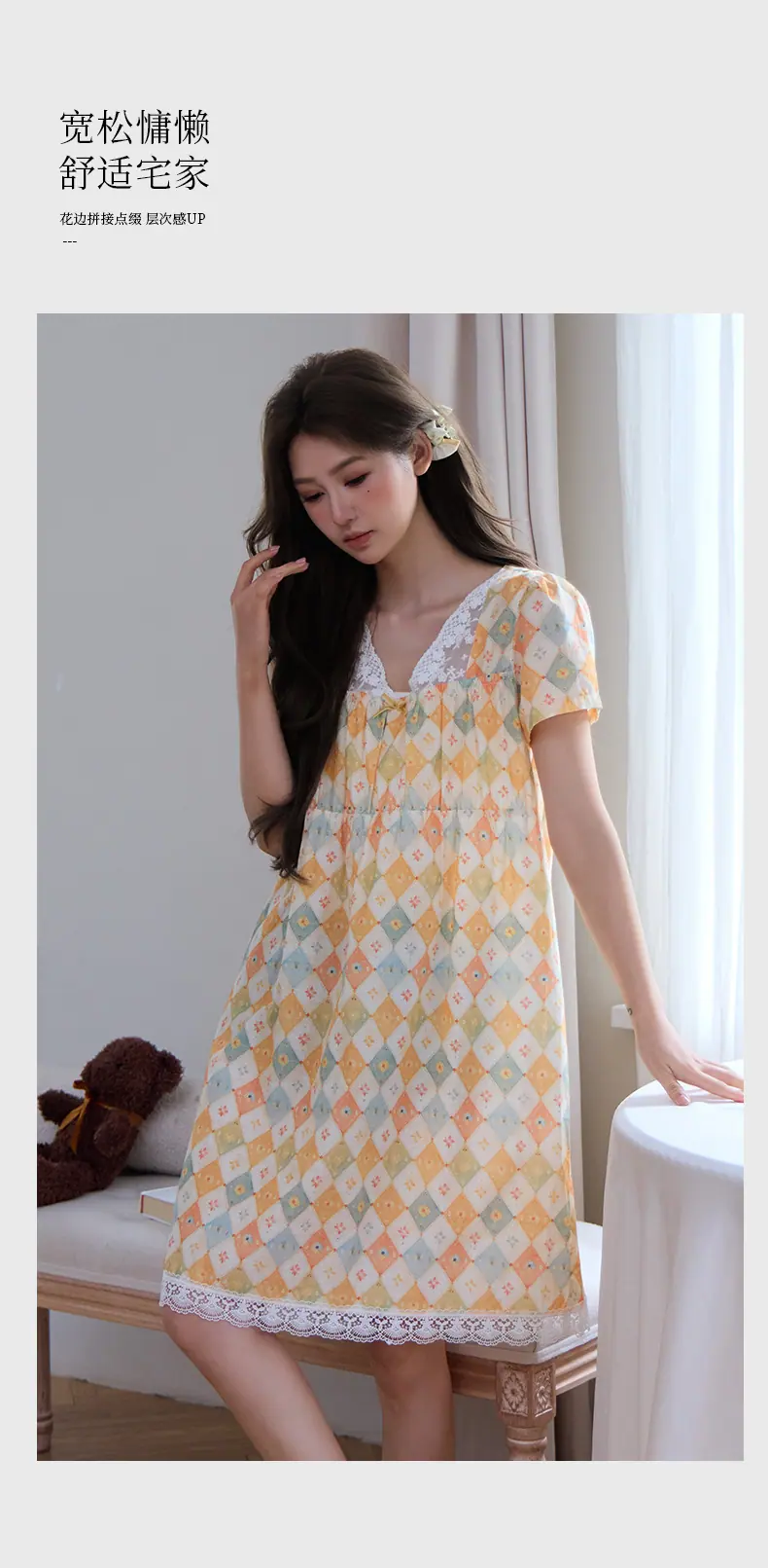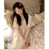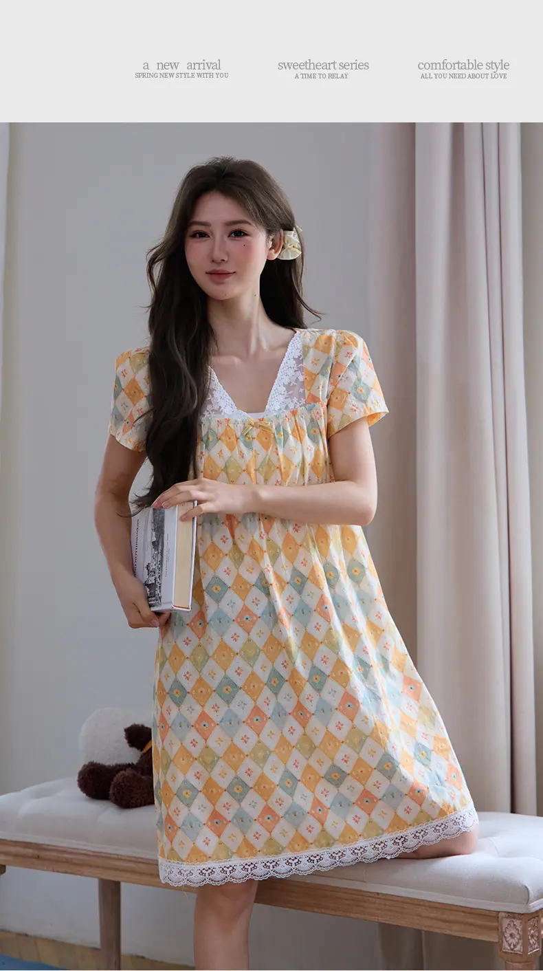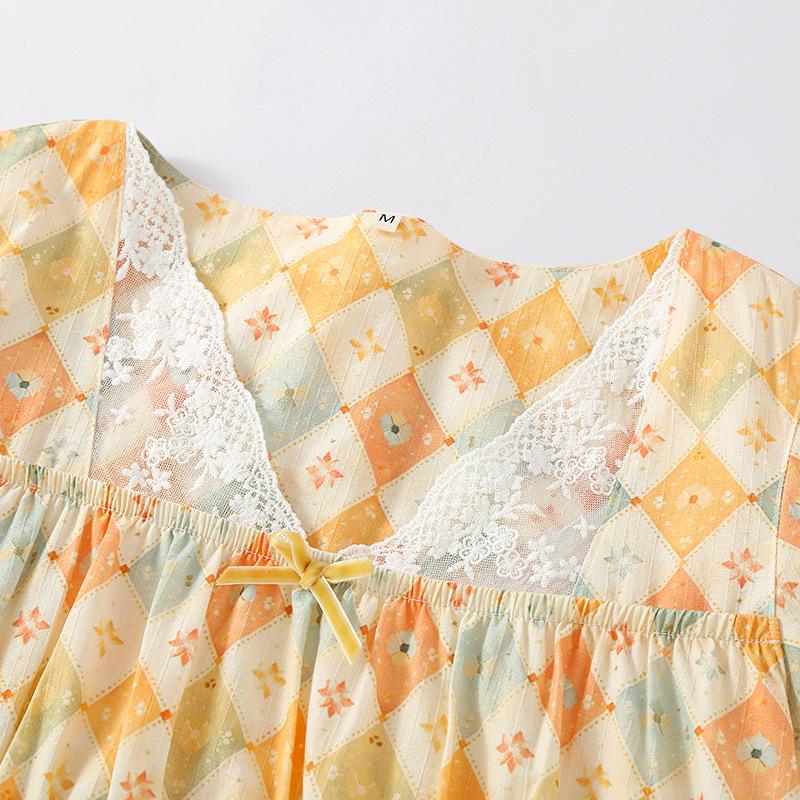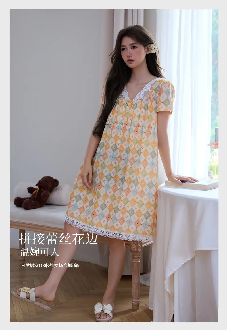 Camisón de algodón puro de largo medio para primavera y verano, de gasa fina de algodón, se puede usar como una sola pieza, dulce falda de pijama con encaje.