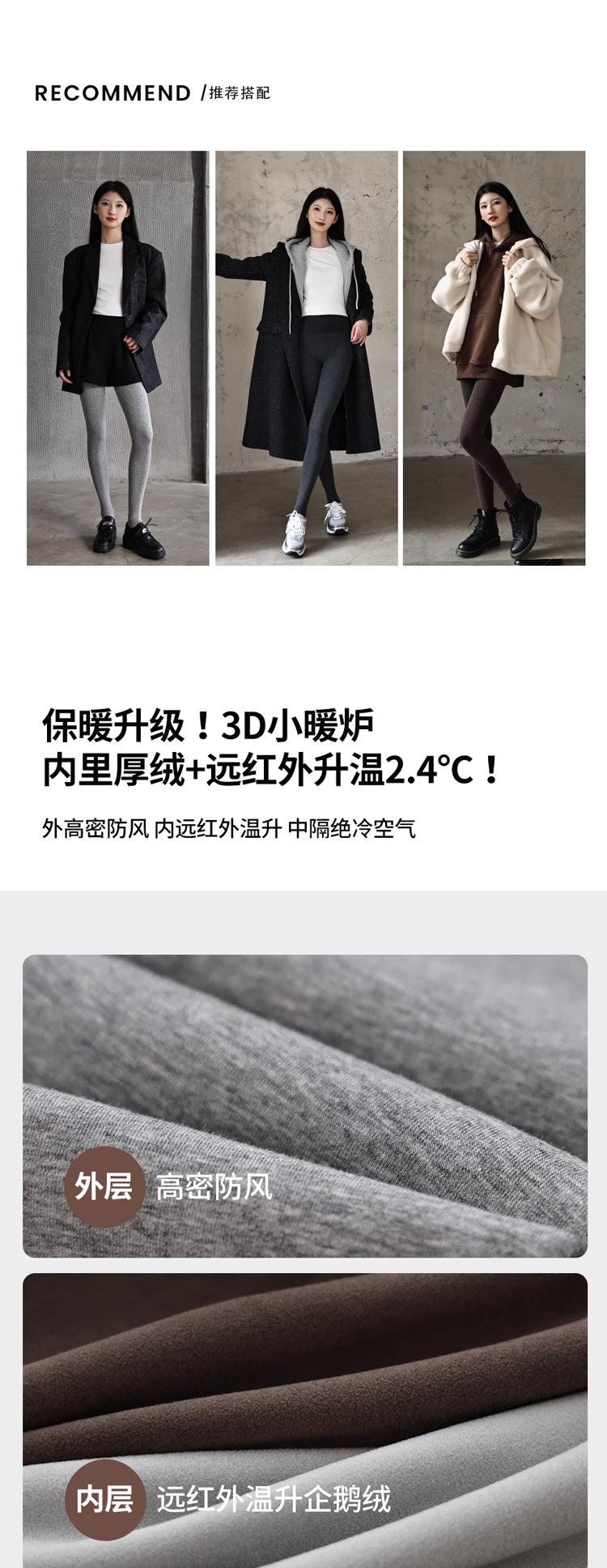 Pantyhose de Presión Segmentada Ropa Exterior de Mujer Primavera Otoño Invierno Leggings Adelgazantes Control de Abdomen Levanta Cadera Más Terciopelo Espesor Cálida Capa Base