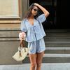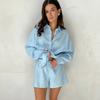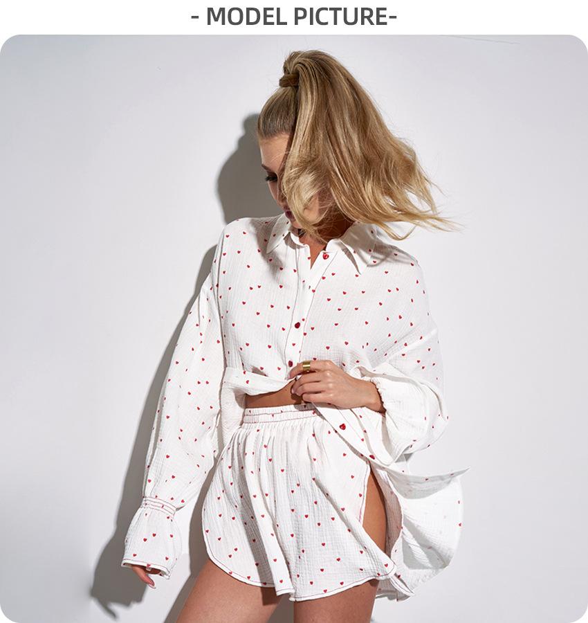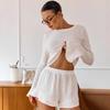 2025 Otoño Europeo y Americano Nuevo Pijama Mujer Algodón Puro Transpirable Cómodo Manga Larga Shorts Ropa de Casa Set de Dos Piezas para Mujer