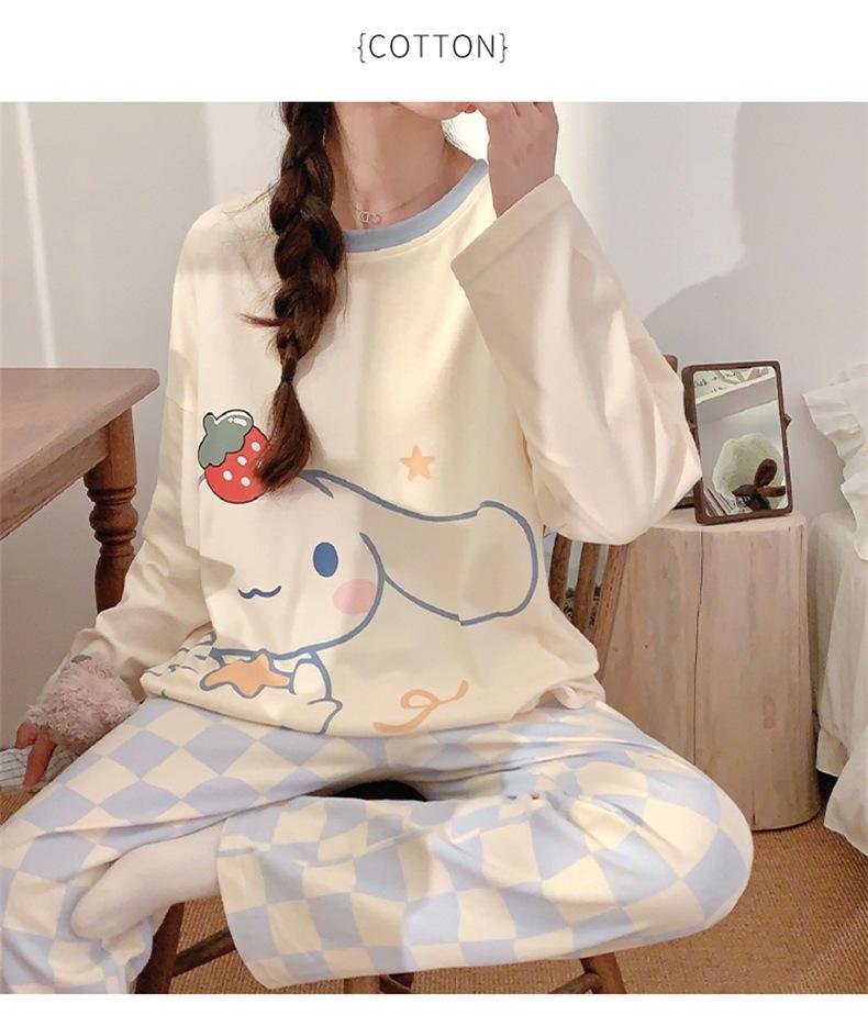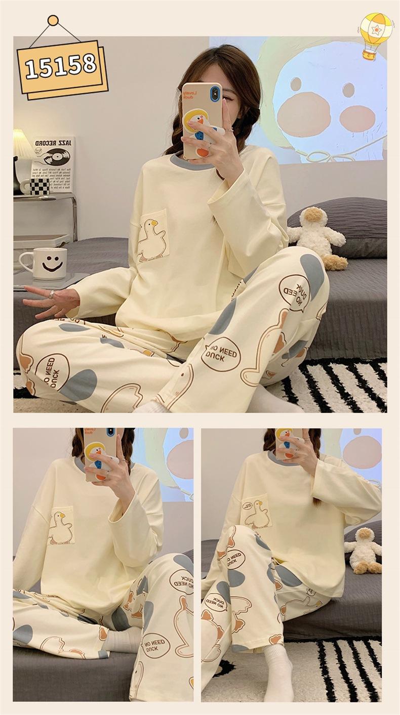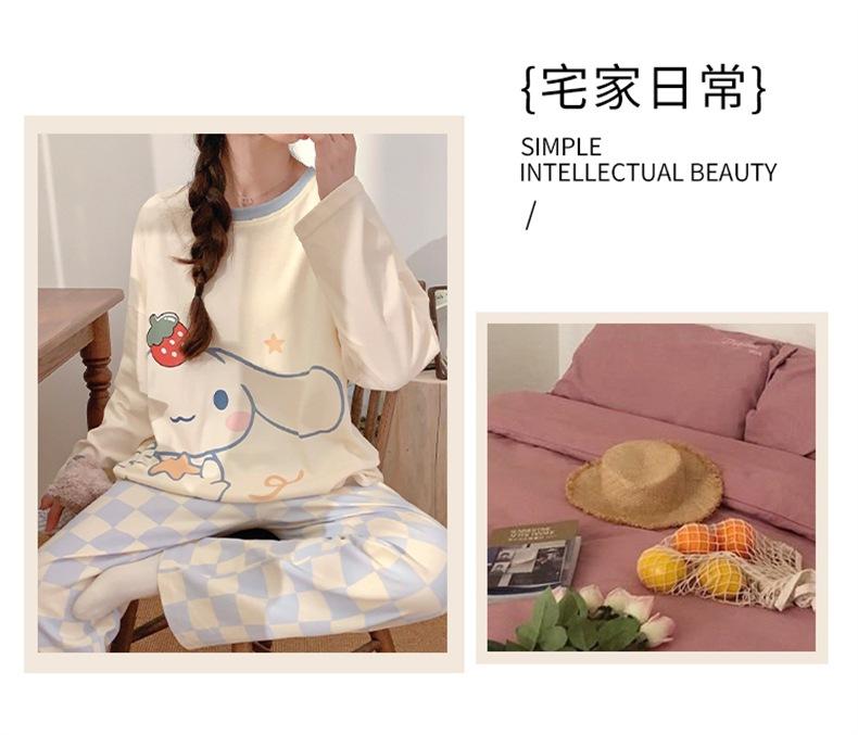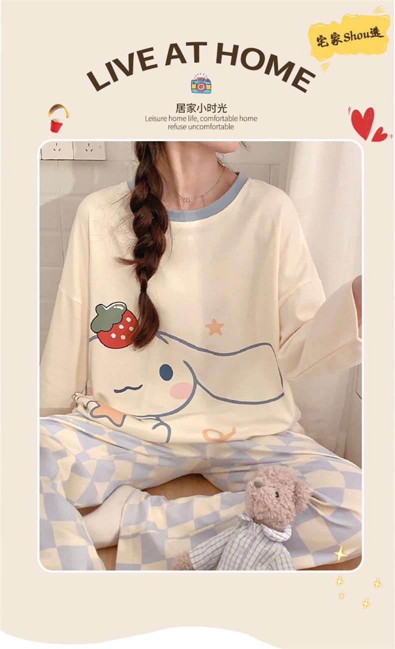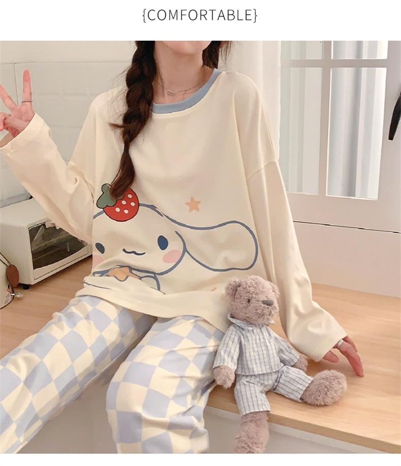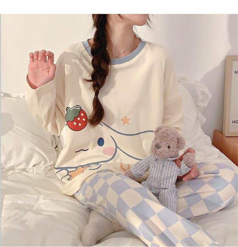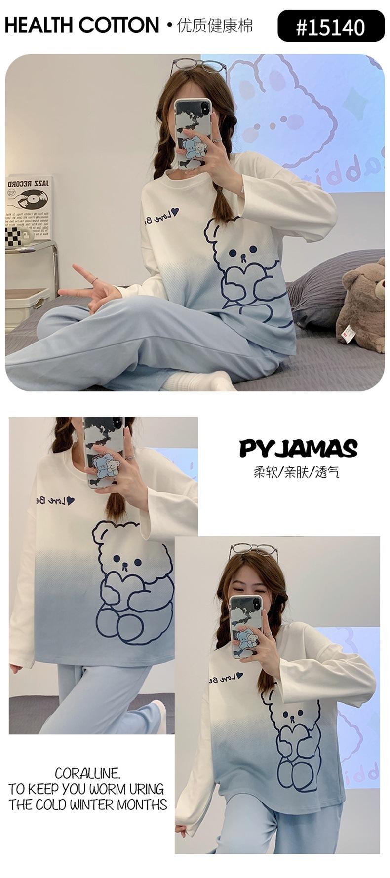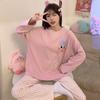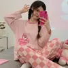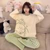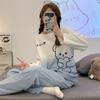 Color Sólido Venta al Por Mayor En Stock Otoño y Primavera Pijama Nuevo Mujer Algodón Dulce Dibujos Animados Jersey Manga Larga Pantalón Largo Ropa de Casa