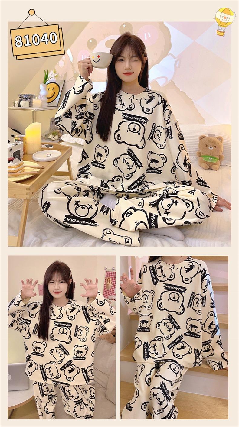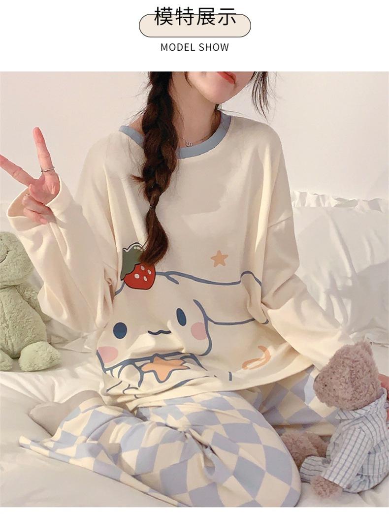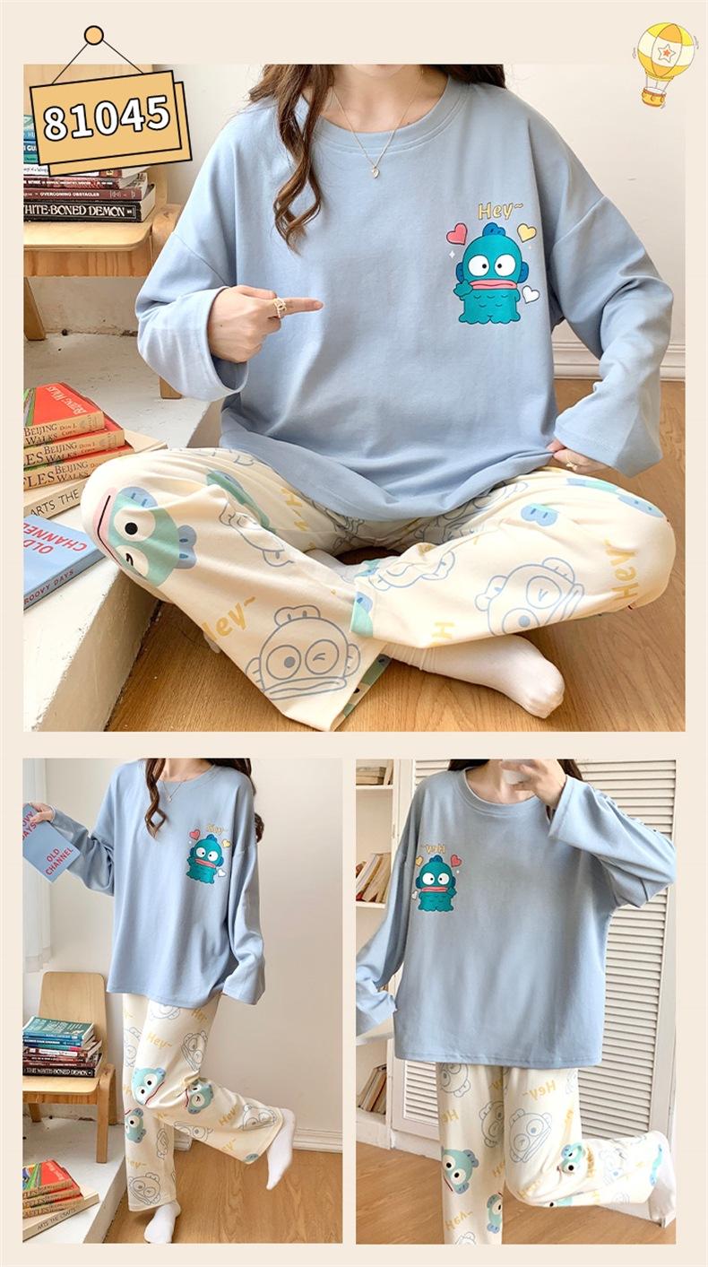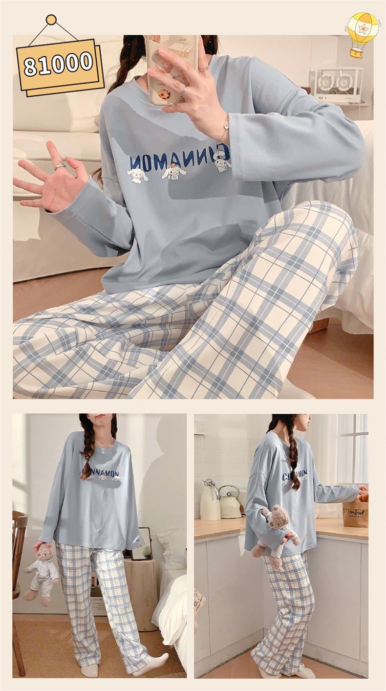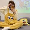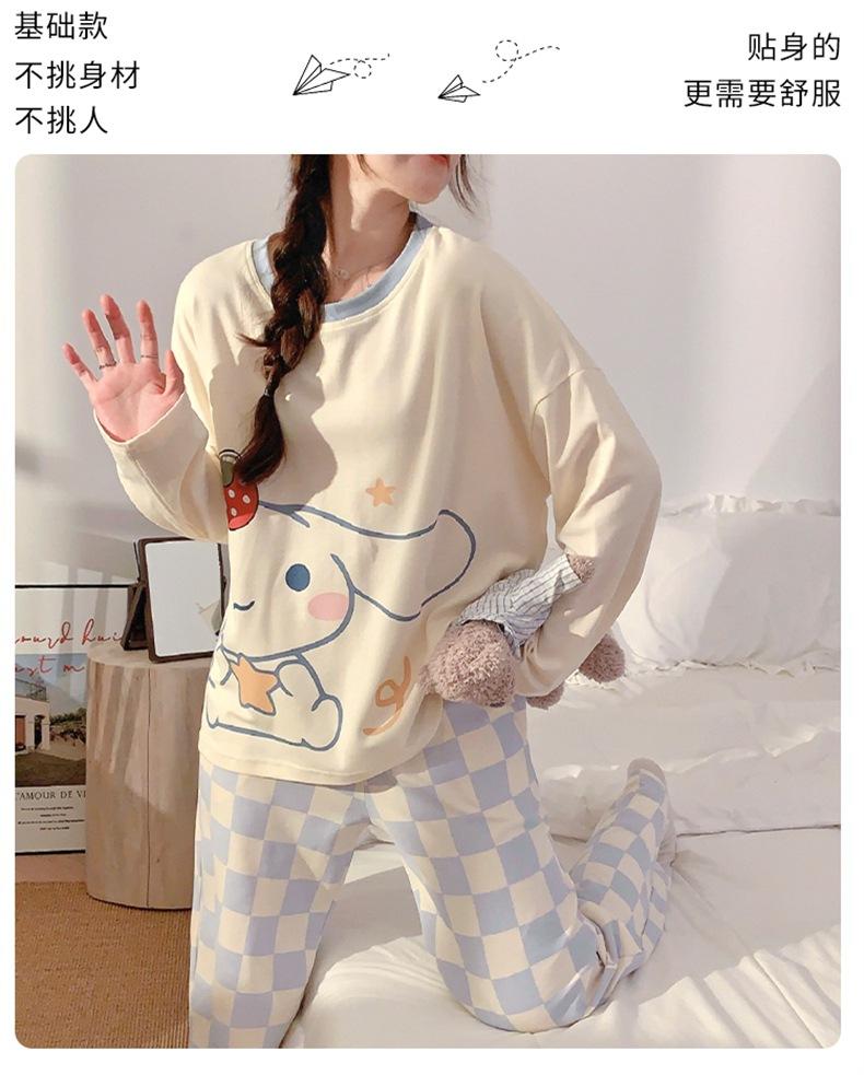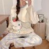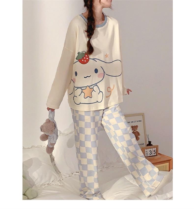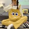 Color Sólido Venta al Por Mayor En Stock Otoño y Primavera Pijama Nuevo Mujer Algodón Dulce Dibujos Animados Jersey Manga Larga Pantalón Largo Ropa de Casa