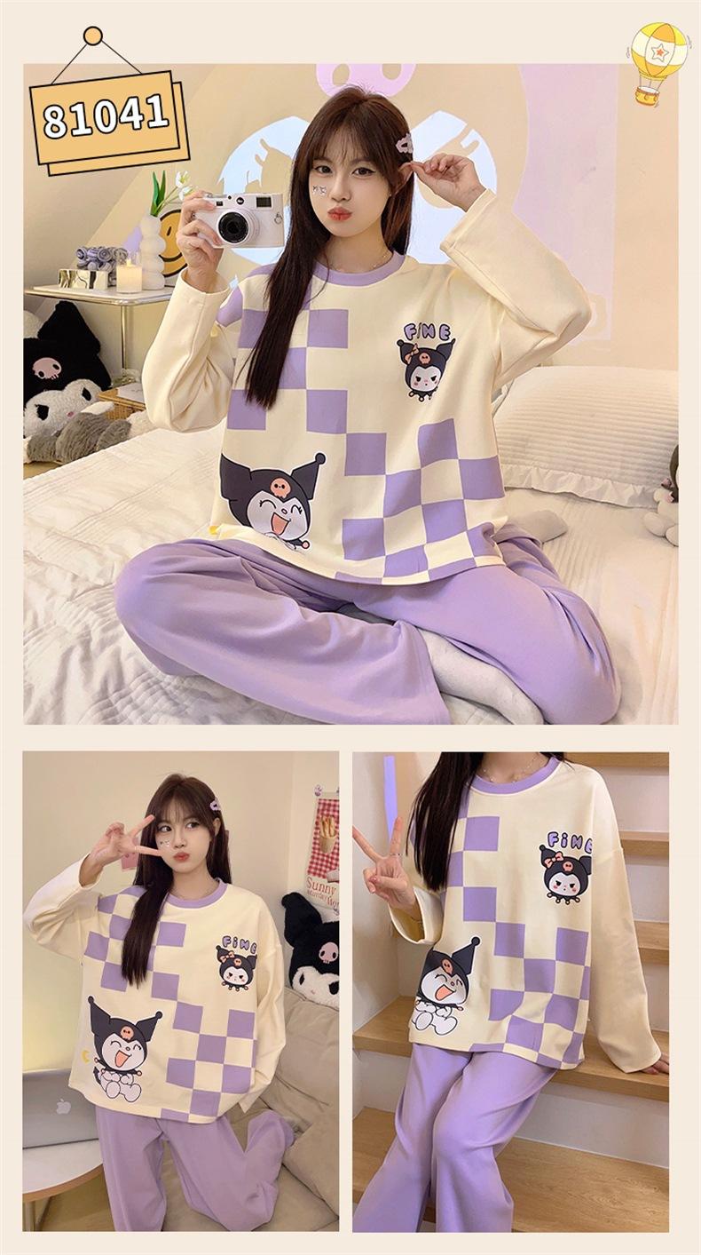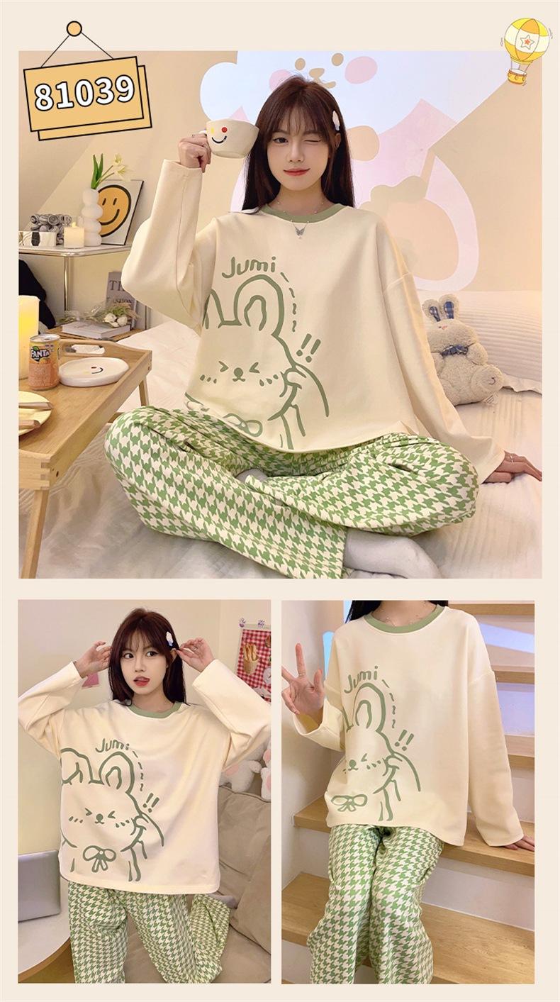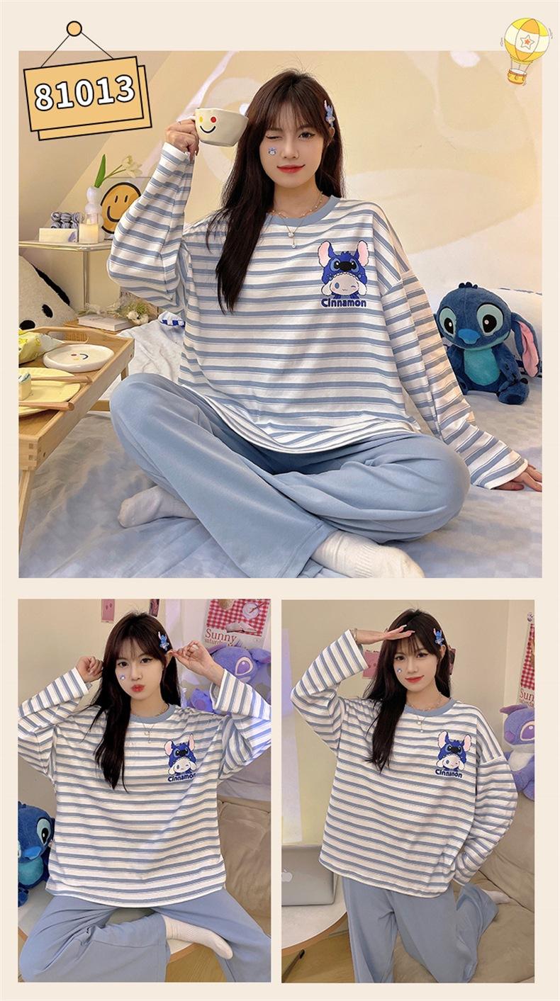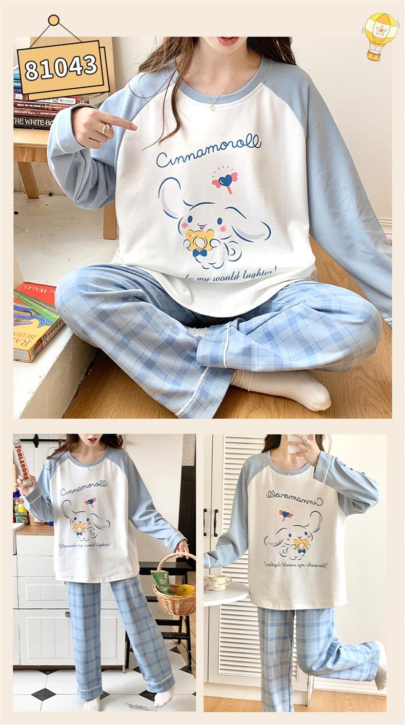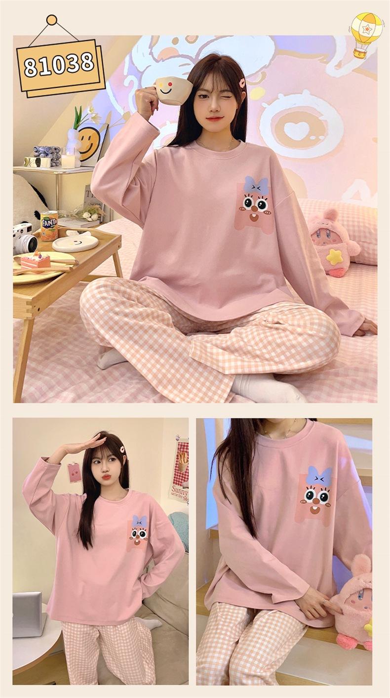 Color Sólido Venta al Por Mayor En Stock Otoño y Primavera Pijama Nuevo Mujer Algodón Dulce Dibujos Animados Jersey Manga Larga Pantalón Largo Ropa de Casa