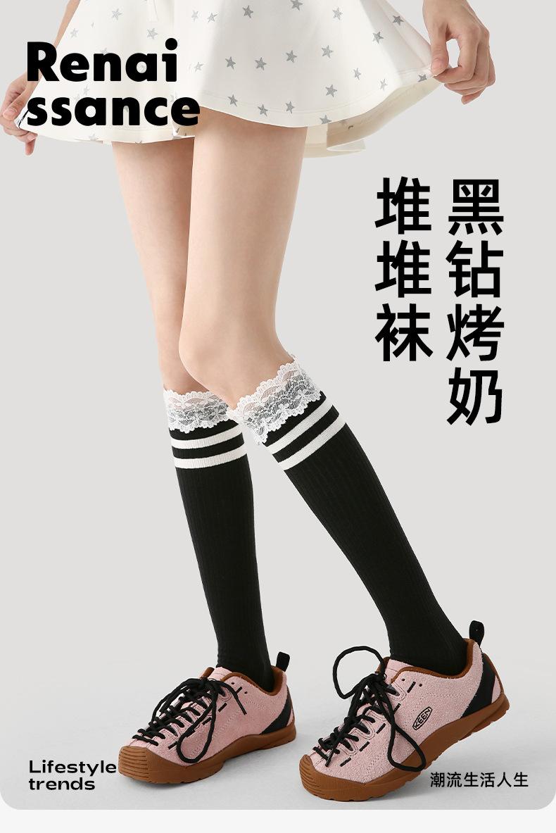 Calcetines Originales Renacentistas para Mujer Otoño e Invierno Nuevos Calcetines de Encaje Estilo Universitario Calcetines Adelgazantes para Pantorrilla para Mujer