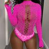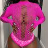 Body de Cuello Alto Rojo Rosa Lencería Tentación Sexy Jacquard Recorte Ajustado Bikini Manga Larga W684