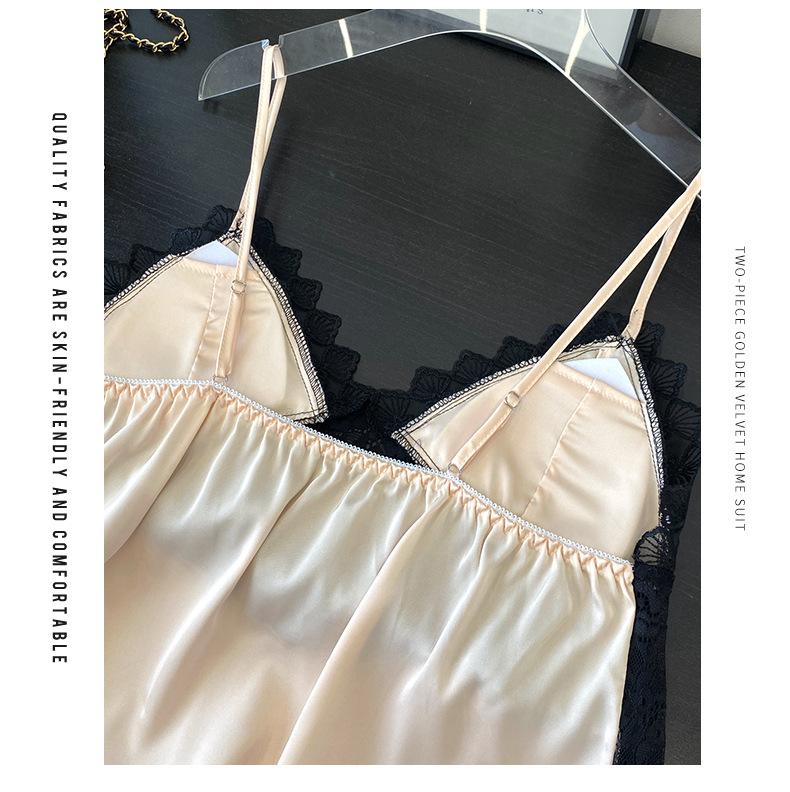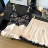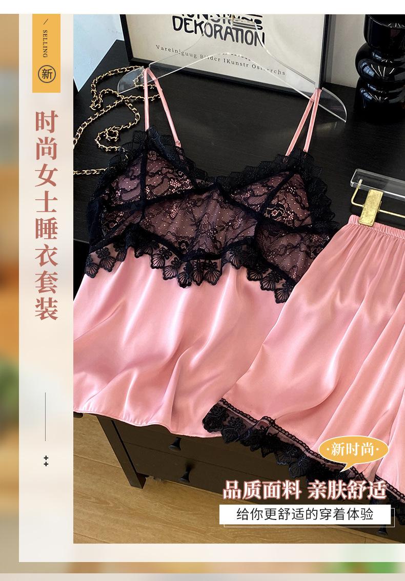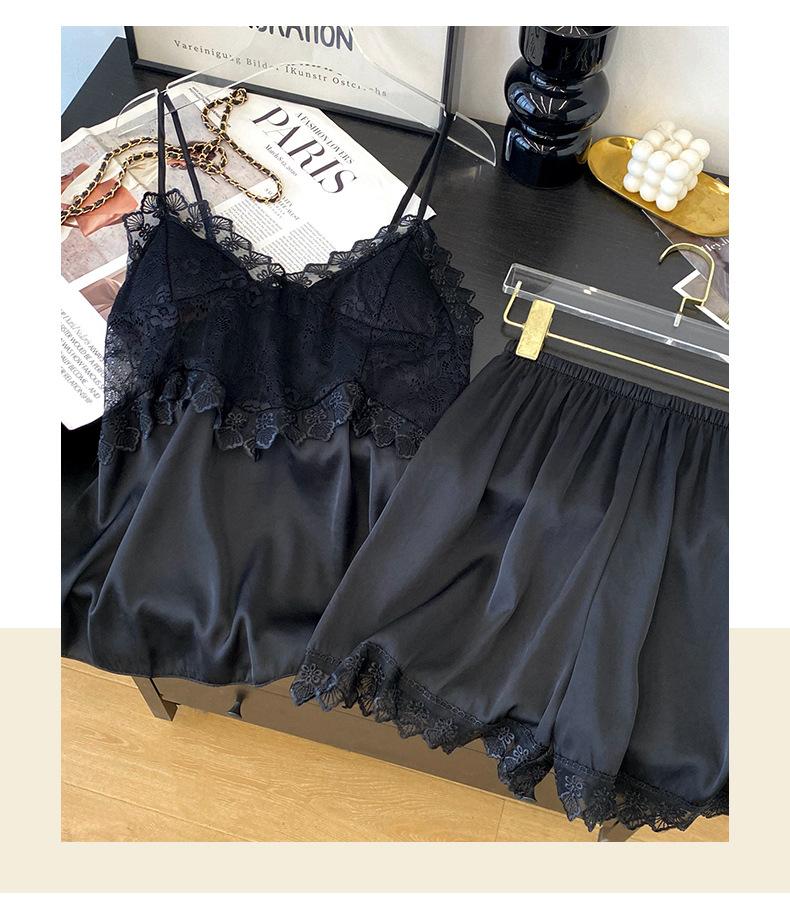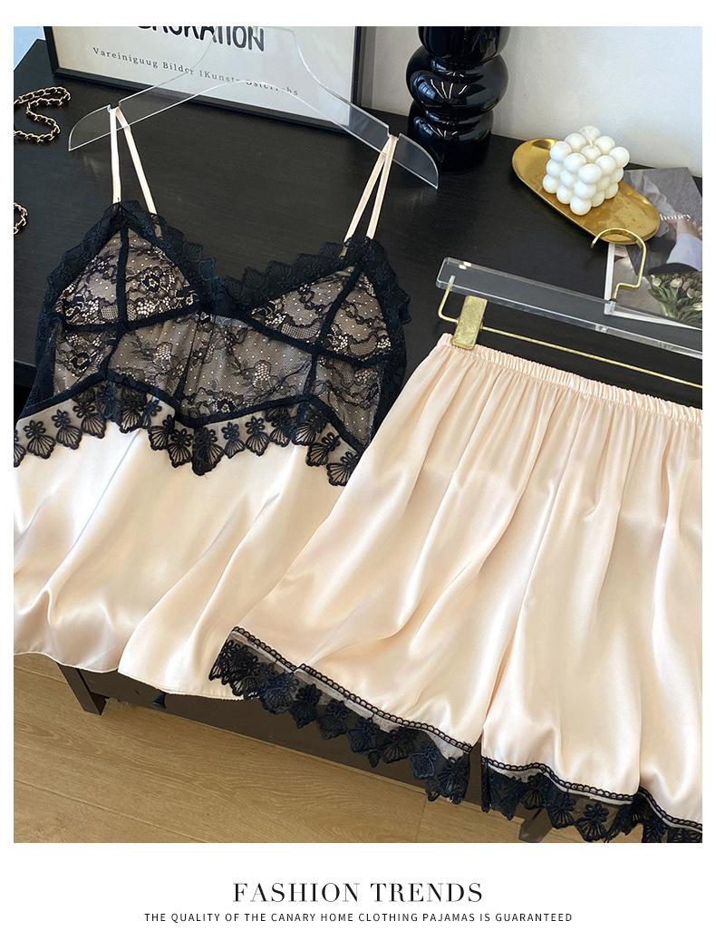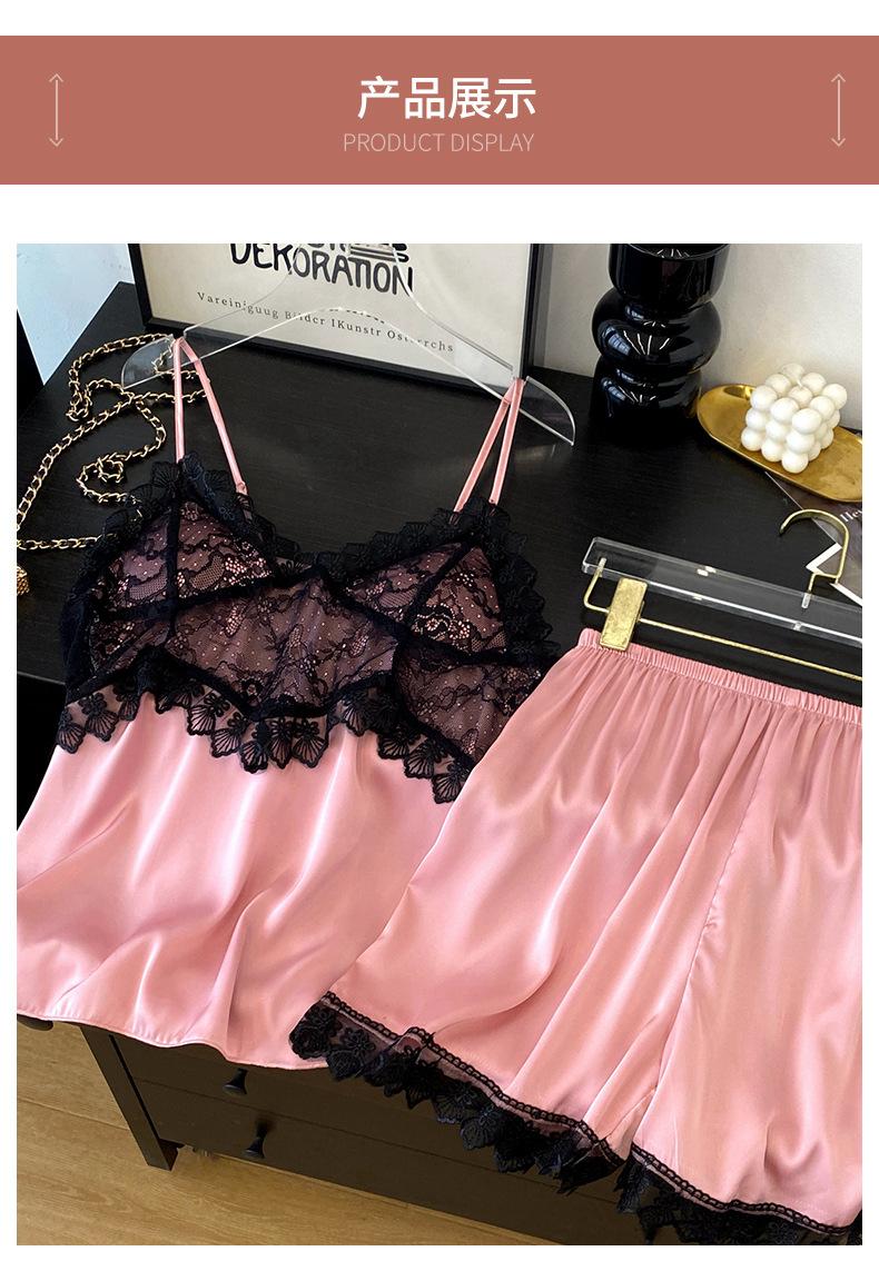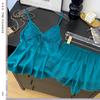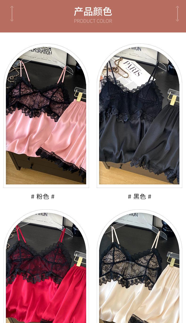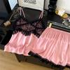 2025 Verano Nuevo Conjunto de Shorts con Tirantes para Casa Casual Fresco Encaje Talla Grande Conjunto de Pijama Deseo Puro Sexy