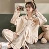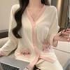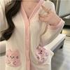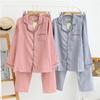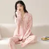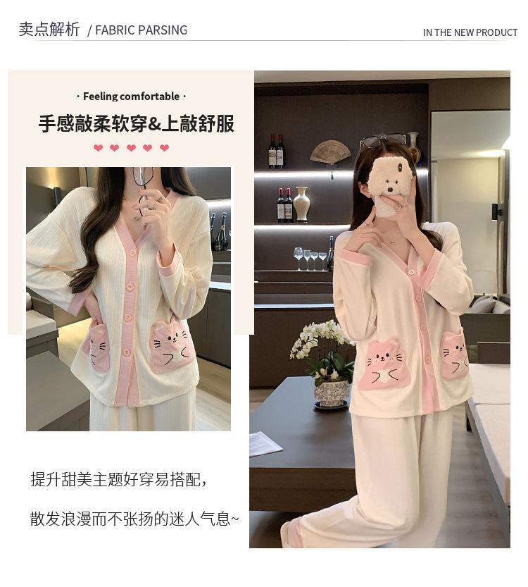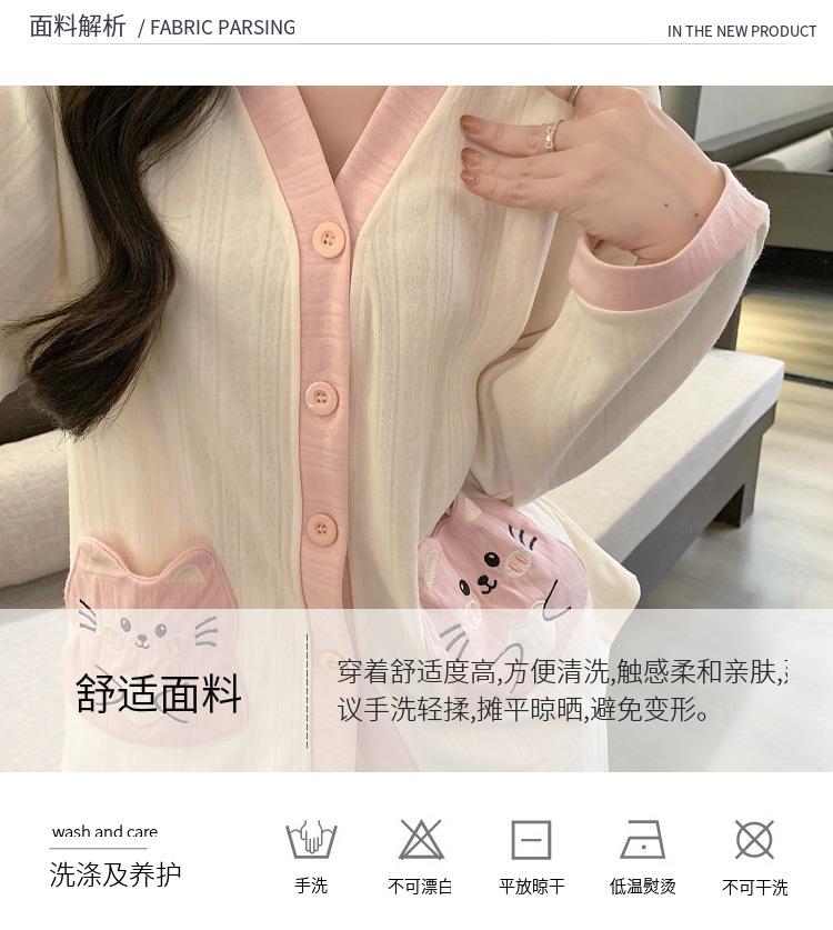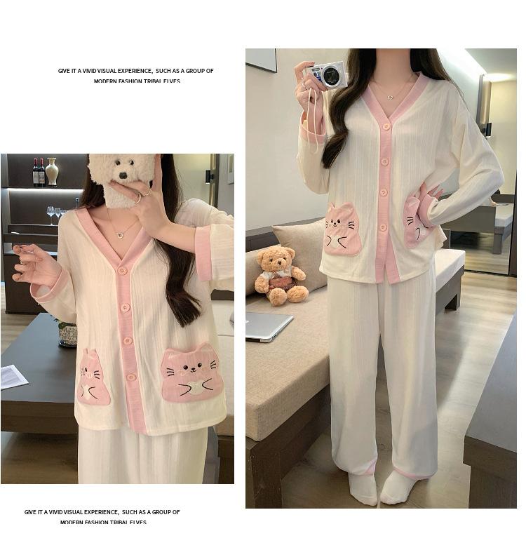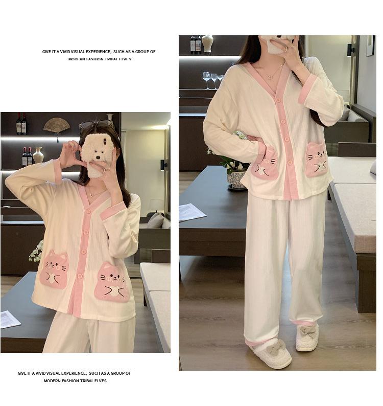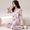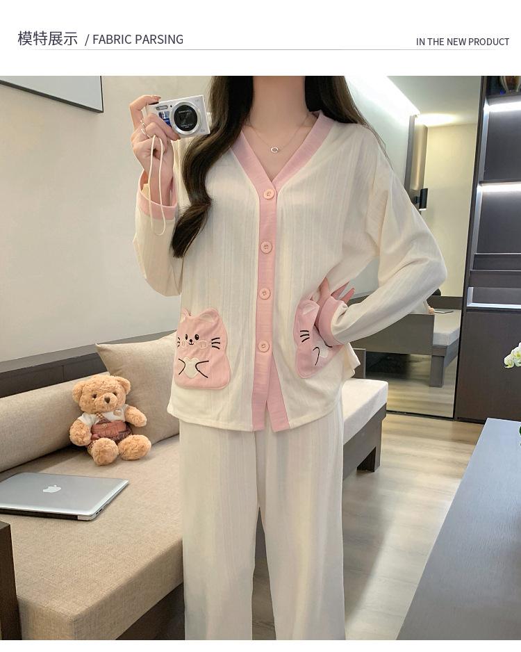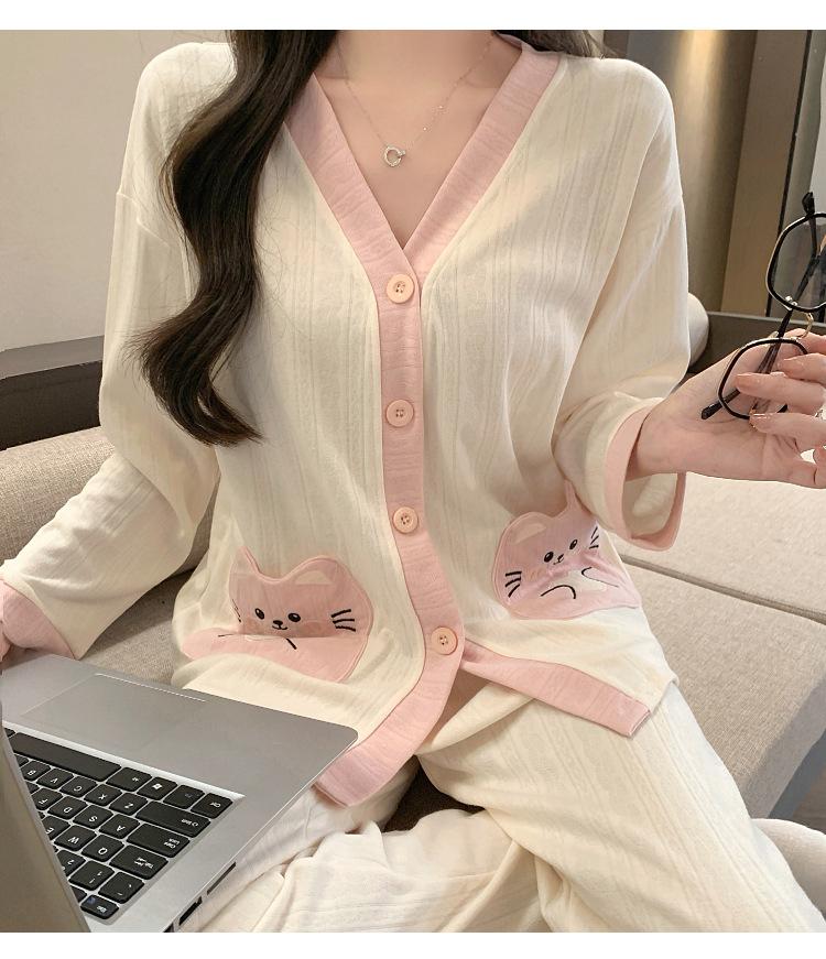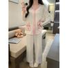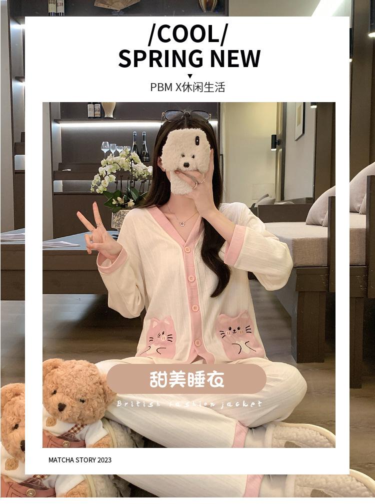 Pijama de Algodón para Mujer Primavera y Otoño Manga Larga Cuello en V Cárdigan Conjunto de Dos Piezas Dulce y Encantador Ropa de Casa Ropa Exterior