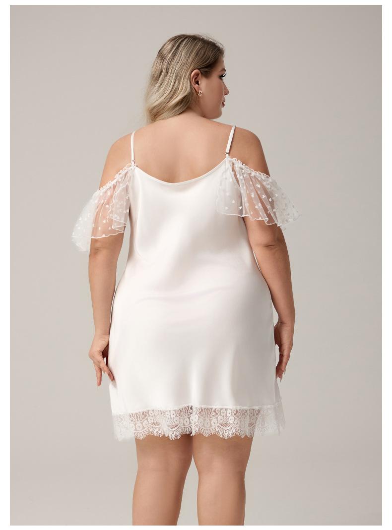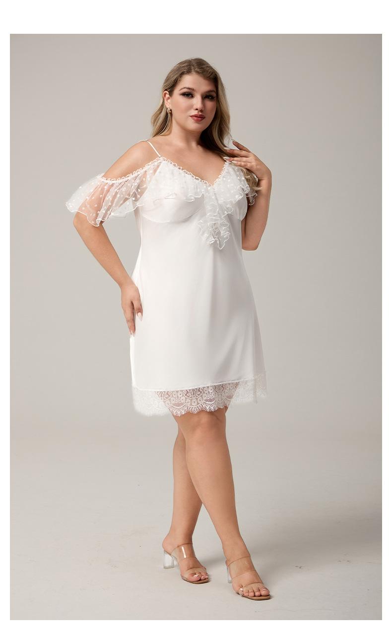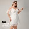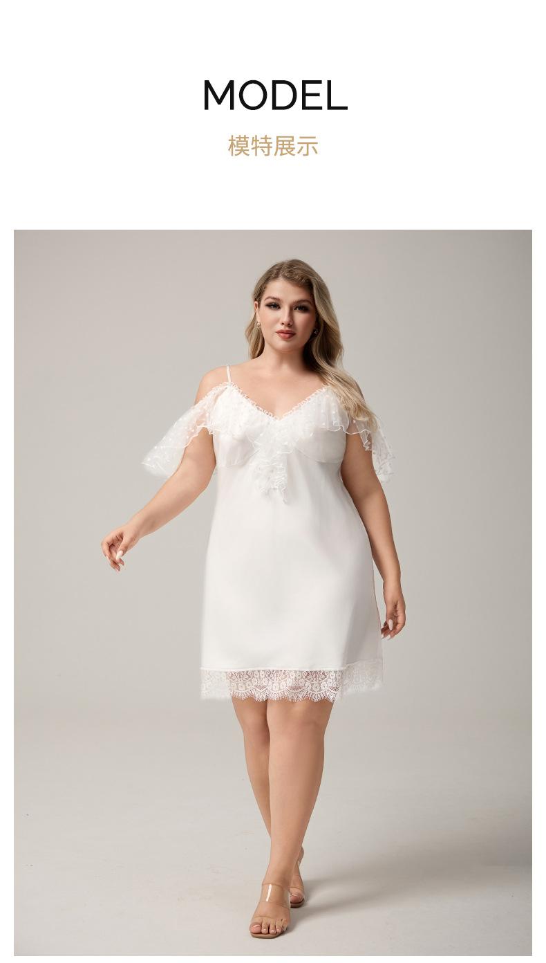 Yaoting Transfronterizo Nuevo Talla Grande Camisola Pijama de Mujer Seda de Hielo Encaje Sexy Camisón Cuello en V Ropa para el Hogar SQ5006