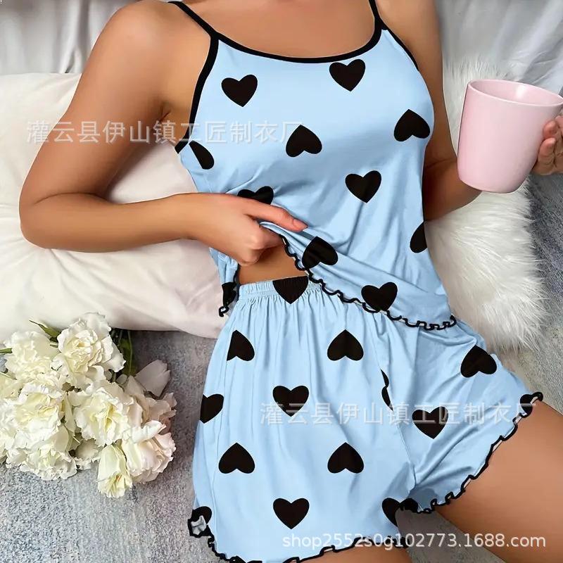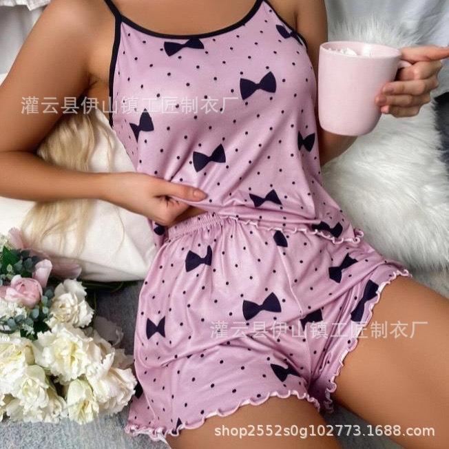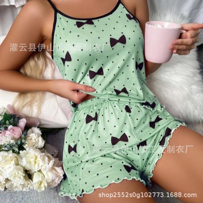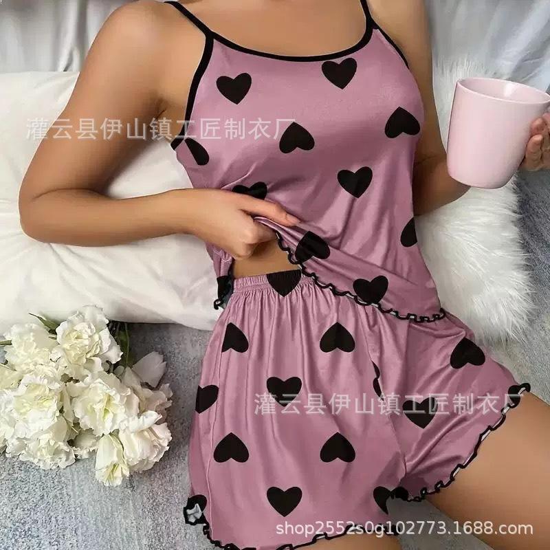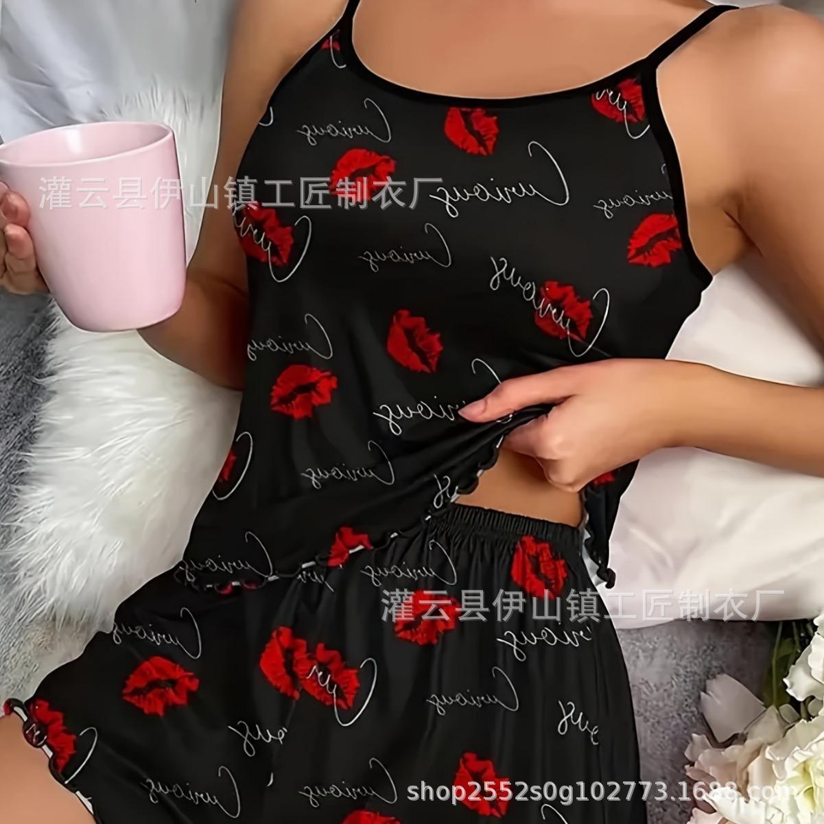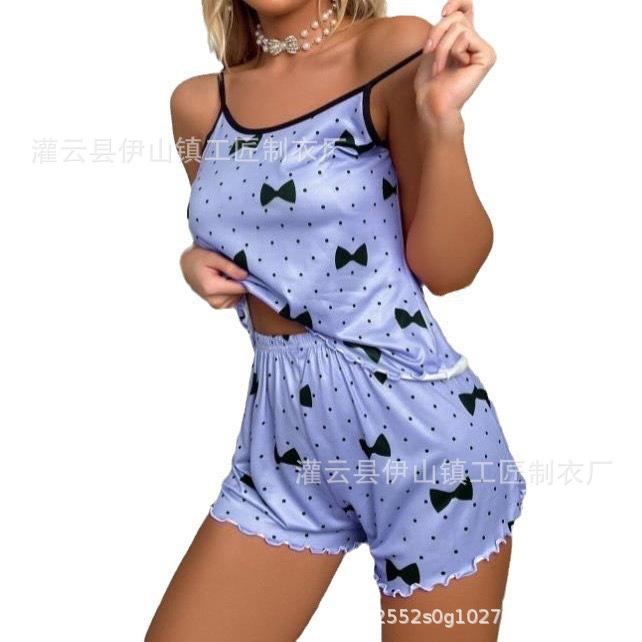 Comercio Exterior Transfronterizo Estilo Europeo y Americano Nuevo Top sin Mangas y Shorts Se Puede Usar Afuera Conjunto Casual para el Hogar Pijama Sexy Fino para Mujer