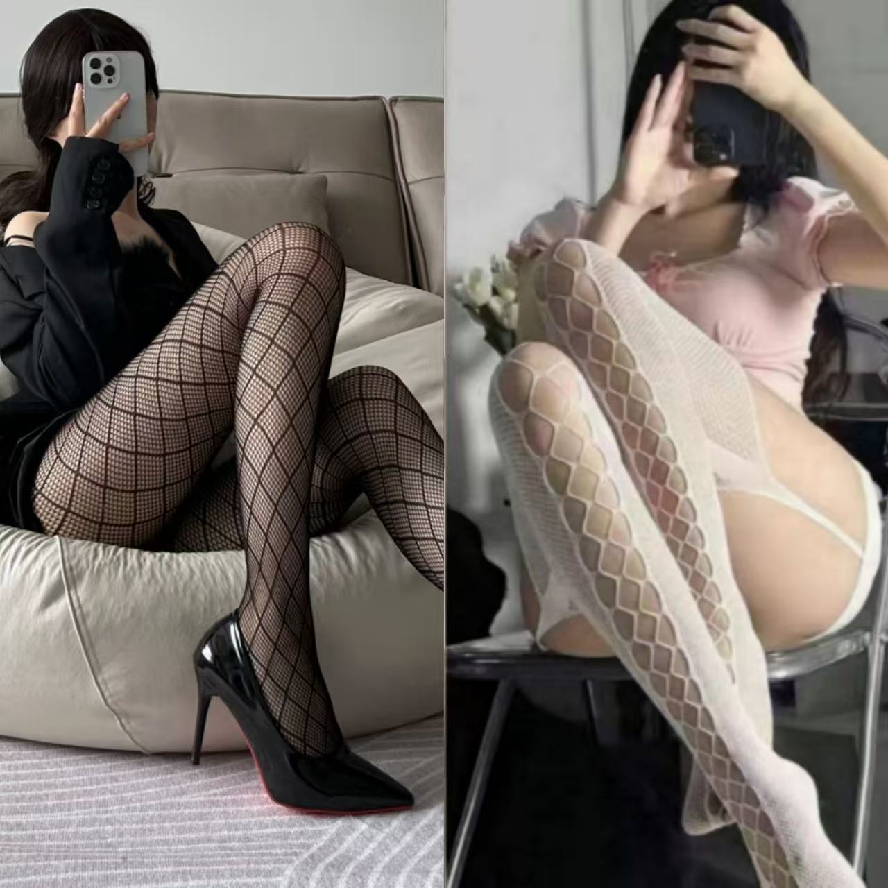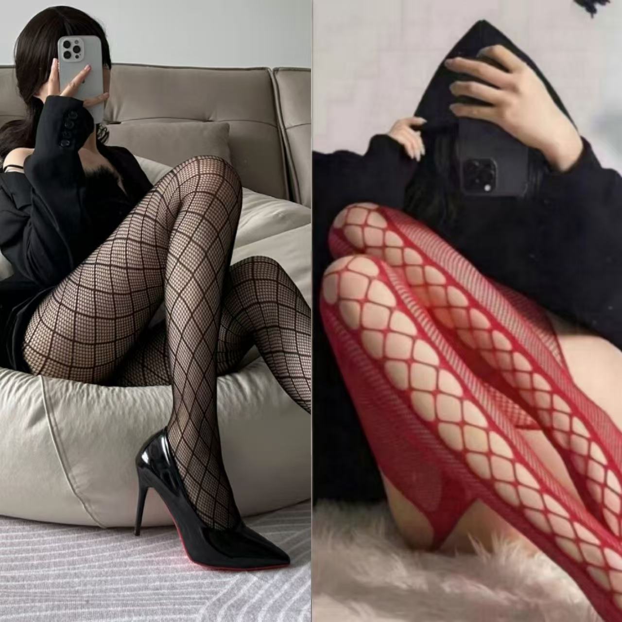 Primavera/Verano Celebridad de Internet Chica Sexy Calados de Diamante Medias de Red Medias Sexy Negras Medias Finas Hermana Real Piernas Hermosas Adelgazantes Pantimedias Básicas Mujer