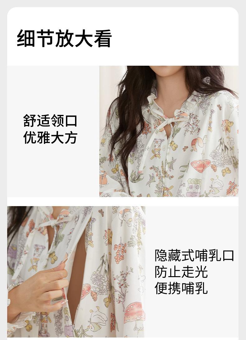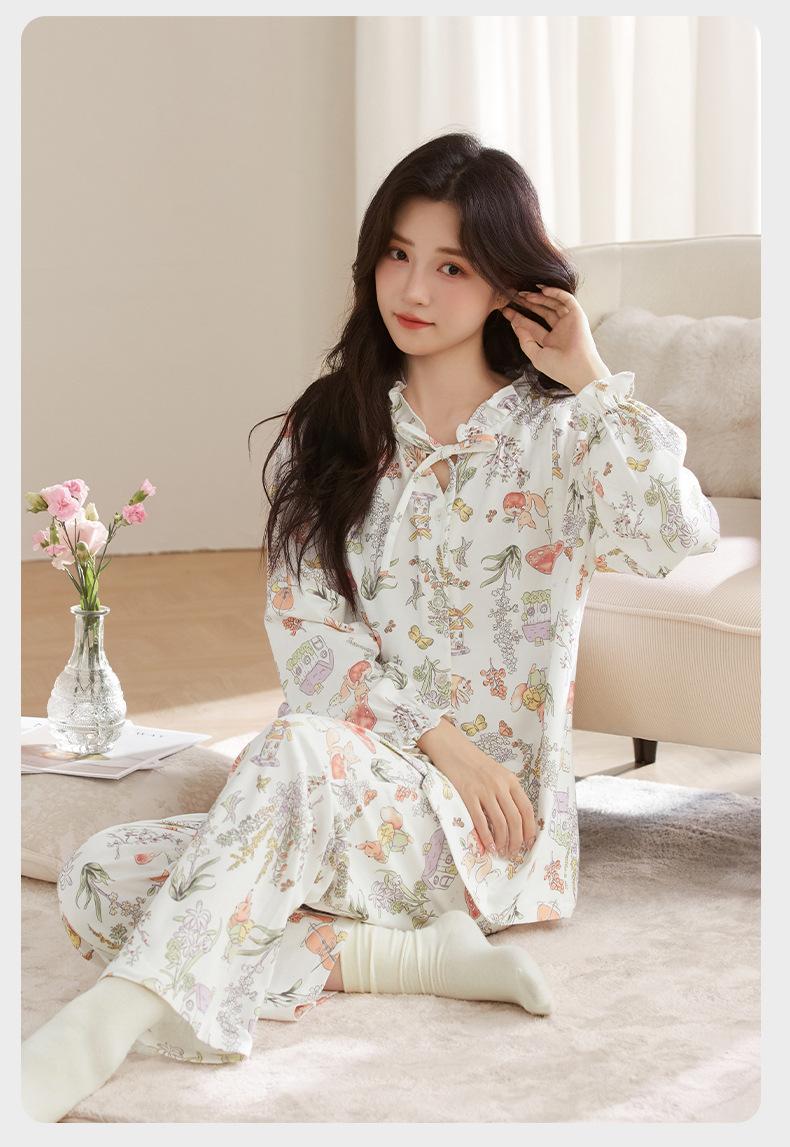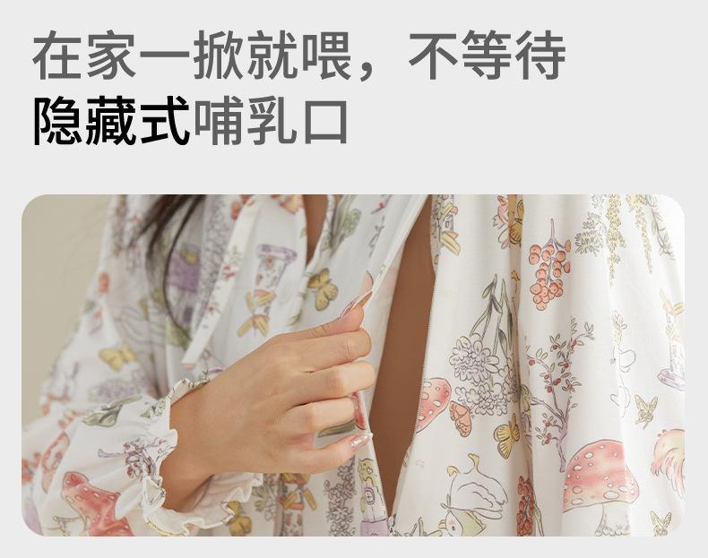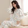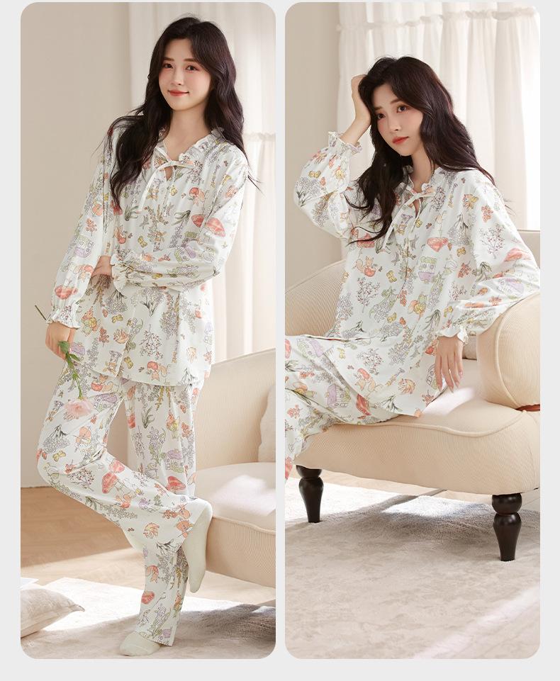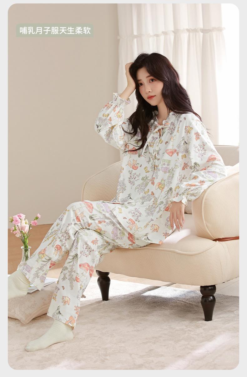 Ropa de Maternidad de Algodón Puro Otoño Pijama de Lactancia Postparto Estilo Delgado Mujeres Embarazadas Trabajo Ropa para el Hogar Conjunto de Manga Larga para Amamantar