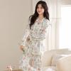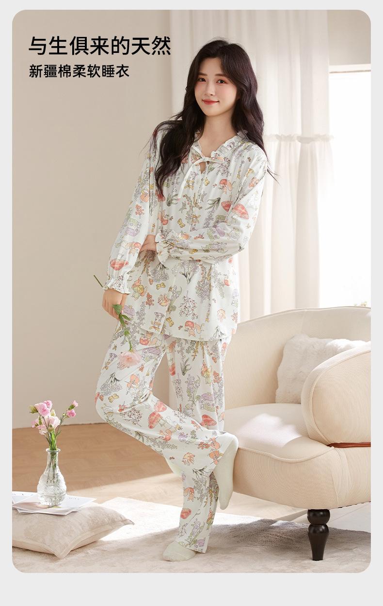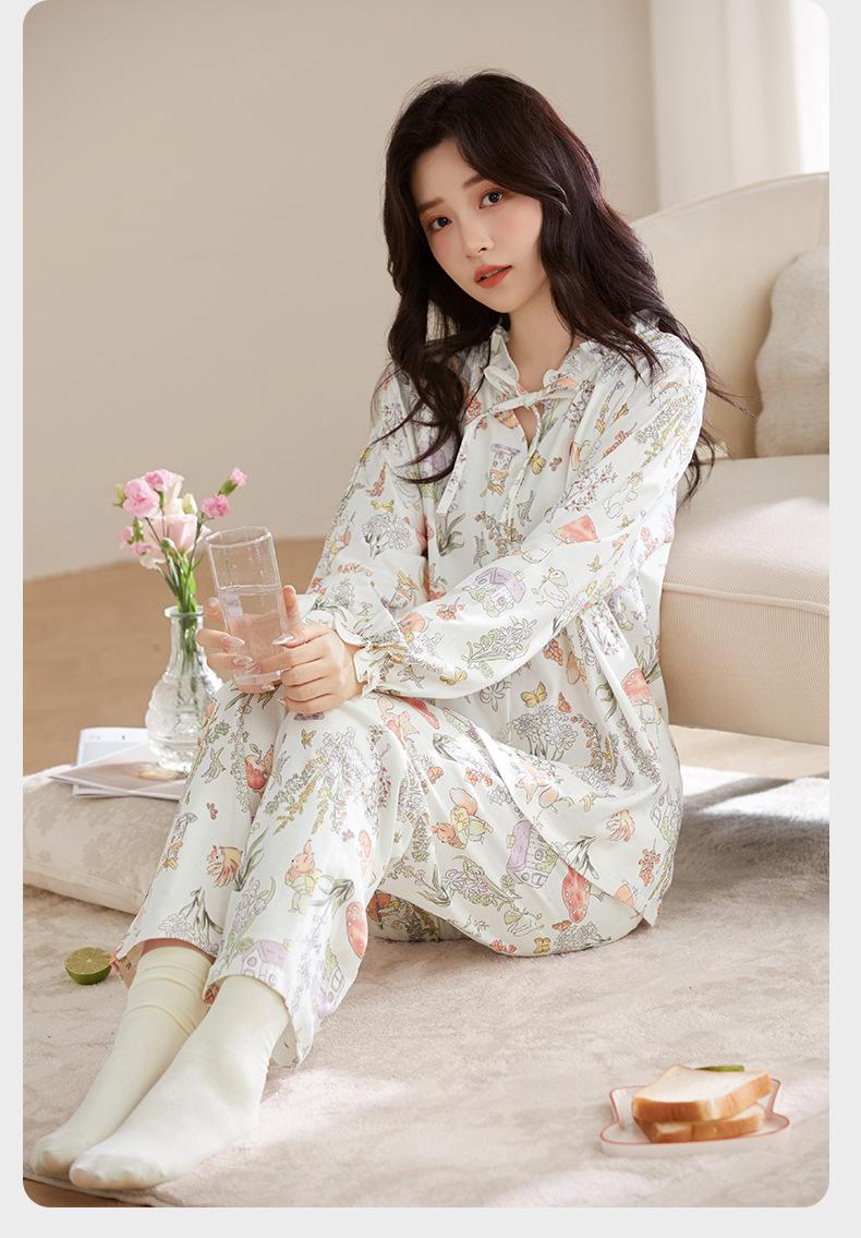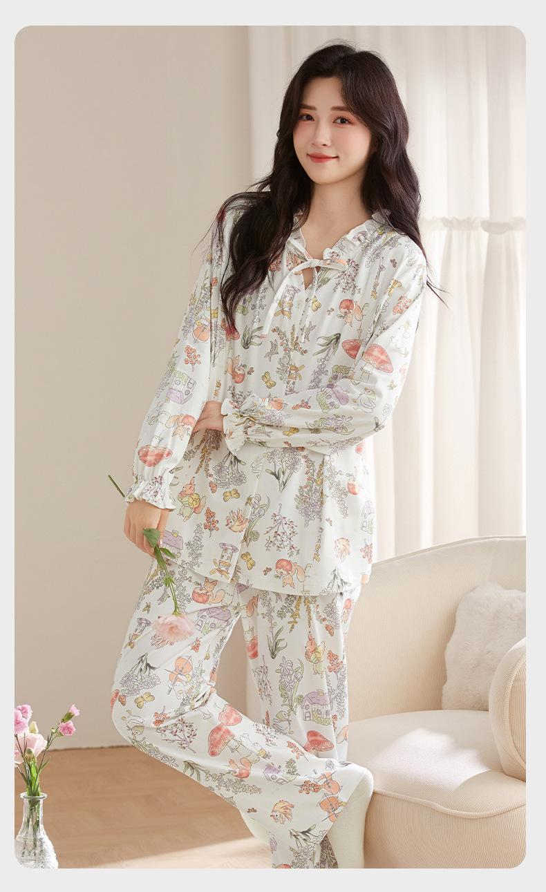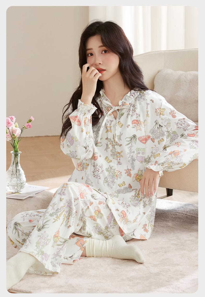 Ropa de Maternidad de Algodón Puro Otoño Pijama de Lactancia Postparto Estilo Delgado Mujeres Embarazadas Trabajo Ropa para el Hogar Conjunto de Manga Larga para Amamantar