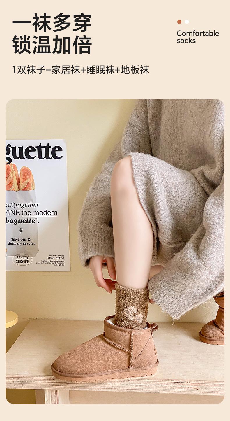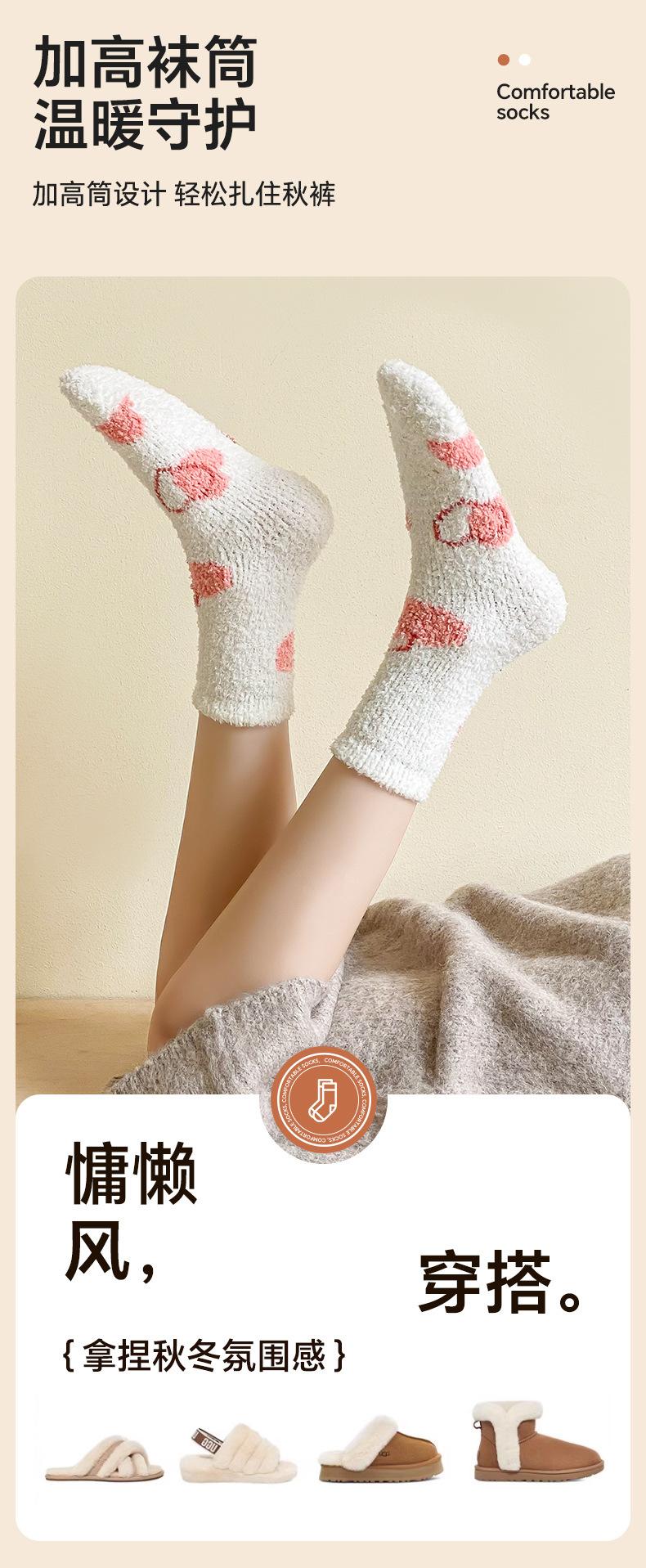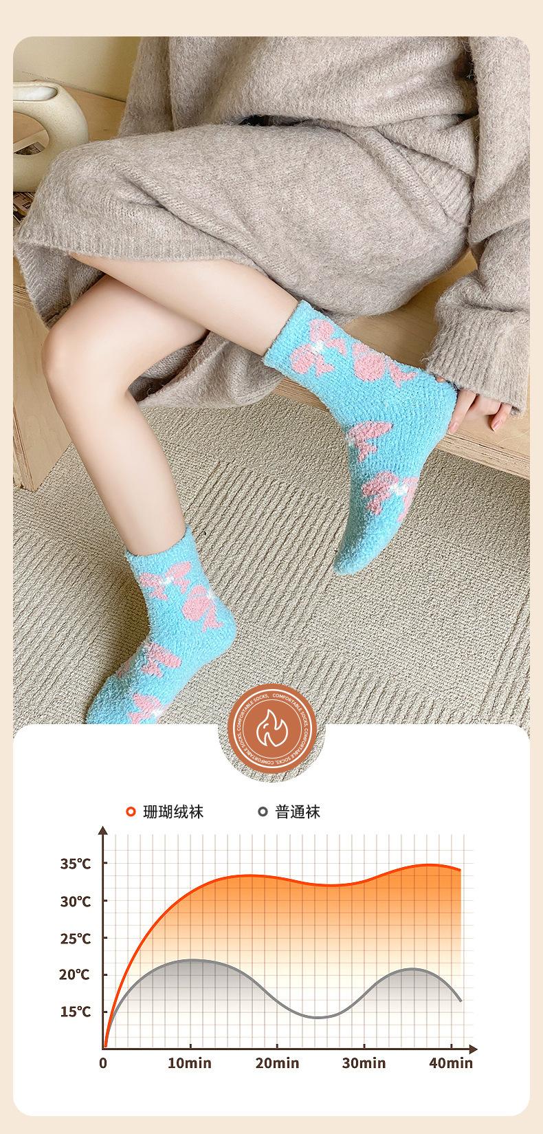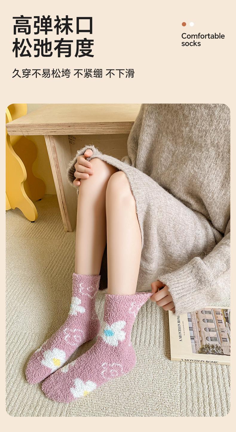 Calcetines de terciopelo de media caña para mujer otoño e invierno más terciopelo más calcetines gruesos de tubo medio calcetines cálidos de forro polar de coral para dormir calcetines de piso calcetines posparto