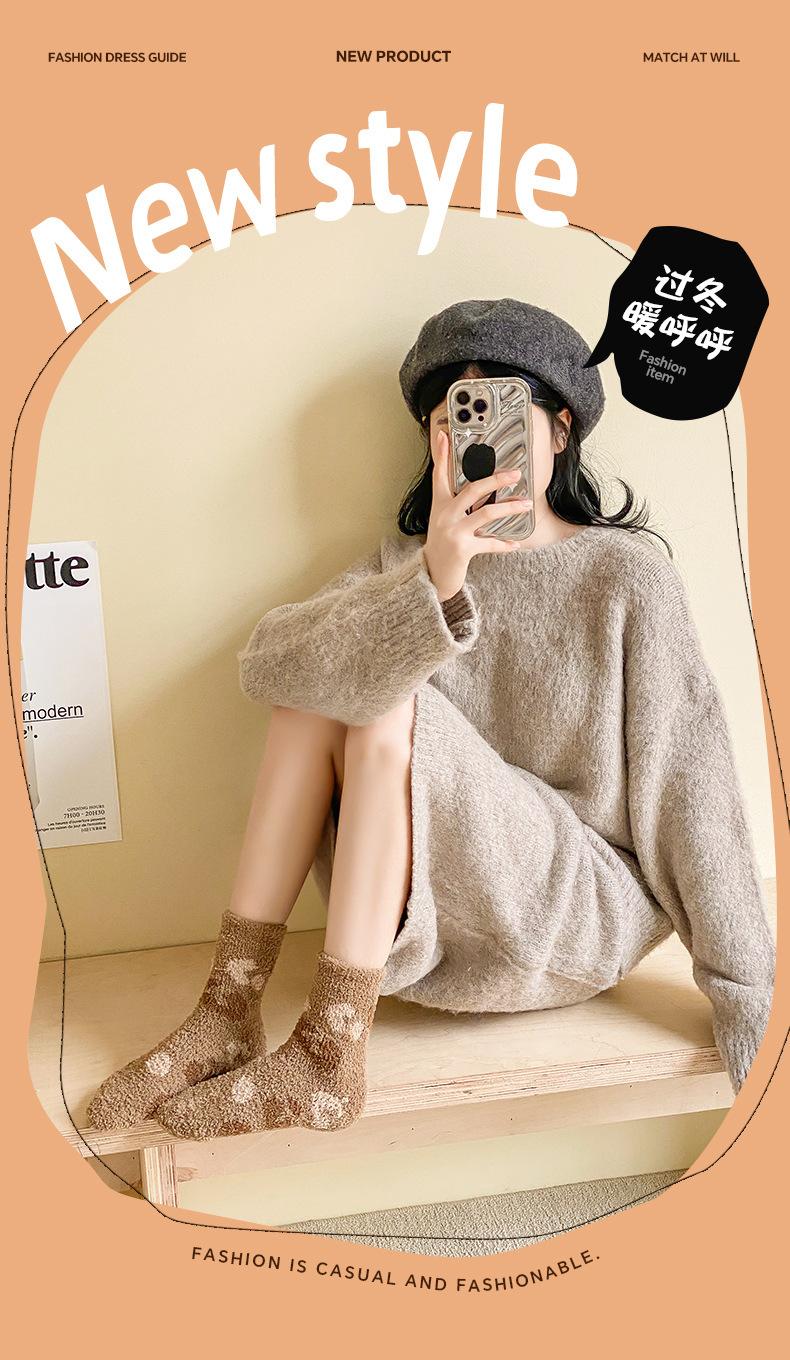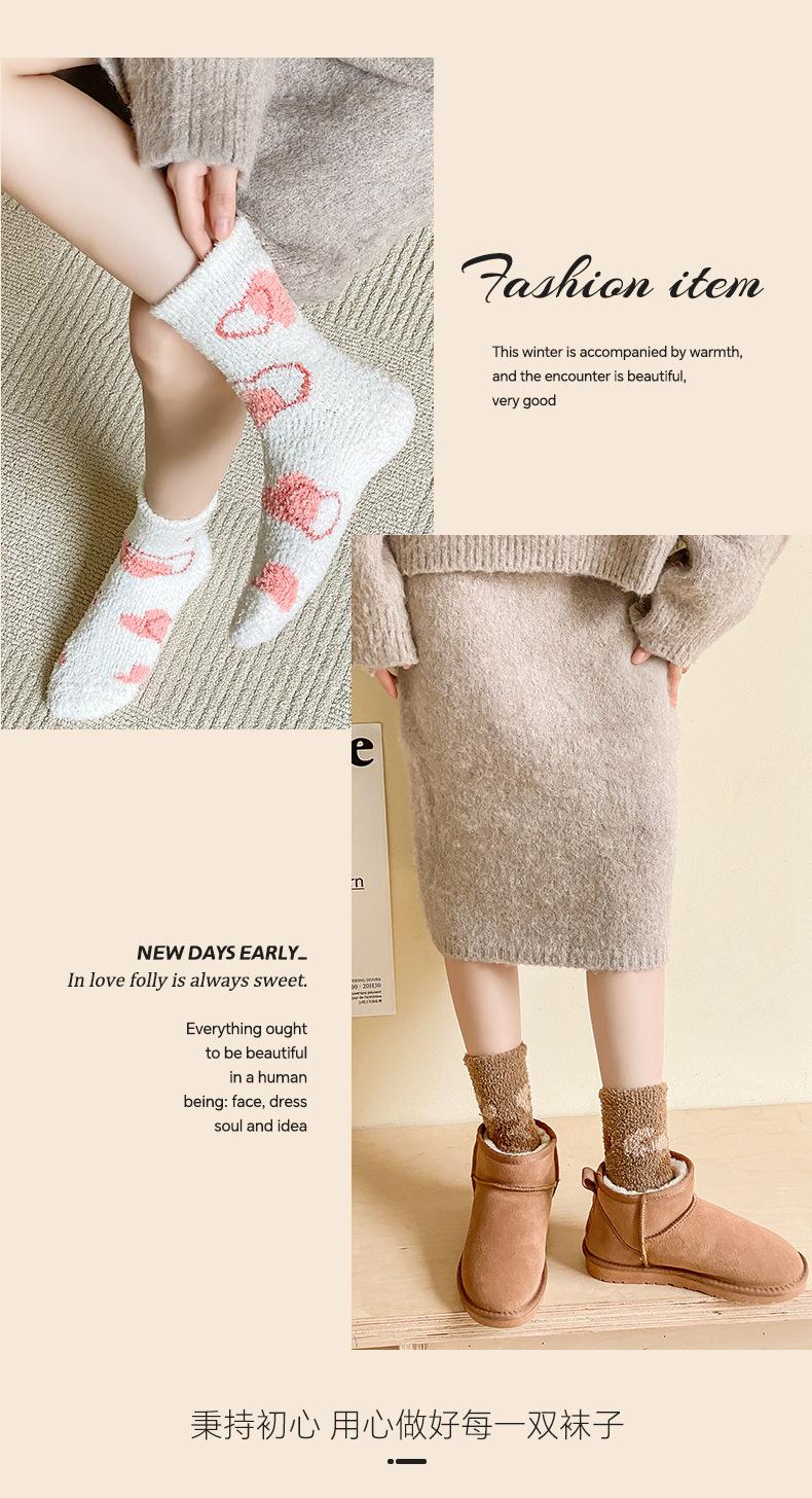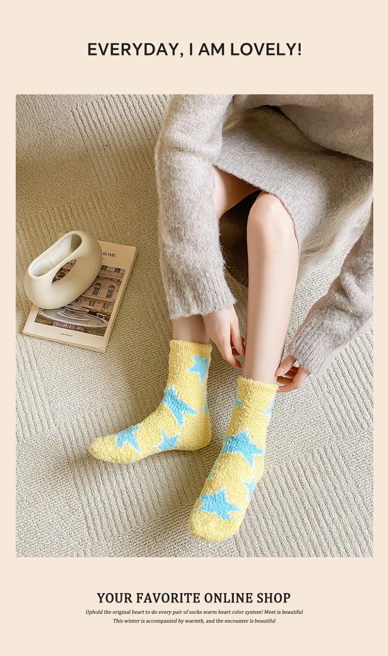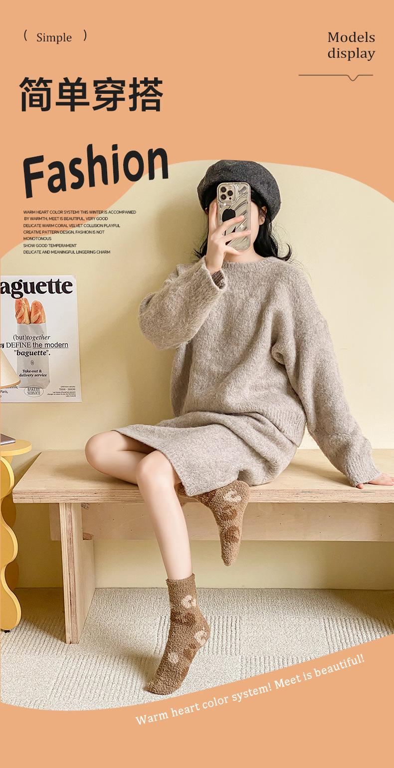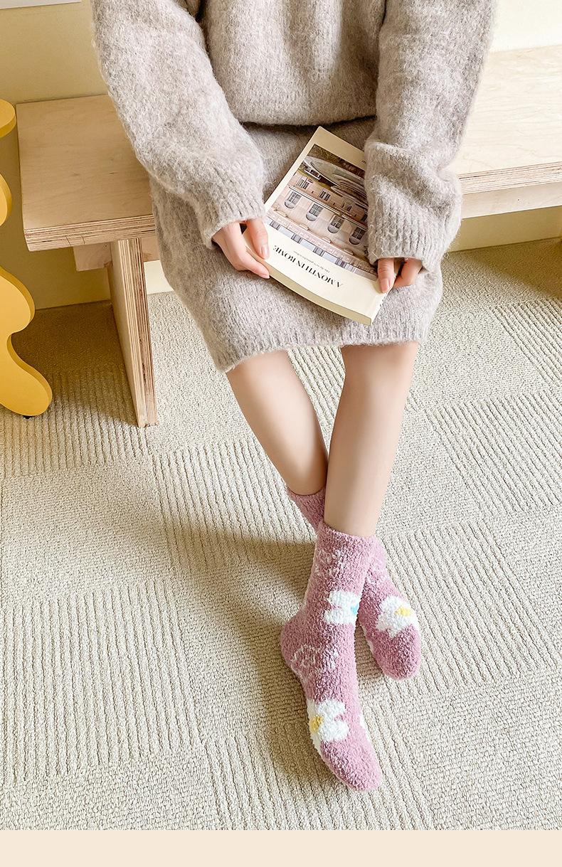 Calcetines de terciopelo de media caña para mujer otoño e invierno más terciopelo más calcetines gruesos de tubo medio calcetines cálidos de forro polar de coral para dormir calcetines de piso calcetines posparto