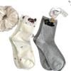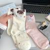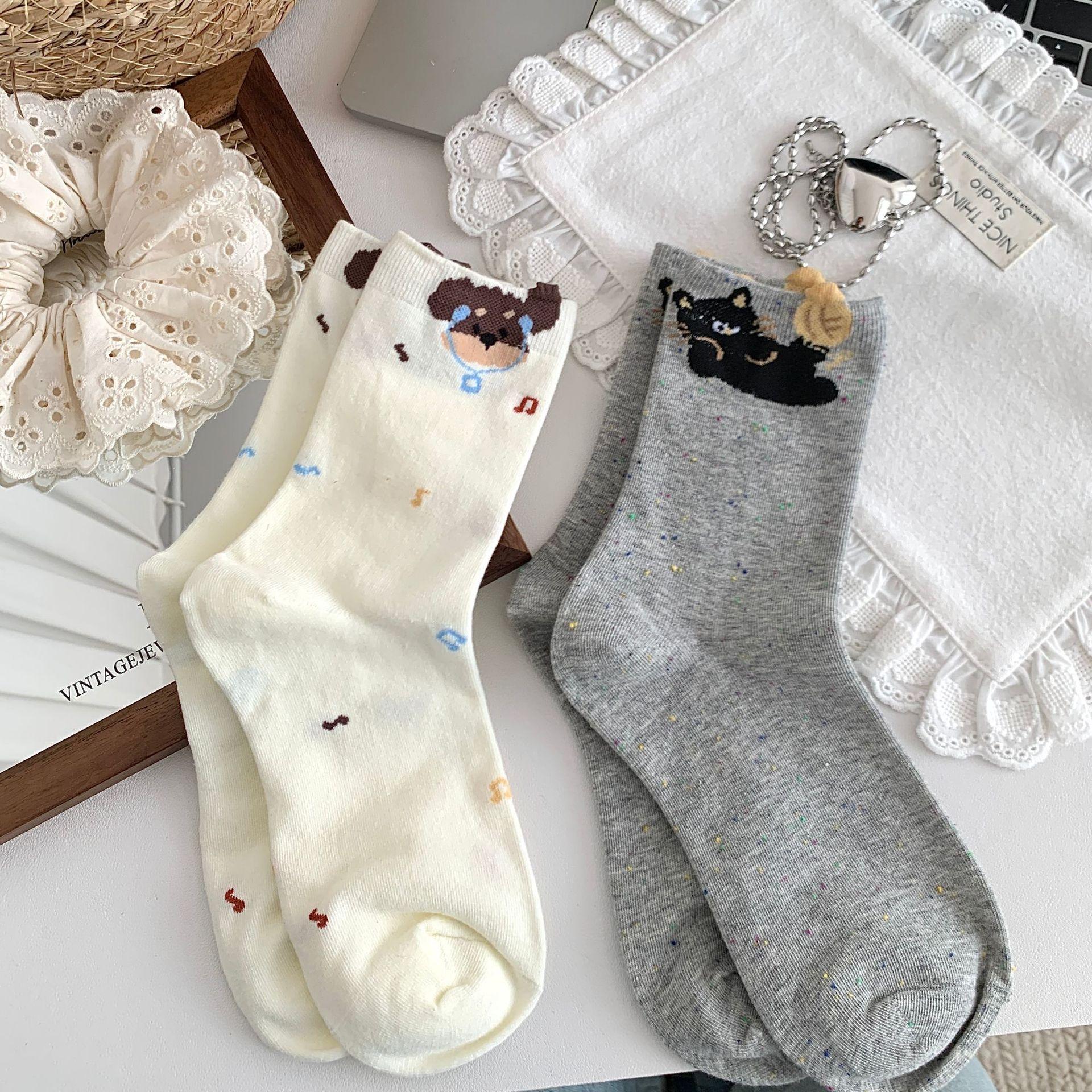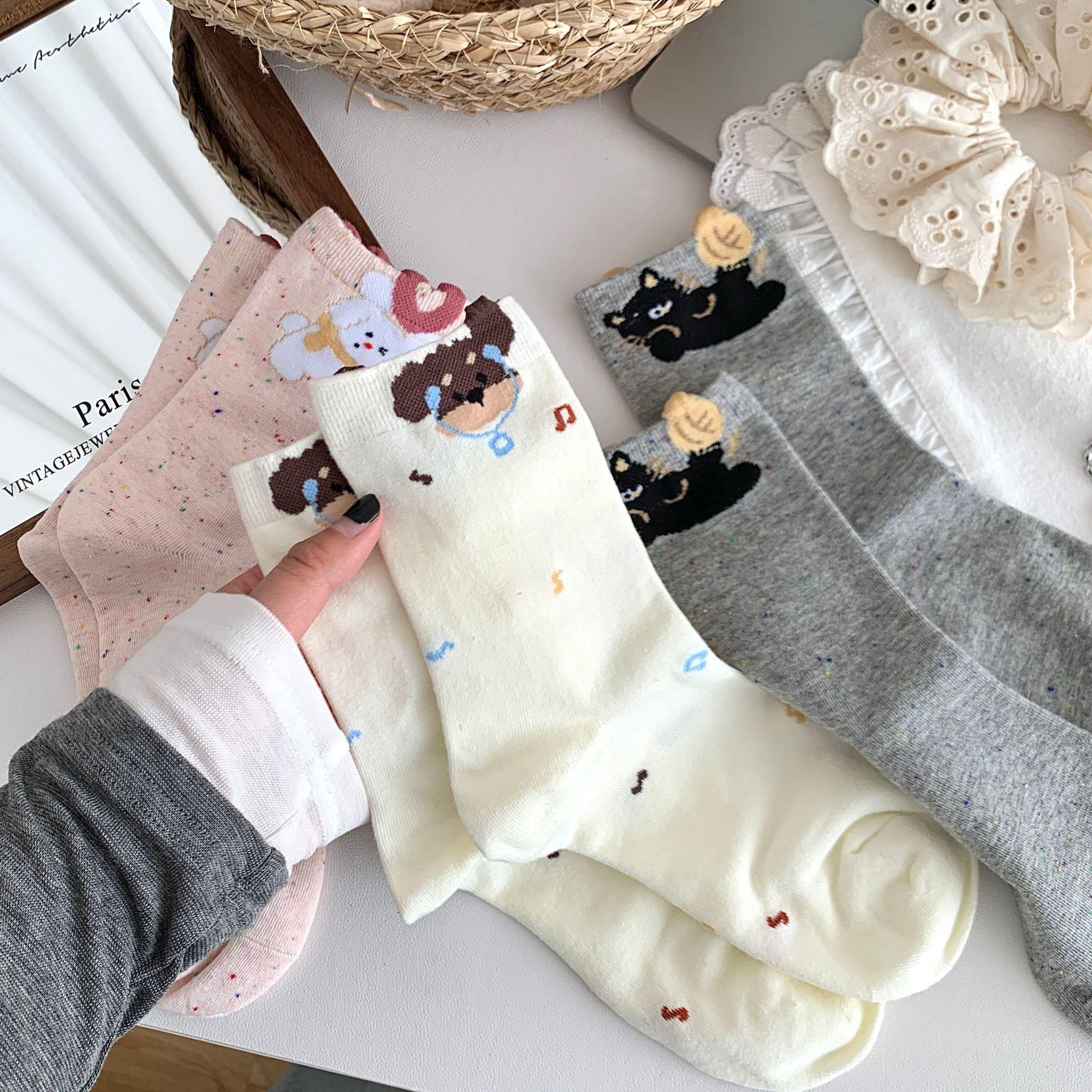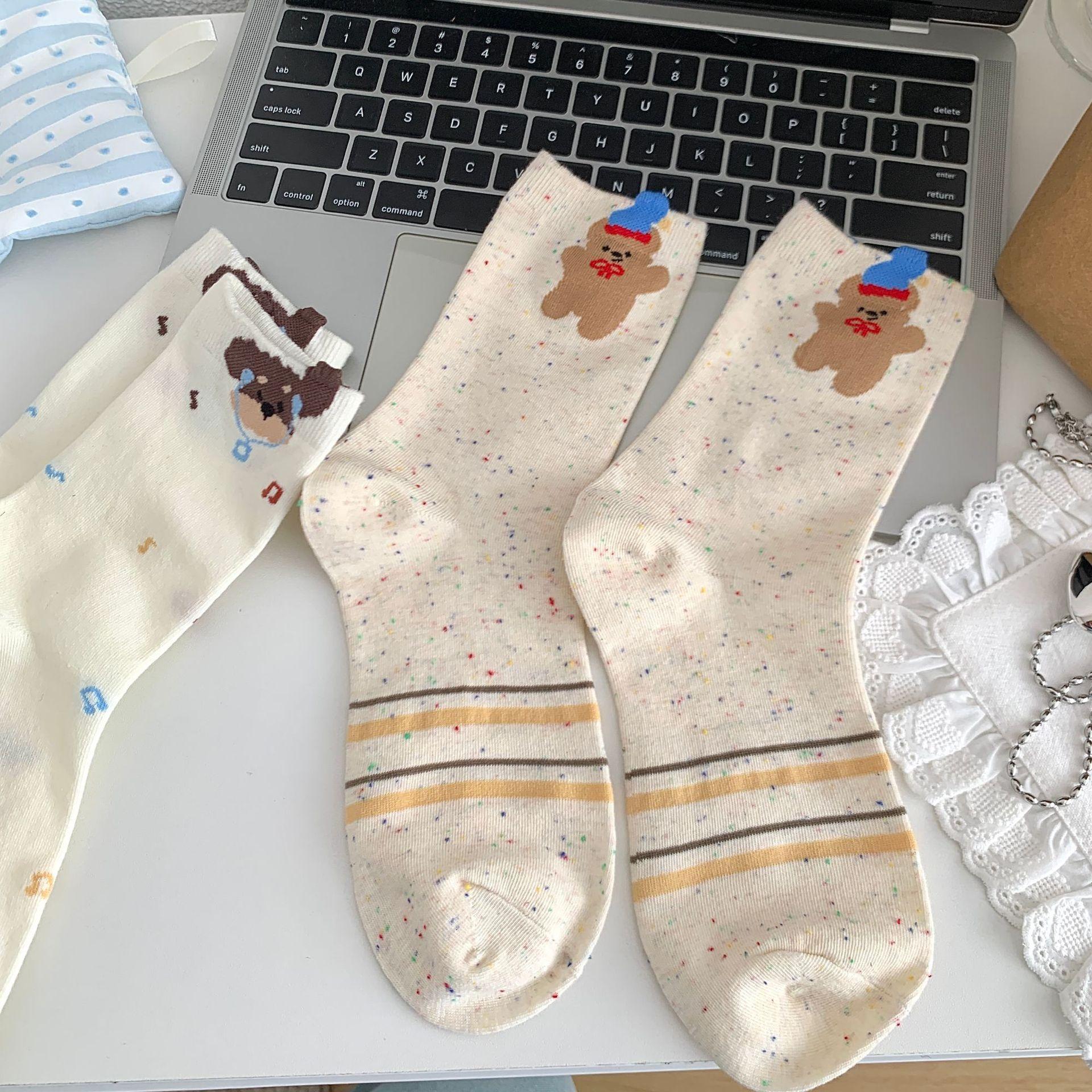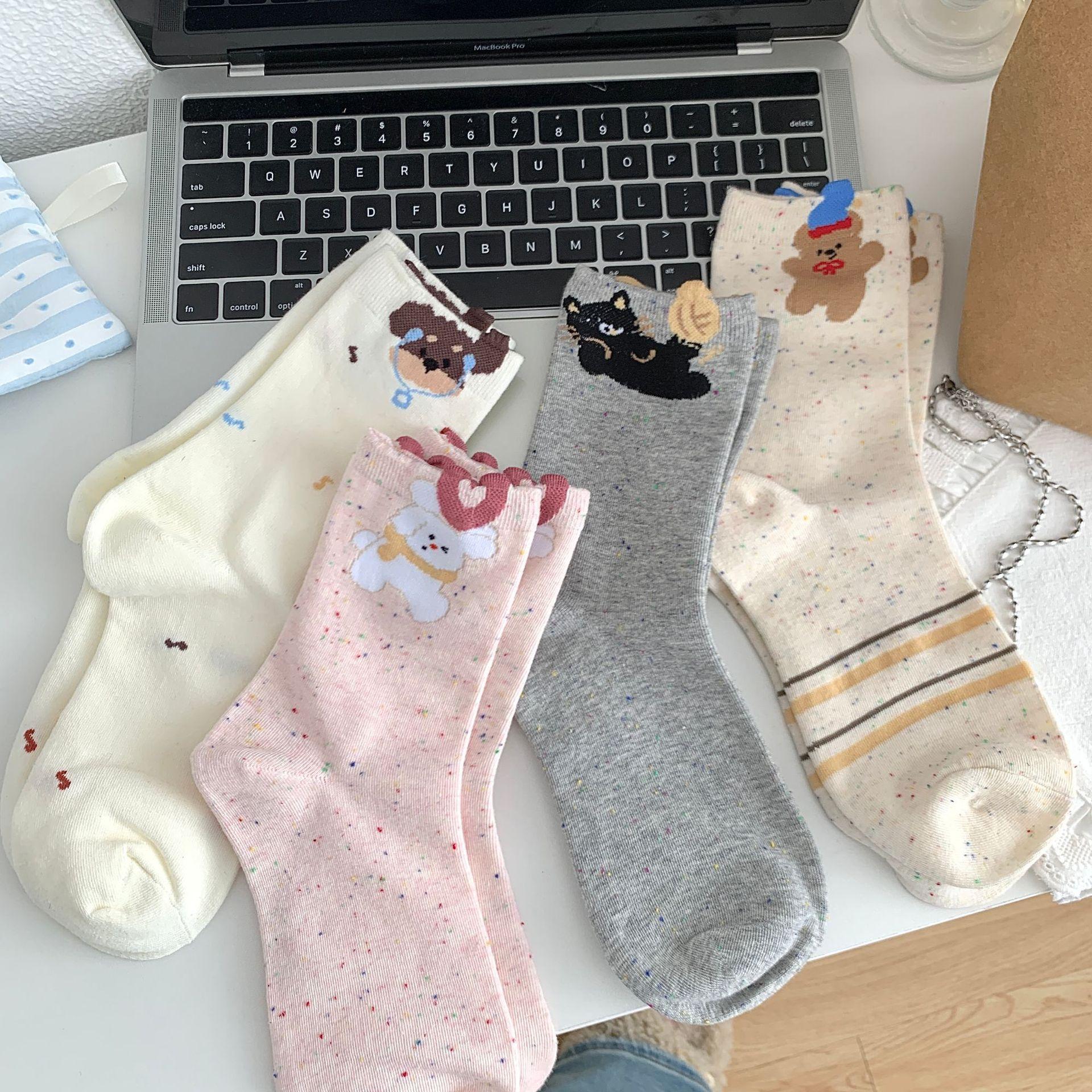 Calcetines de Mujer Primavera y Verano Nueva Llegada Hilado de Lunares Calcetines de Algodón de Tubo Medio para Mujer Ins Trendy Lindo Dibujo Animado Estilo Japonés Oreja Tridimensional Oso