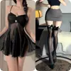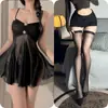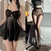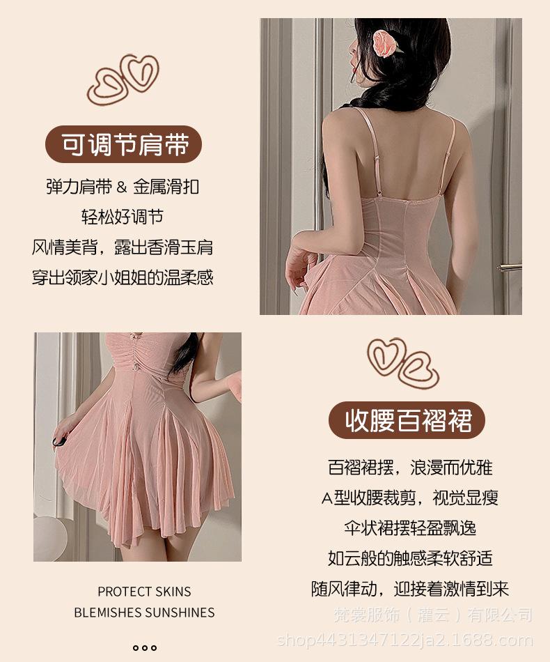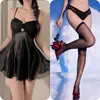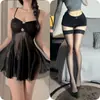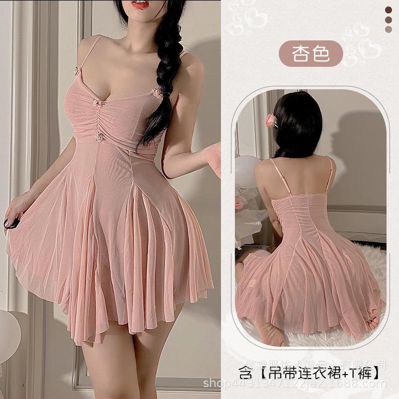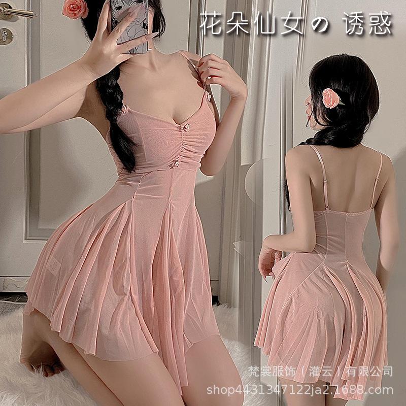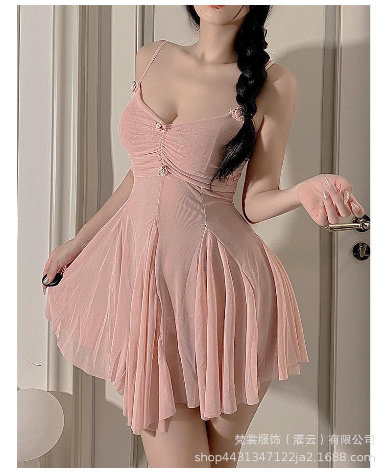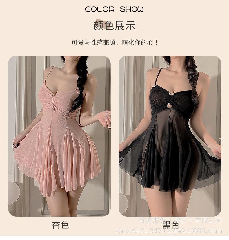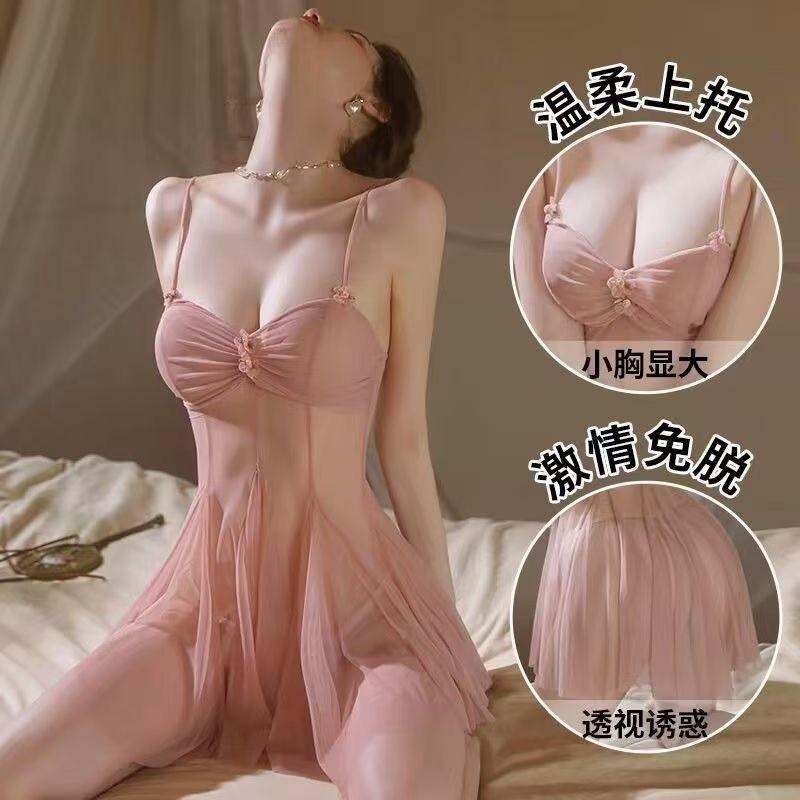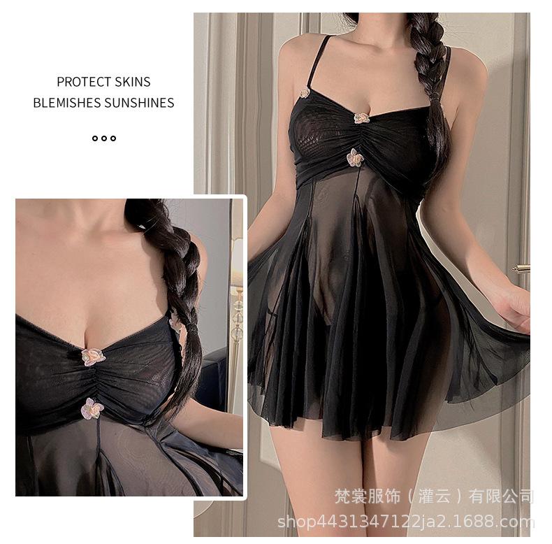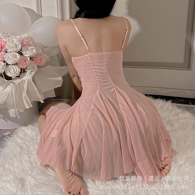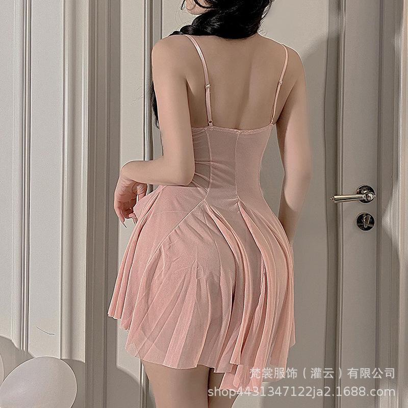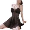Lencería Sexy Bata de Noche Escotada Deseo Puro Camisón de Malla Encaje Camisola Transparente Seducción Camisón Plisado