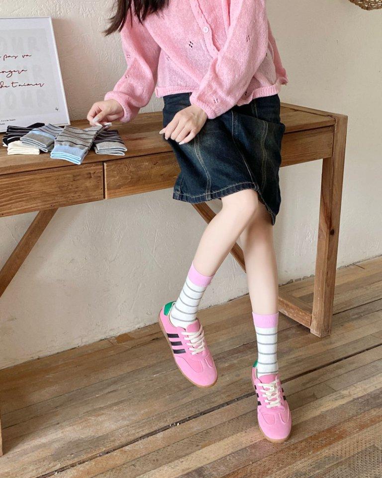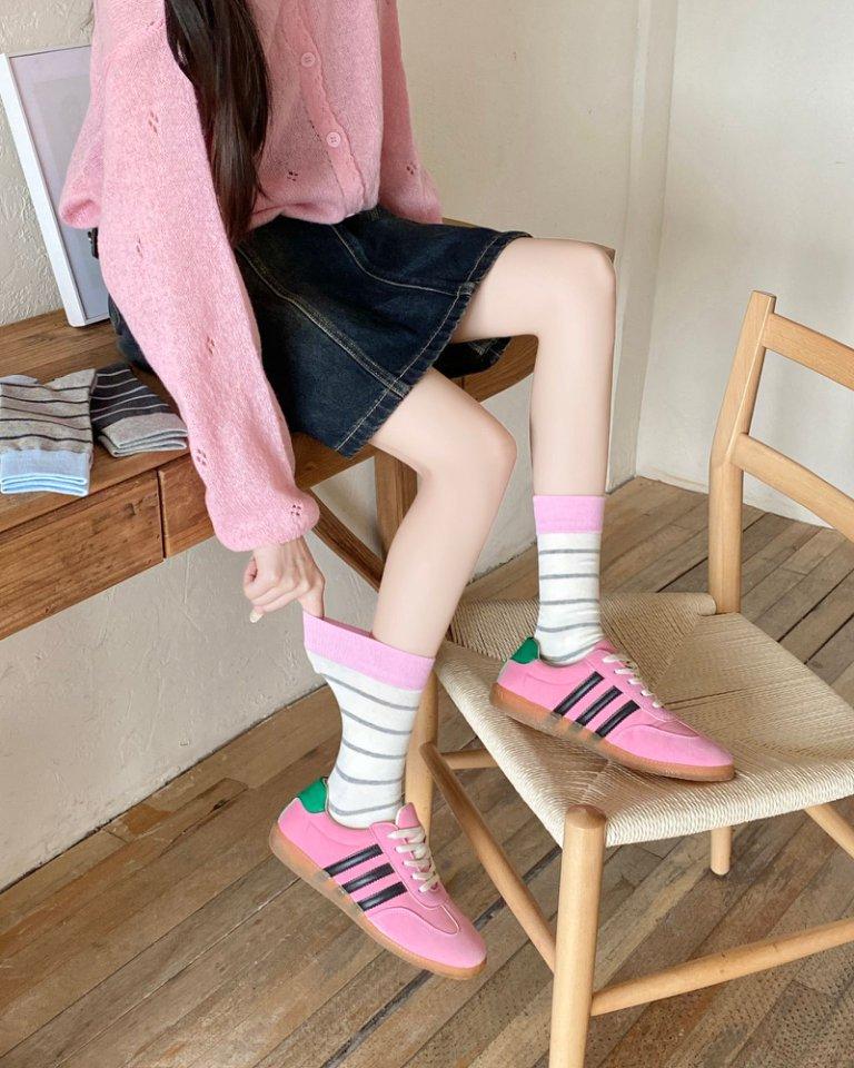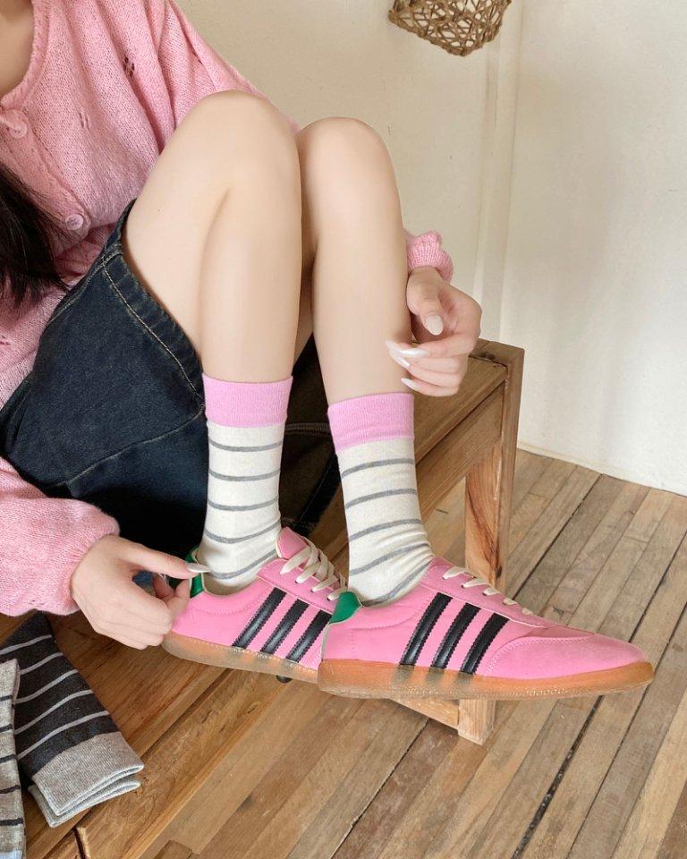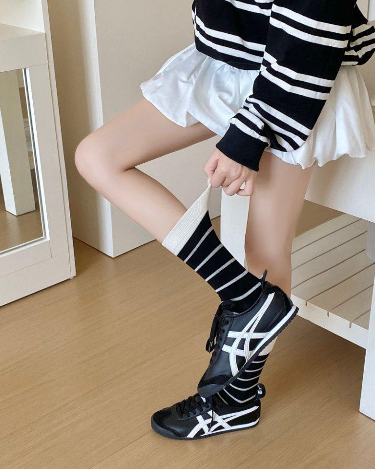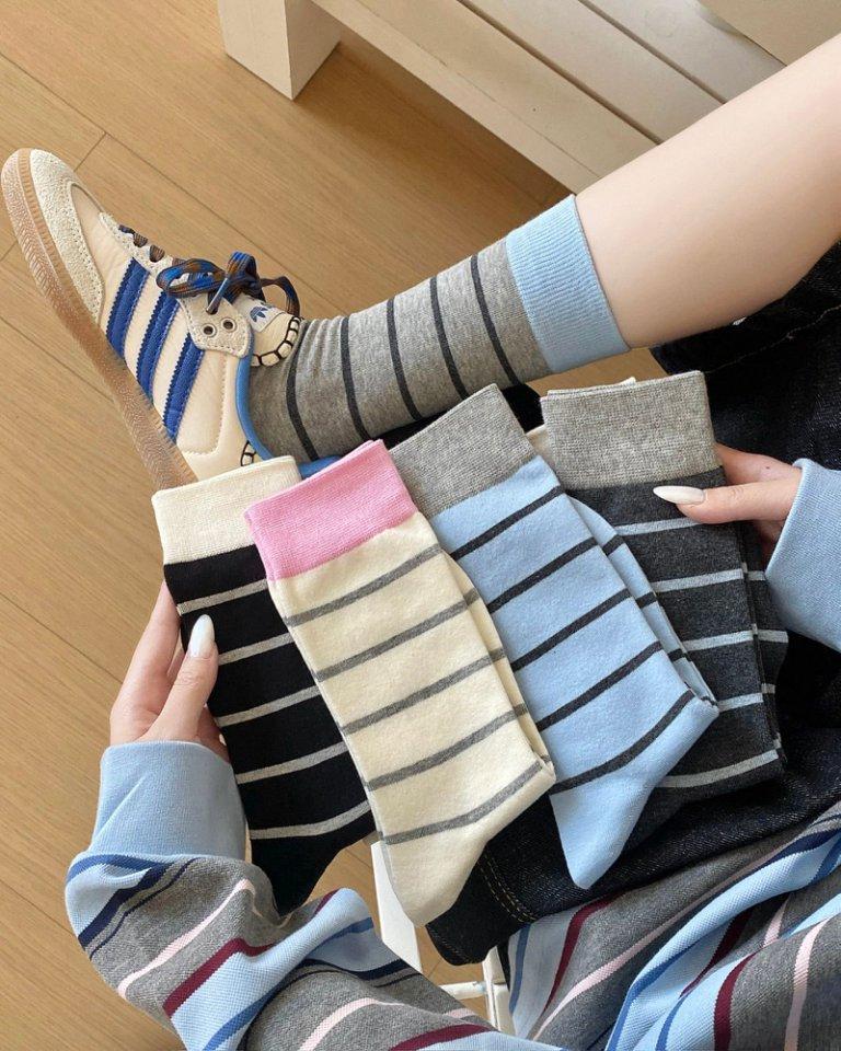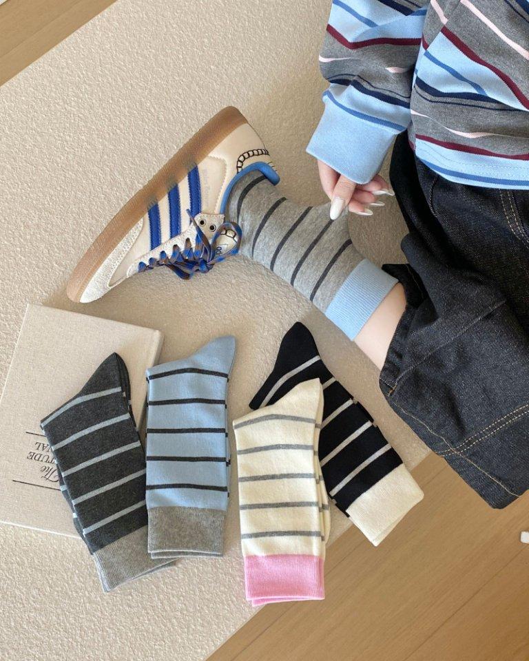 Calcetines de media caña para niña estilo miu otoño e invierno boca acanalada alta calcetines a rayas con bloques de color estilo universitario calcetines deportivos calcetines holgados de algodón puro