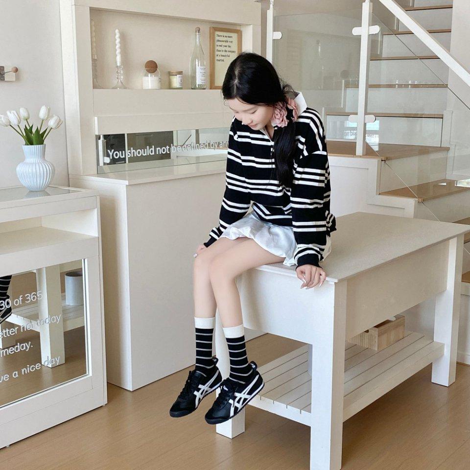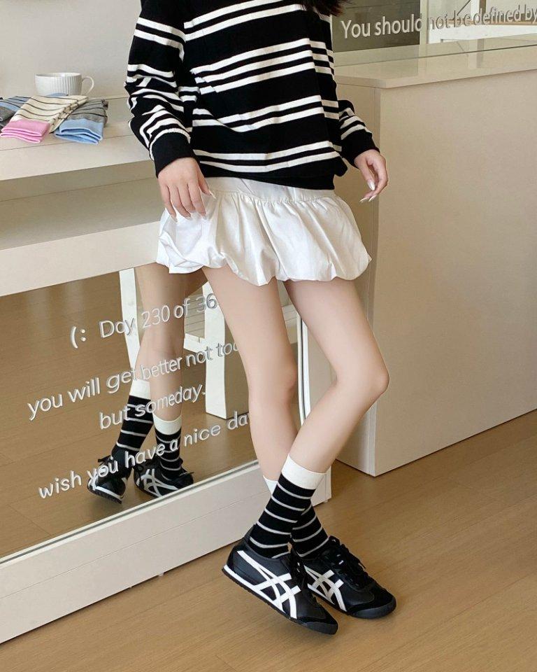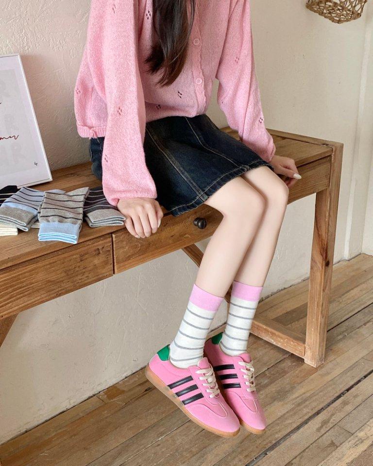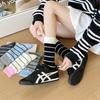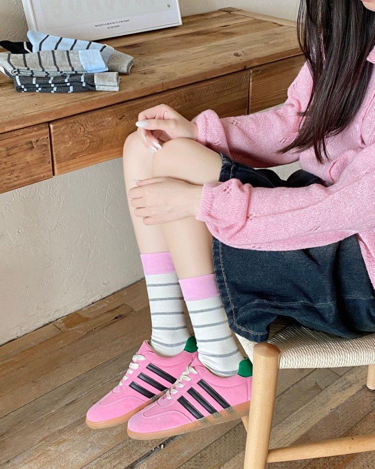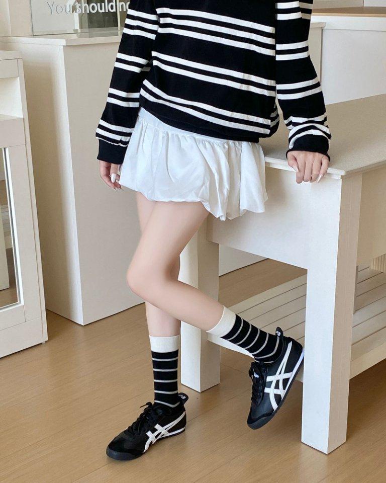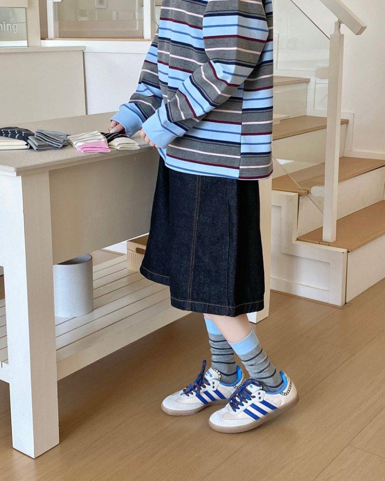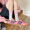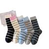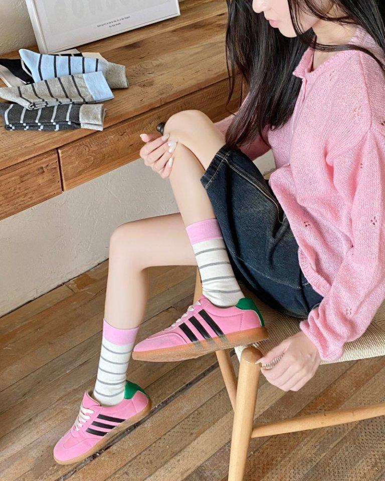 Calcetines de media caña para niña estilo miu otoño e invierno boca acanalada alta calcetines a rayas con bloques de color estilo universitario calcetines deportivos calcetines holgados de algodón puro