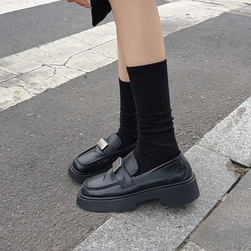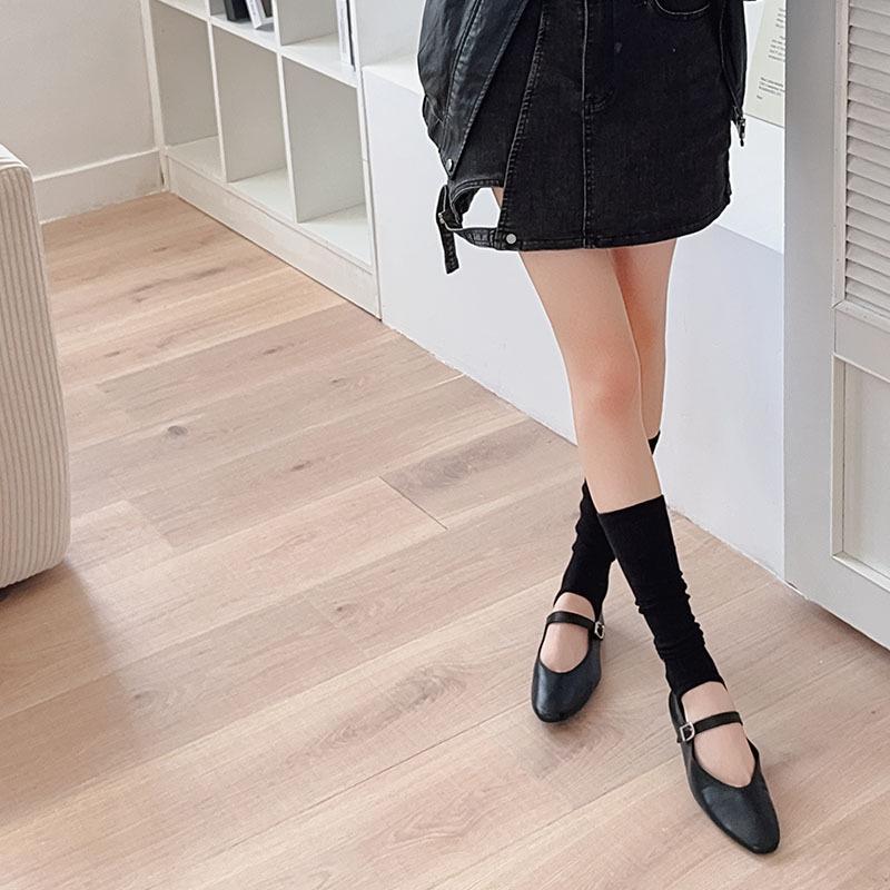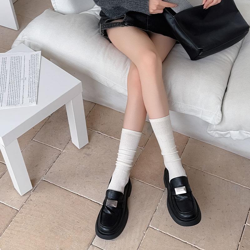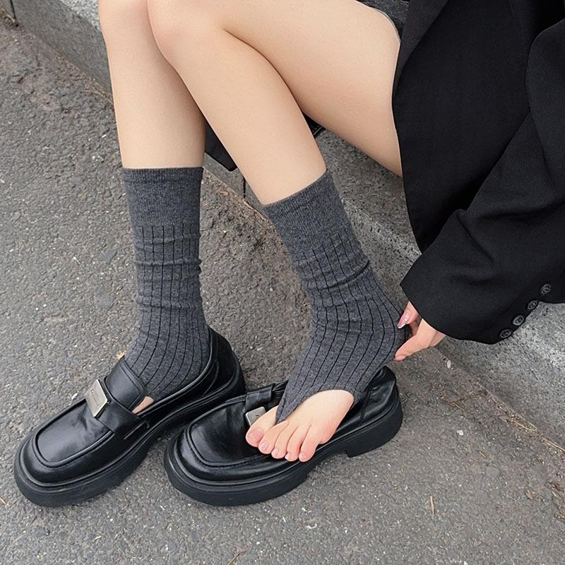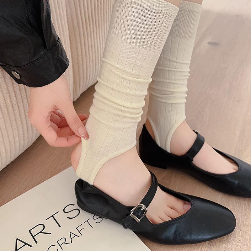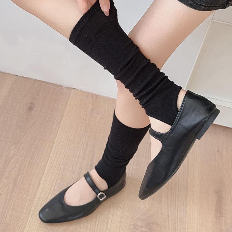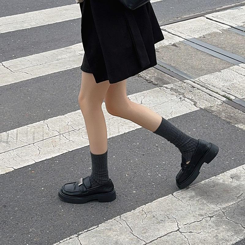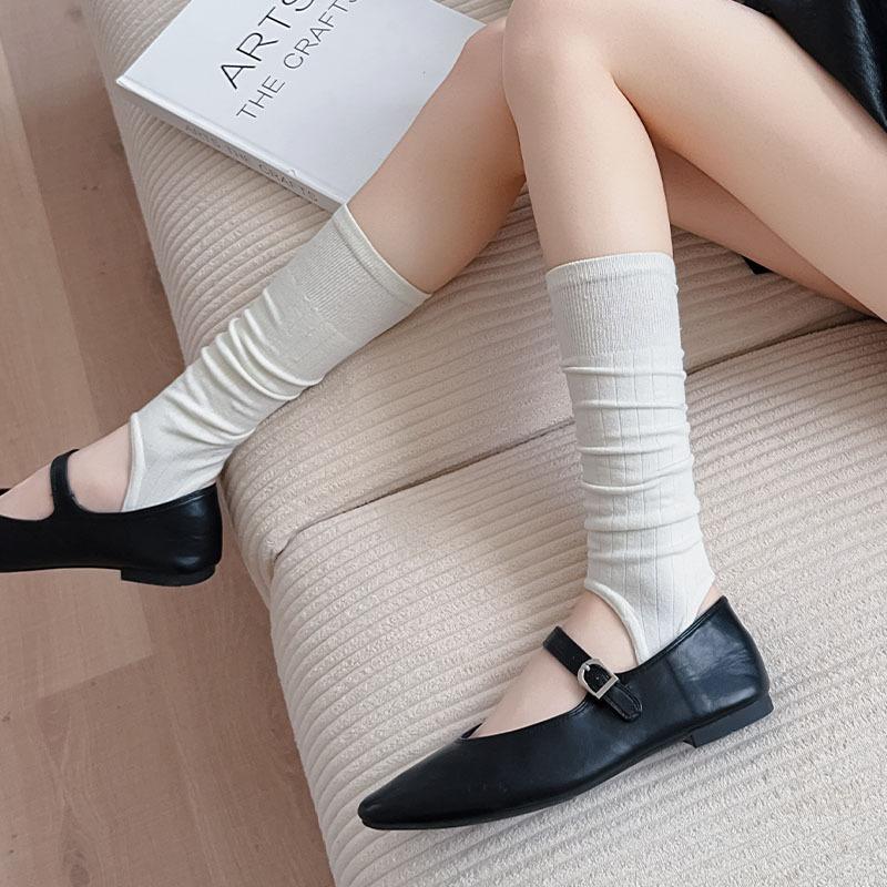 Calcetines Largos Tipo Tanga para Mujer Primavera y Verano Delgados Color Sólido Acanalados Adelgazantes Versátiles hasta la Pantorrilla Estilo Coreano