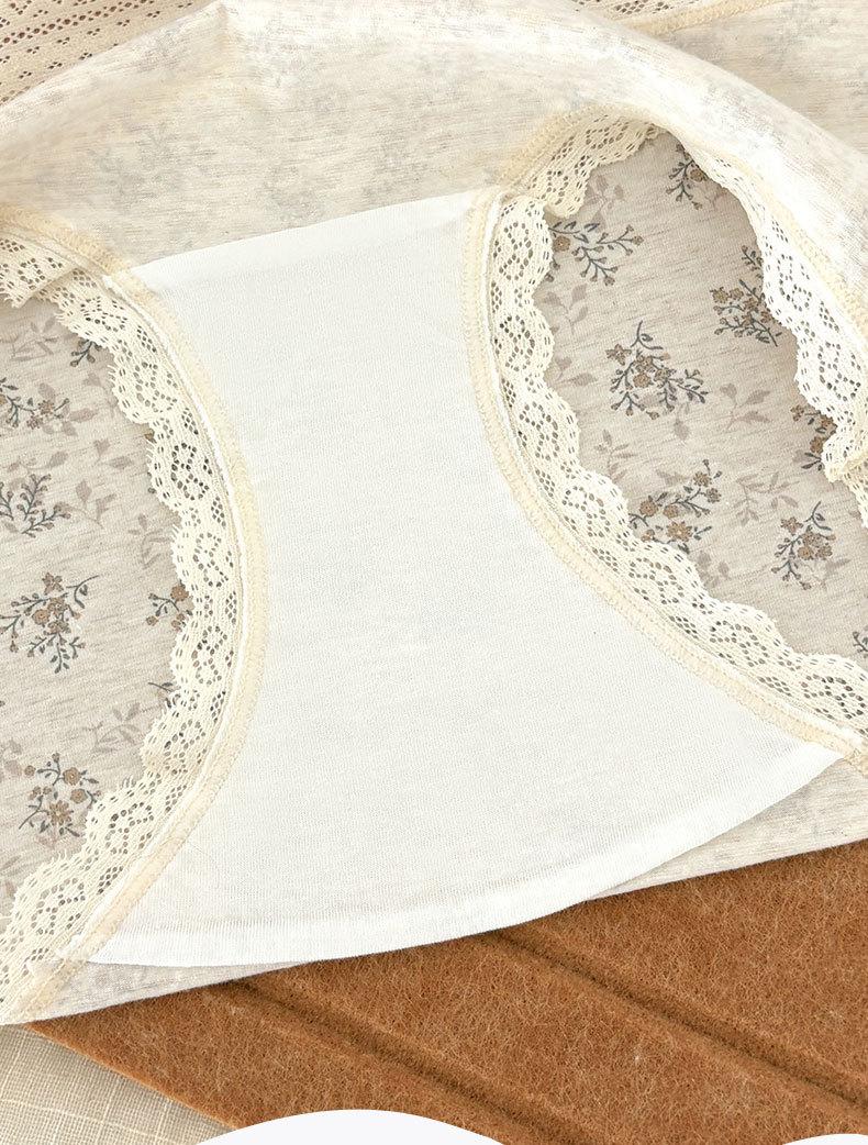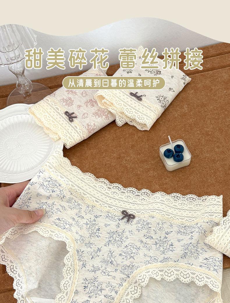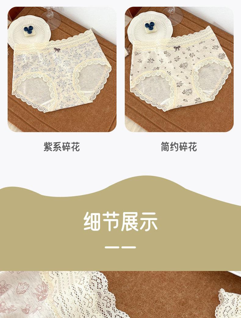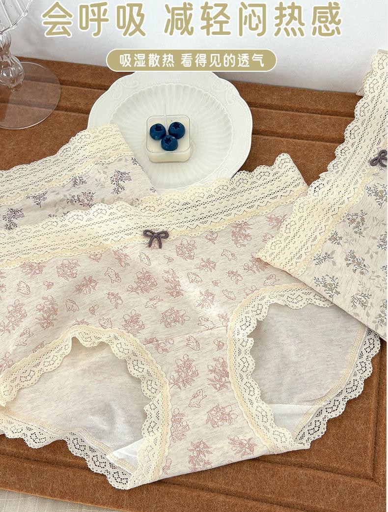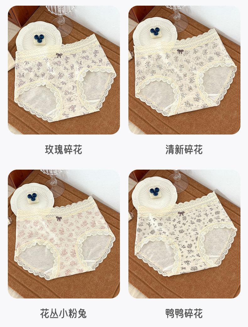 Calzones de Algodón Puro con Encaje Antibacterial 10A para Mujer Clase A Bebé Cintura Media Envolventes de Cadera Entrepierna de Algodón Calzones Florales Pequeños para Mujer