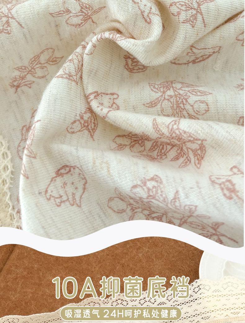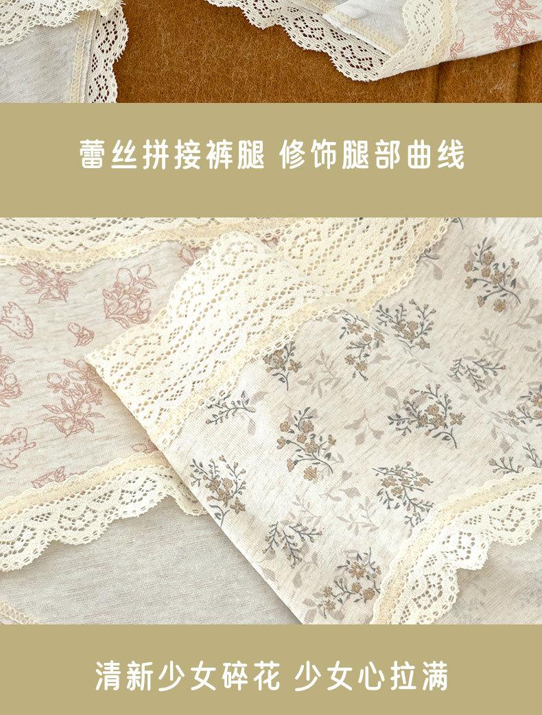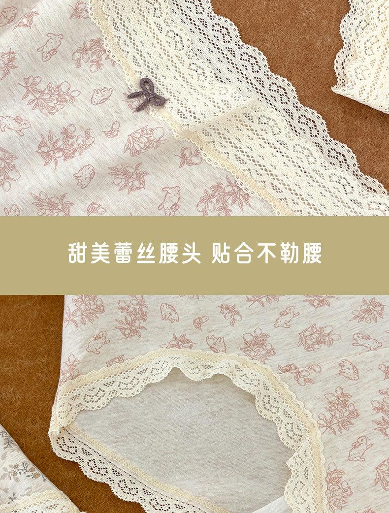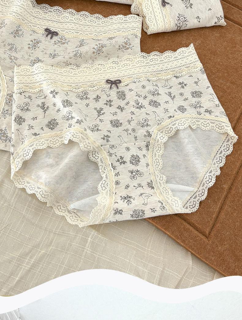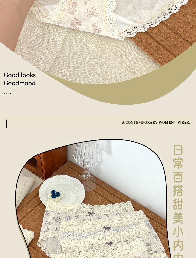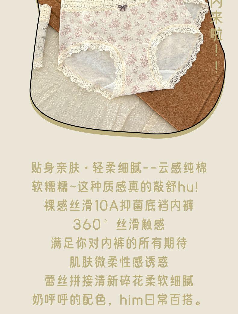 Calzones de Algodón Puro con Encaje Antibacterial 10A para Mujer Clase A Bebé Cintura Media Envolventes de Cadera Entrepierna de Algodón Calzones Florales Pequeños para Mujer
