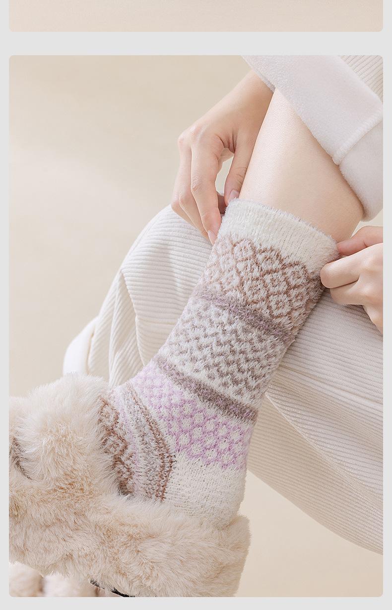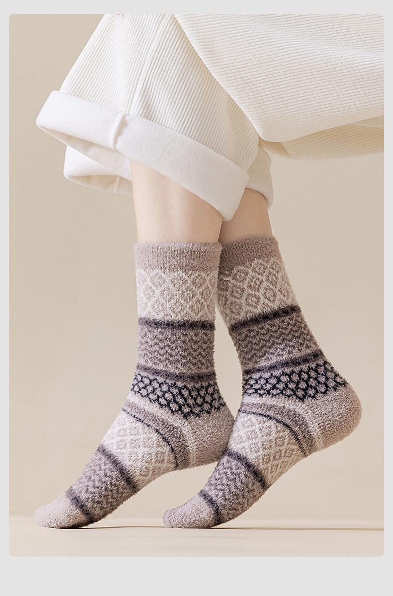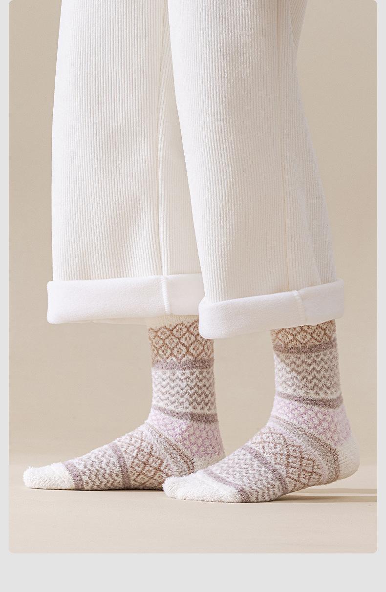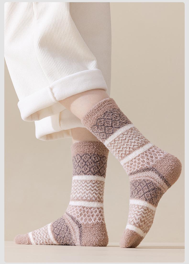 Calcetines de forro polar de coral de otoño e invierno, calcetines de piso para hombre y mujer, calcetines para dormir de media felpa, calcetines de invierno suaves, gruesos y cálidos hasta la mitad de la pantorrilla