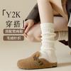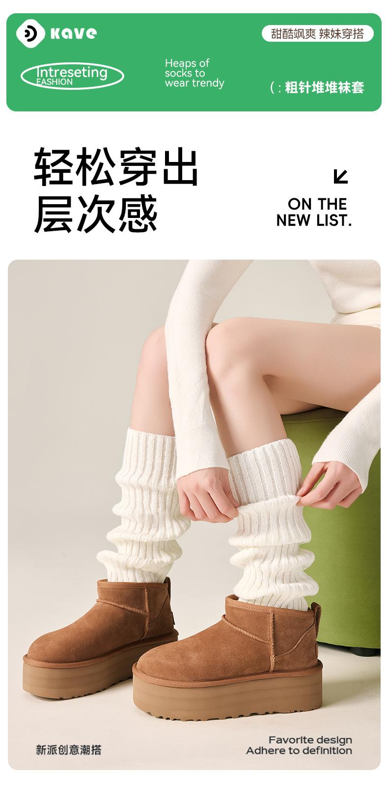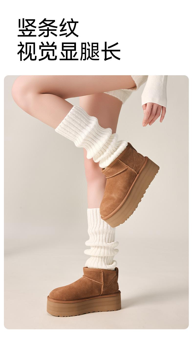 Calentadores de Pierna de Punto Calcetines Blancos Mujer Primavera Otoño Calcetines de Pantorrilla Calentadores de Pierna para Botas de Nieve Otoño Invierno Cálidos Gruesos Calcetines Arrugados Verano