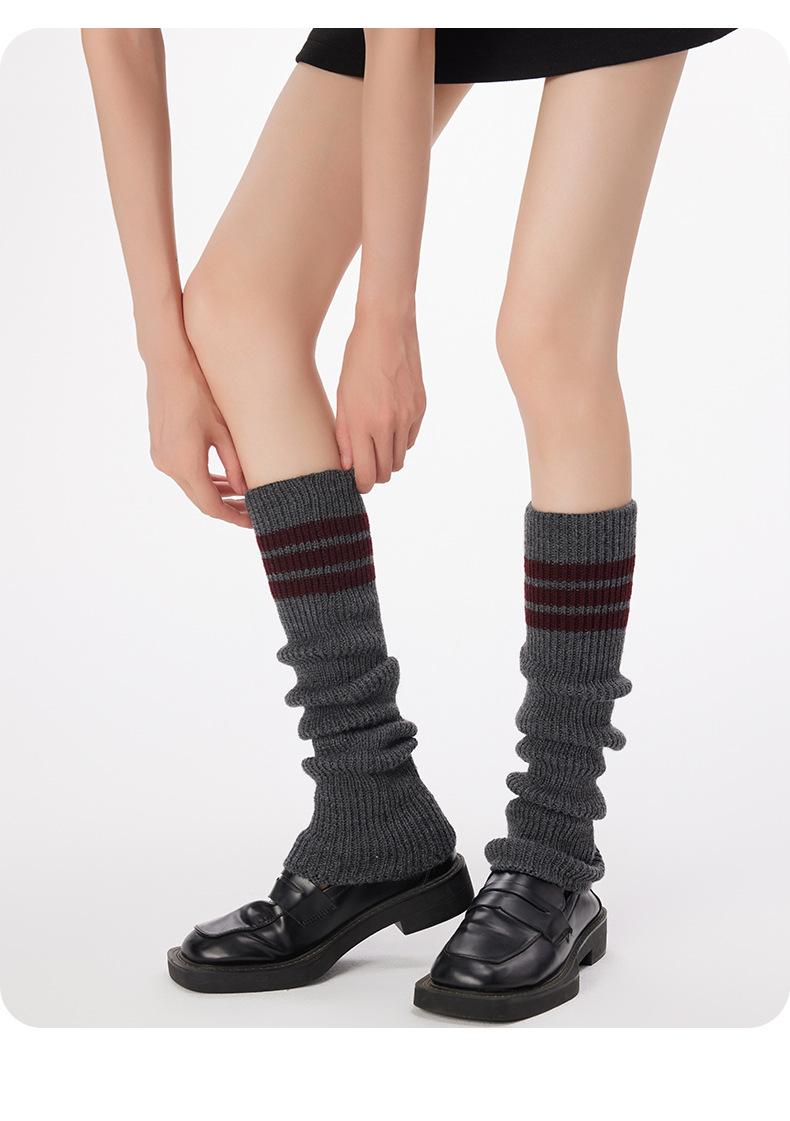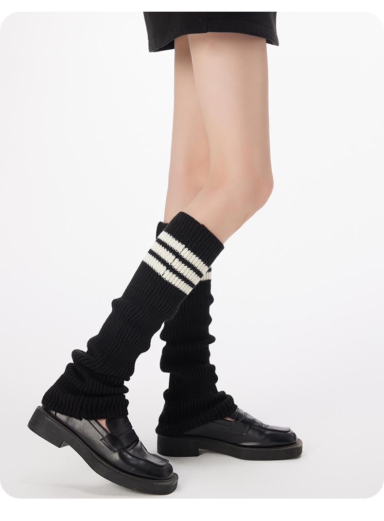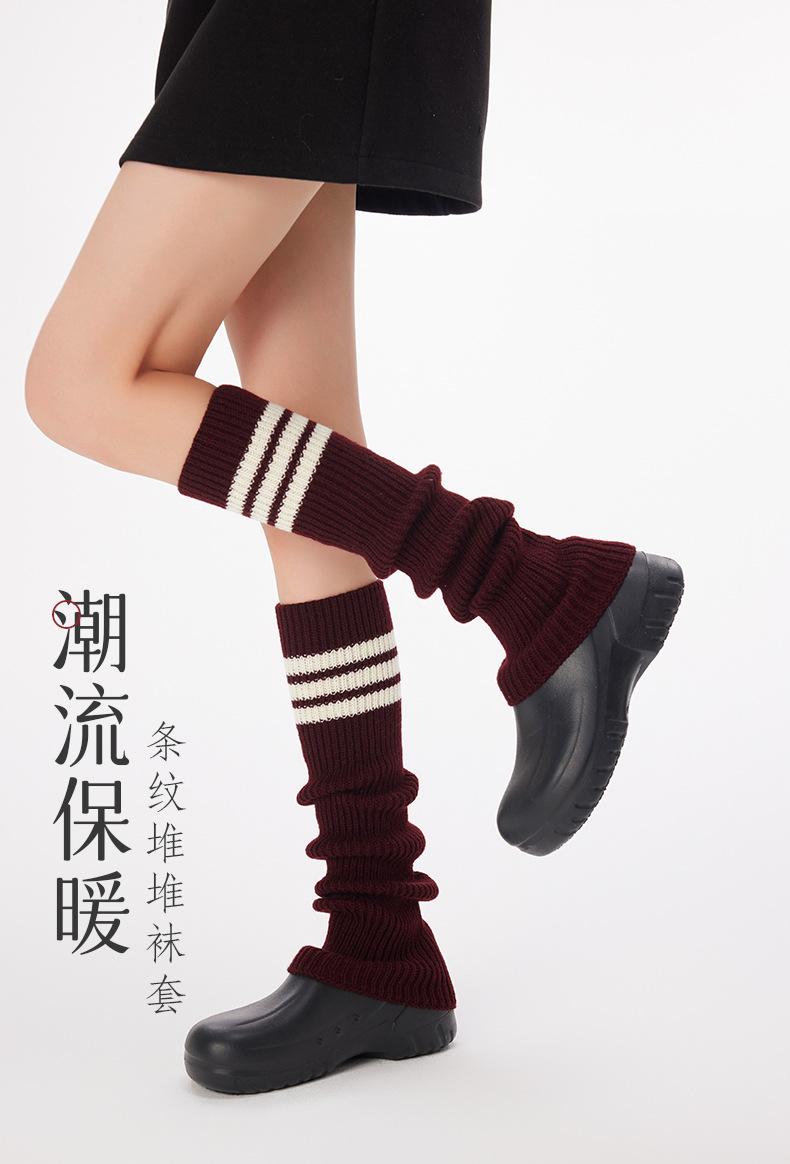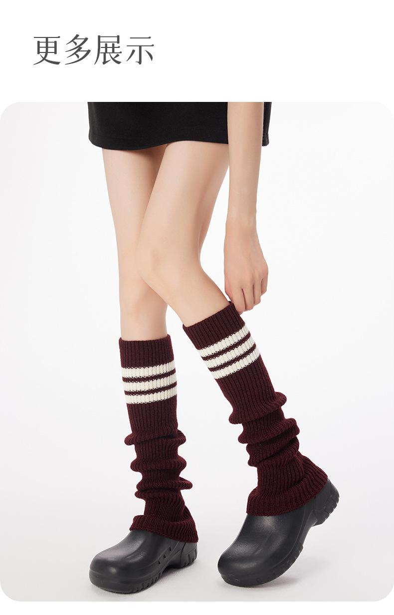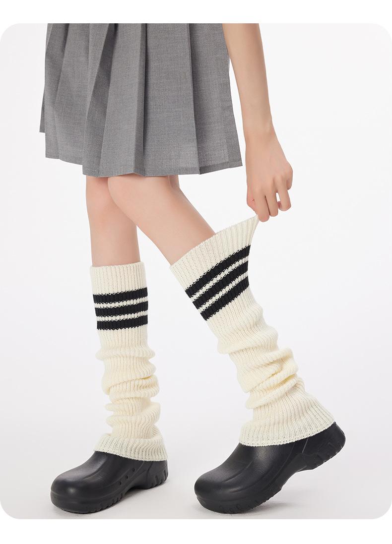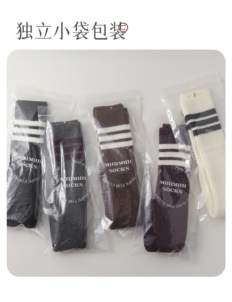 Calcetines de Punto de Tubo Largo para Mujer Calcetines para Apilar Rayados de Tres Barras Lana Gruesa Cubre Piernas y2k Chicas Hot Otoño e Invierno Calcetines de Pantorrilla