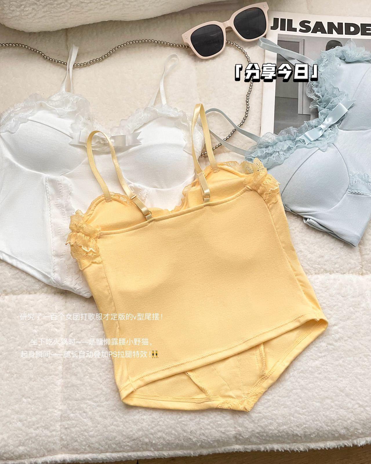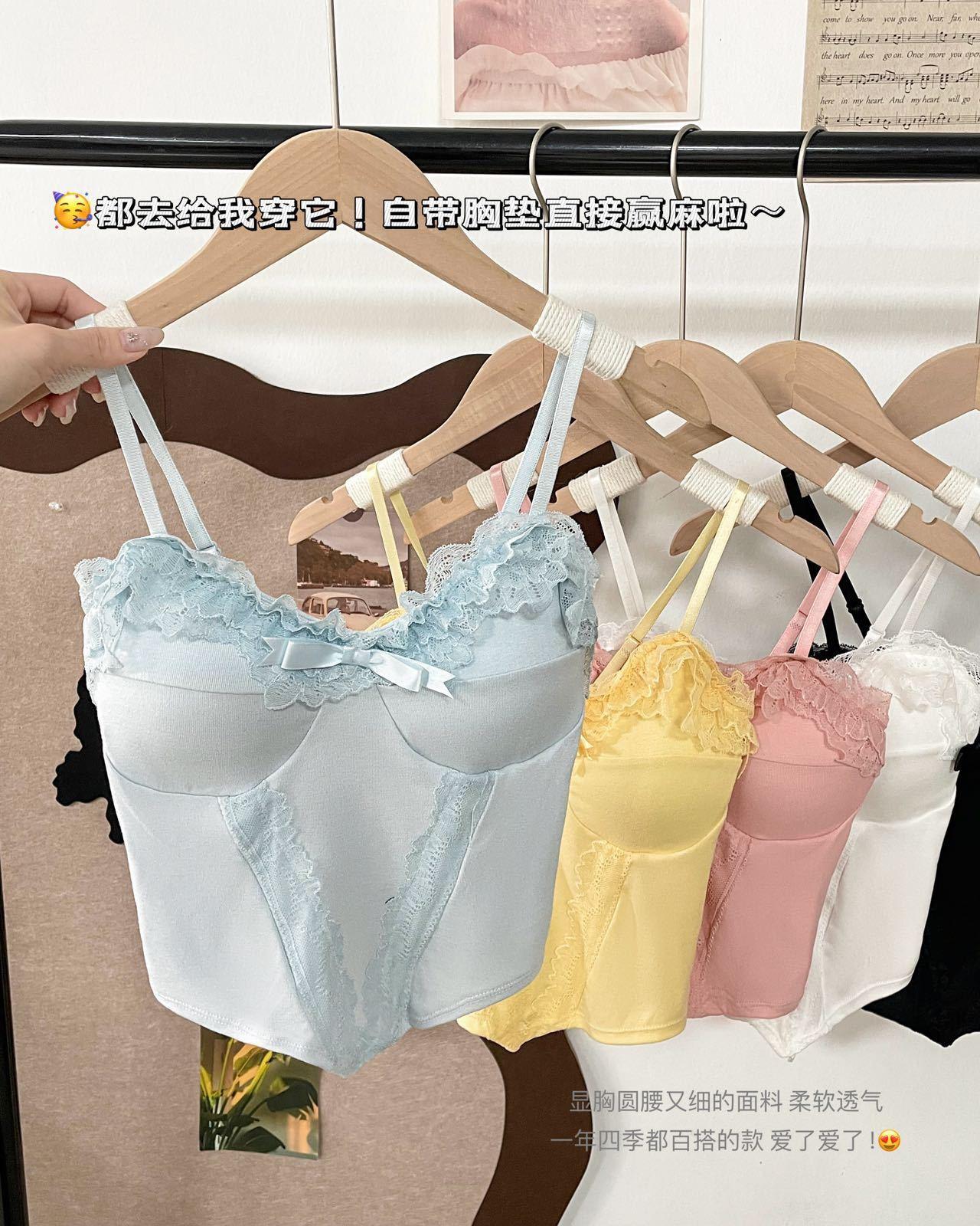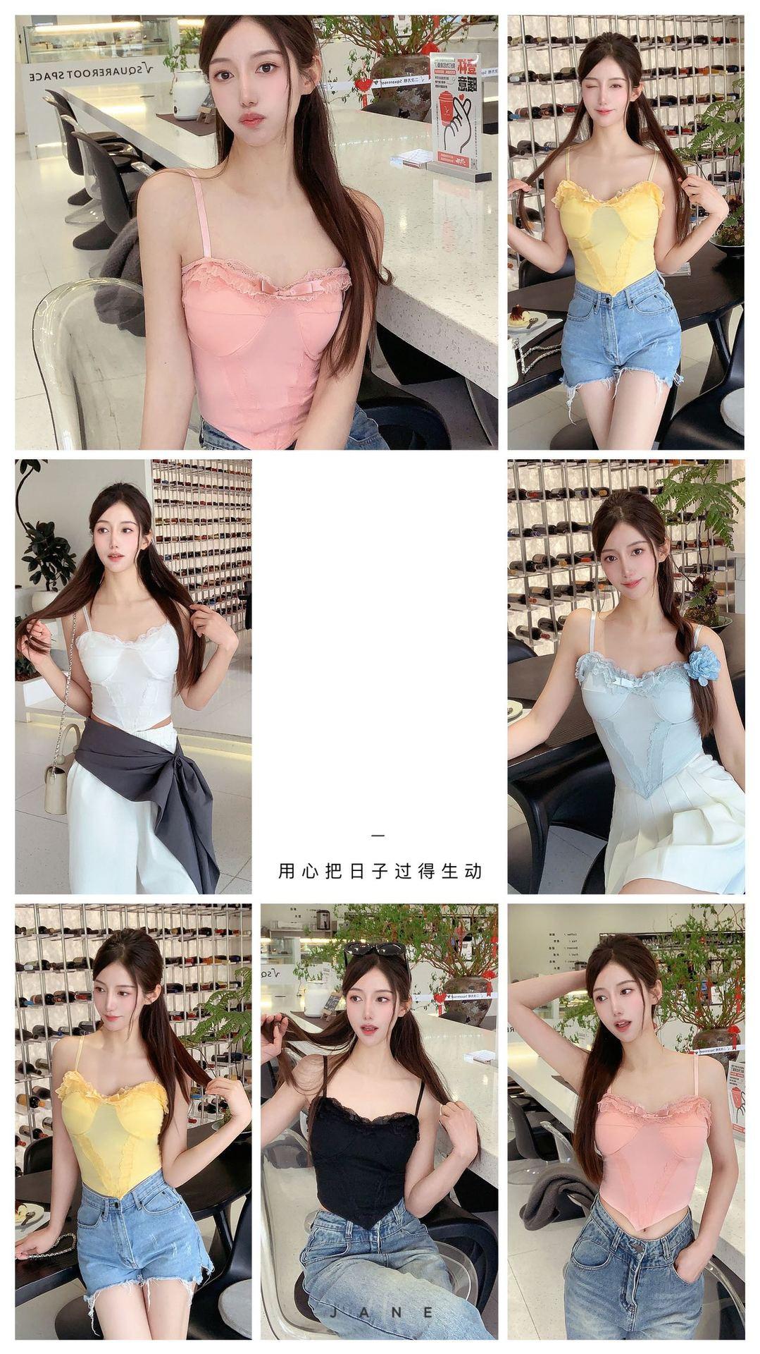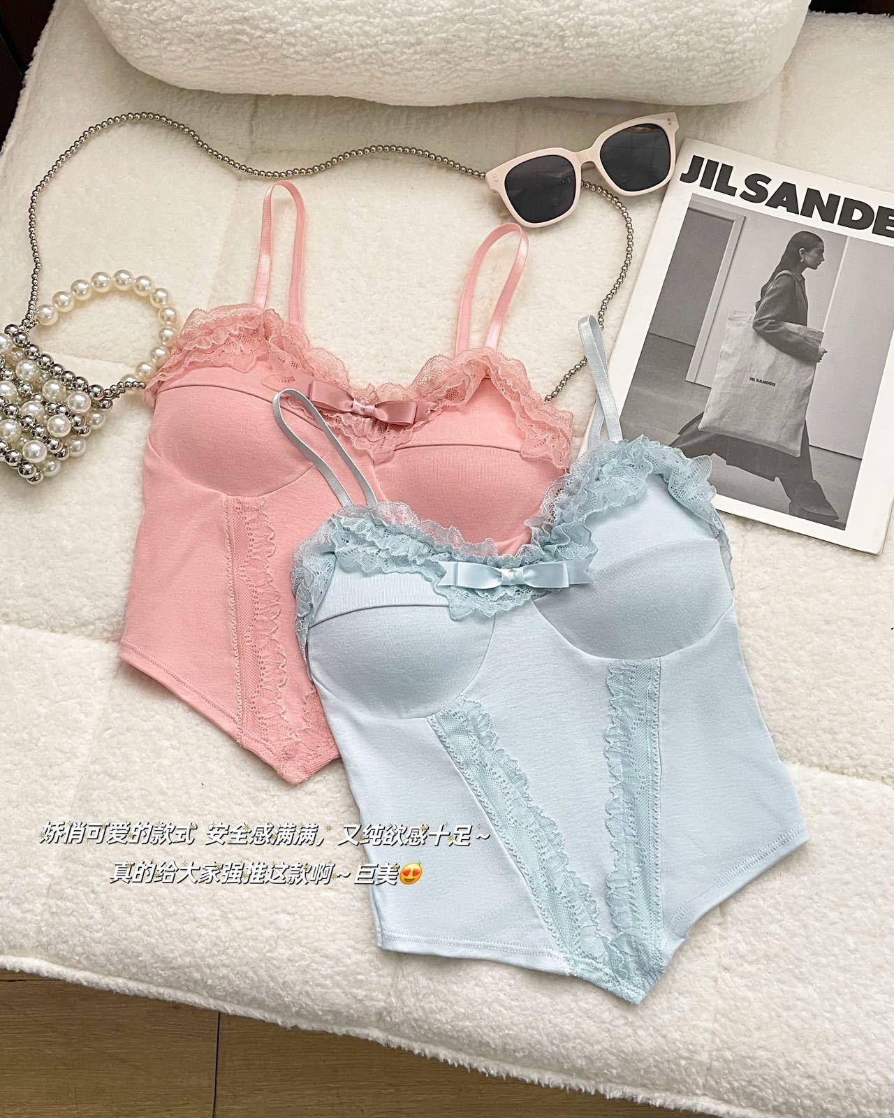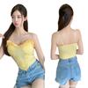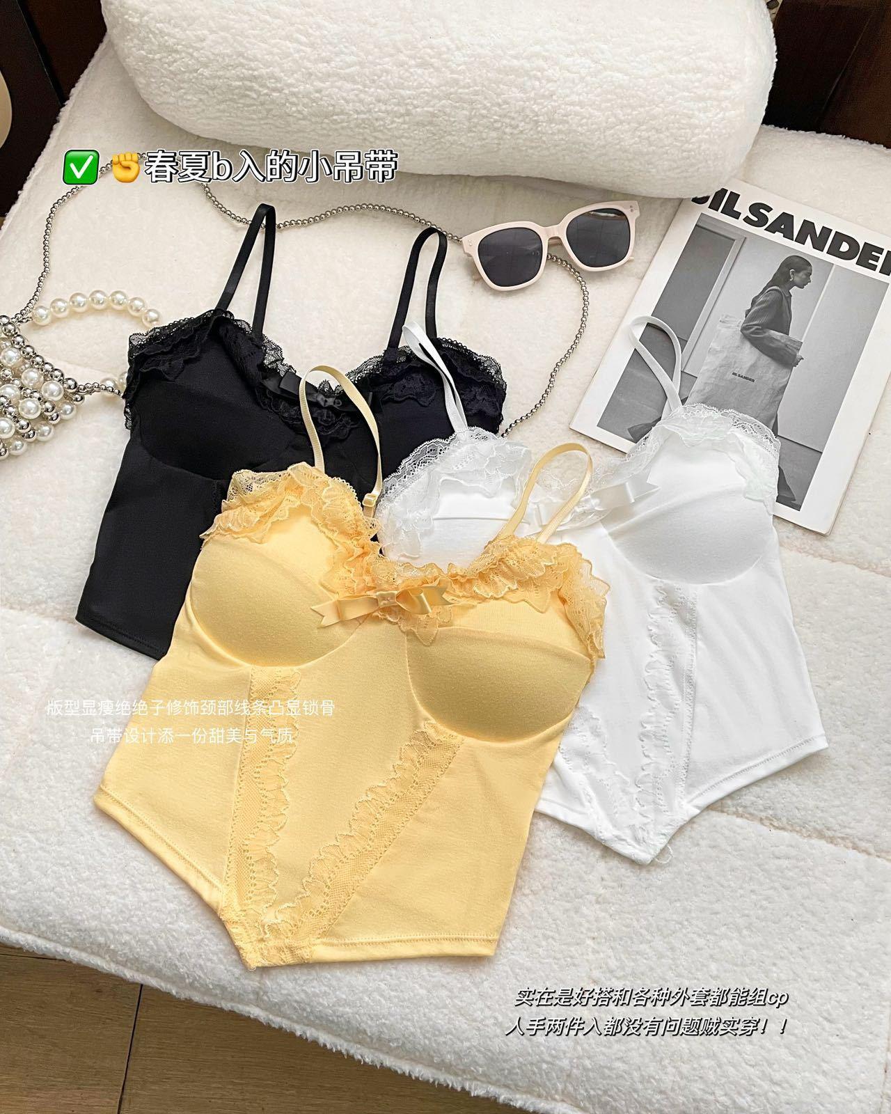 Camisola Sexy de Encaje con Lazo para Chica Top Tubo Corto con Hombros Descubiertos para Mujer con Tirantes Finos para los Hombros Camiseta Básica
