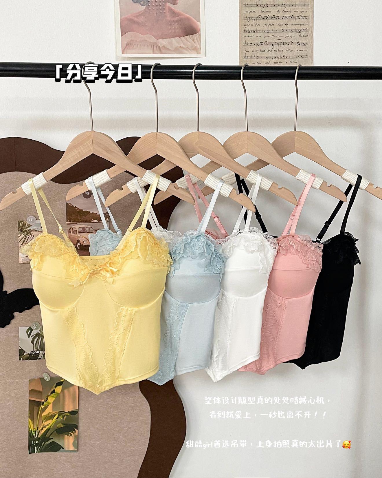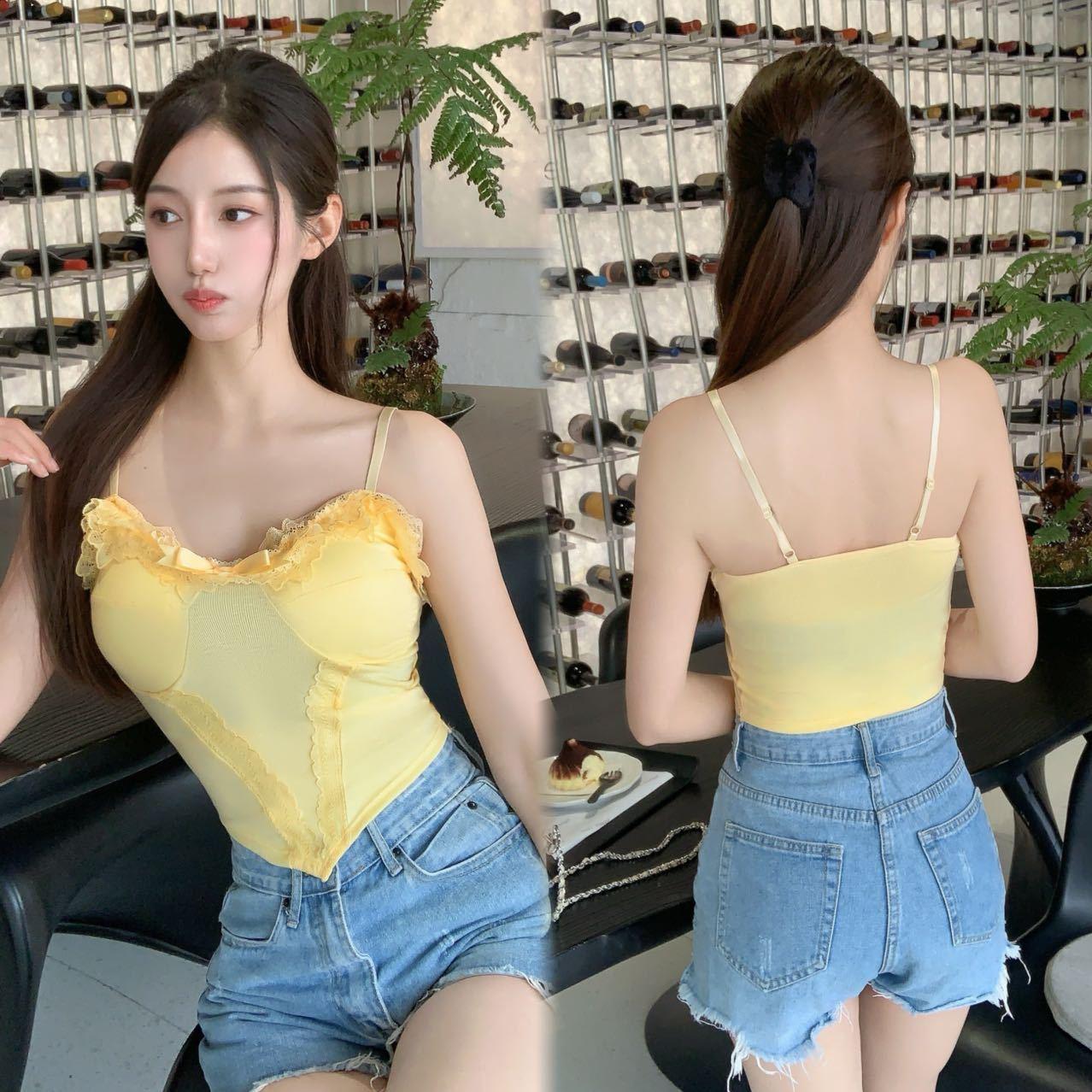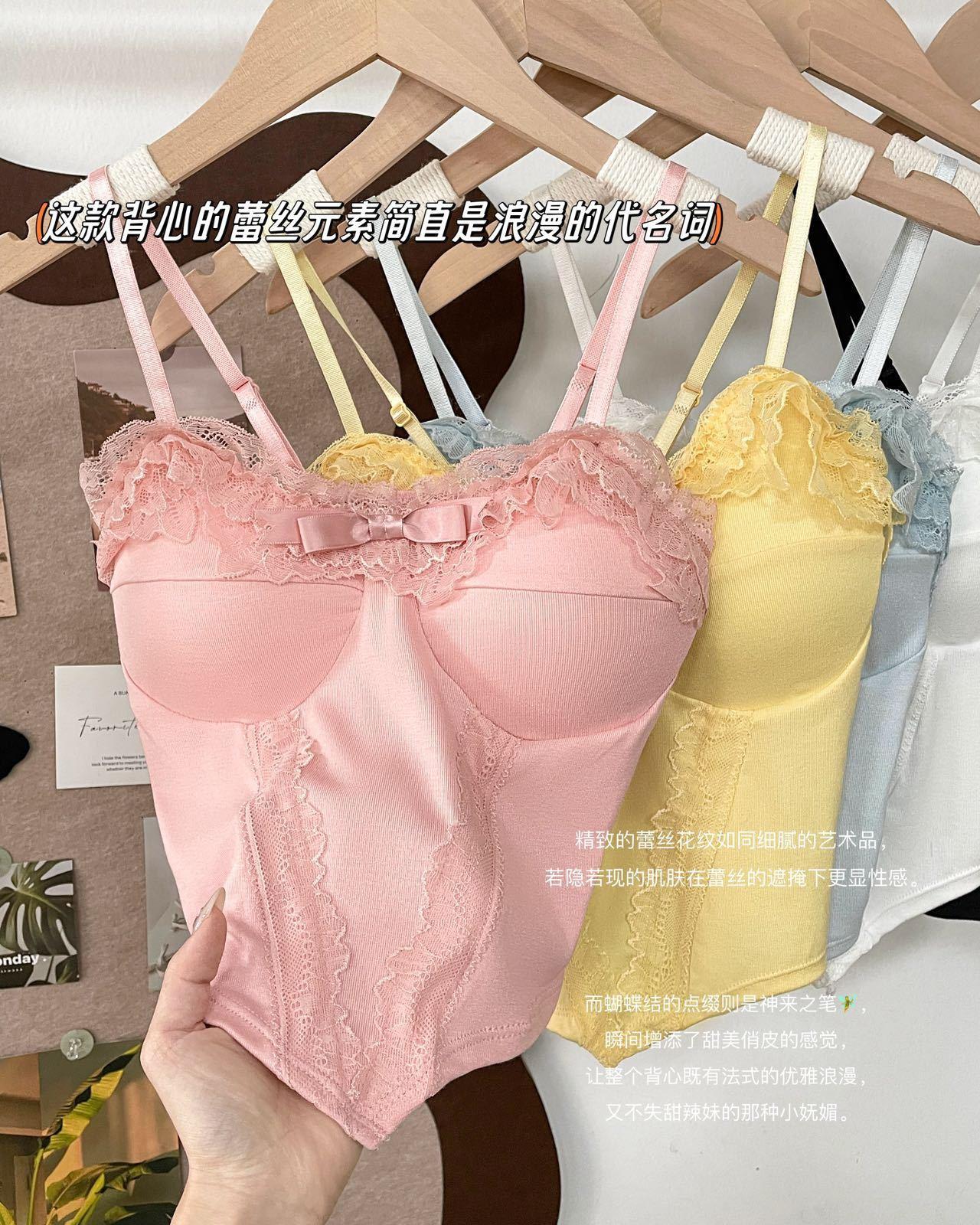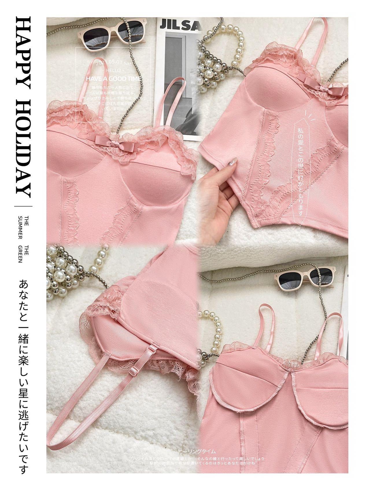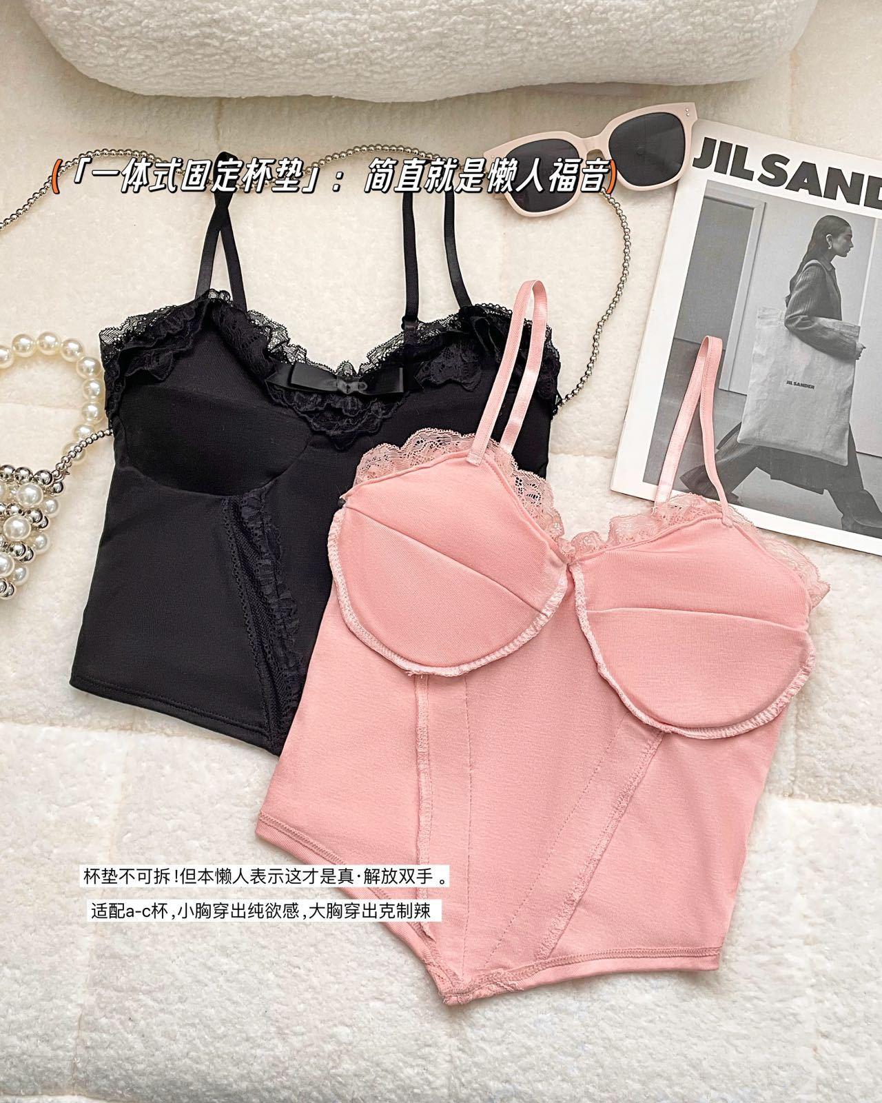 Camisola Sexy de Encaje con Lazo para Chica Top Tubo Corto con Hombros Descubiertos para Mujer con Tirantes Finos para los Hombros Camiseta Básica