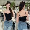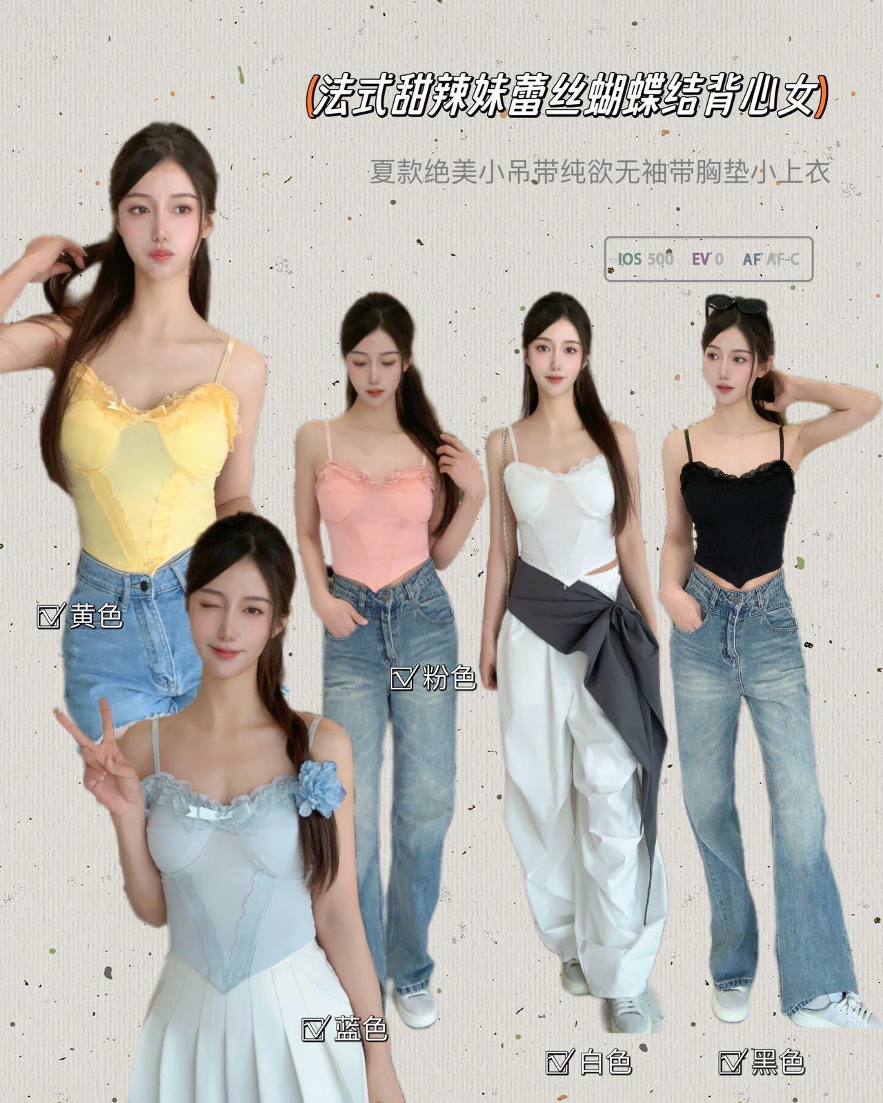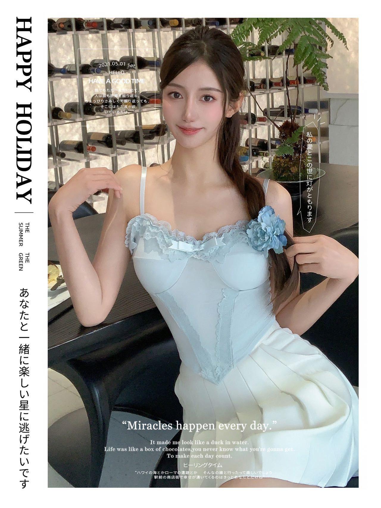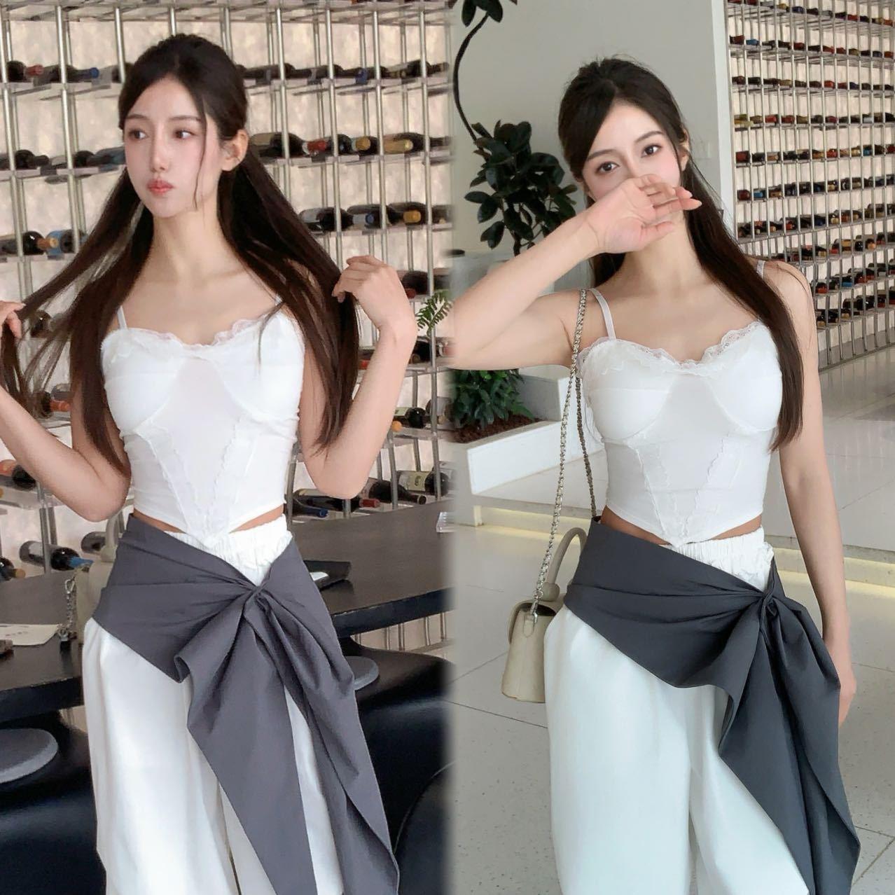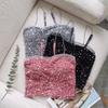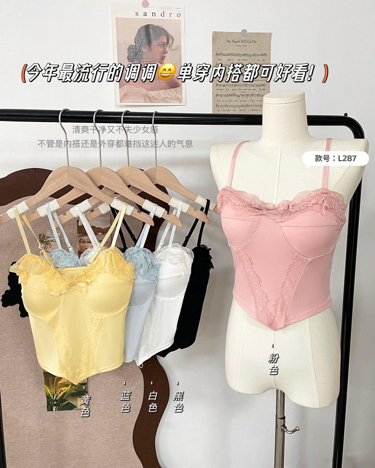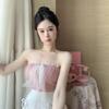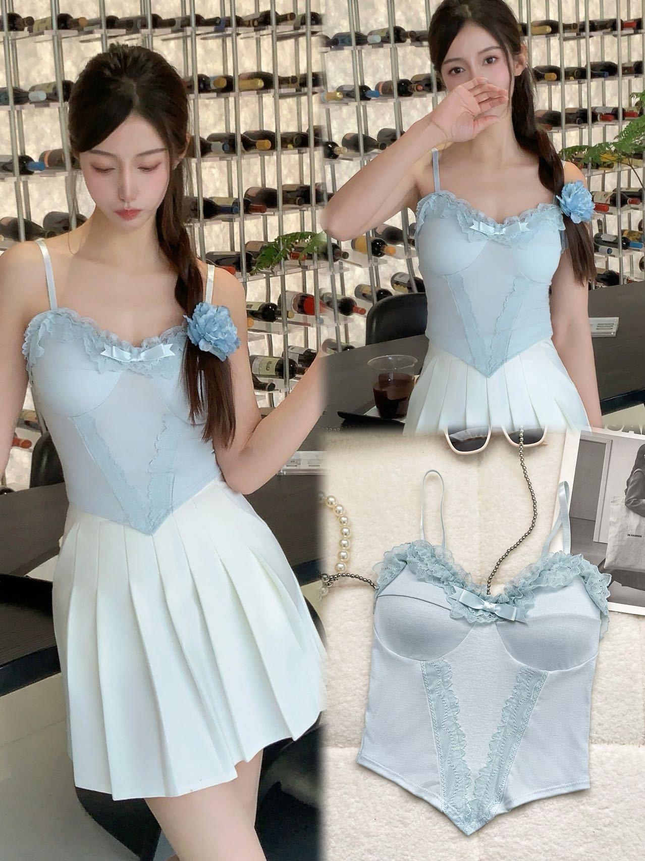 Camisola Sexy de Encaje con Lazo para Chica Top Tubo Corto con Hombros Descubiertos para Mujer con Tirantes Finos para los Hombros Camiseta Básica